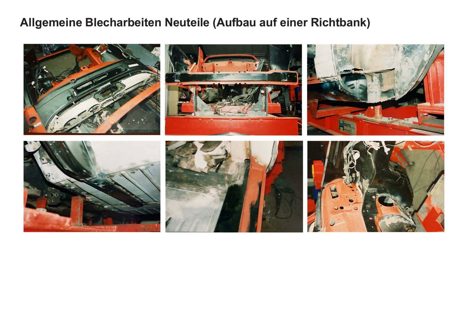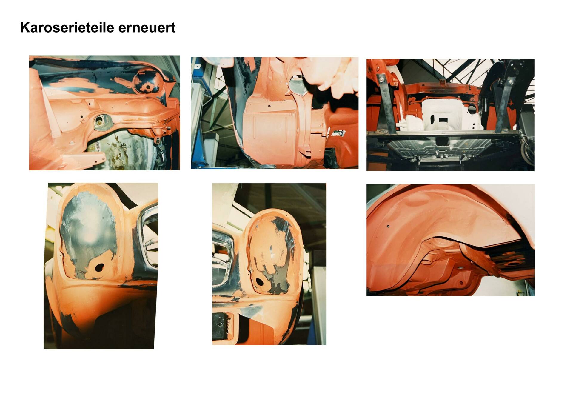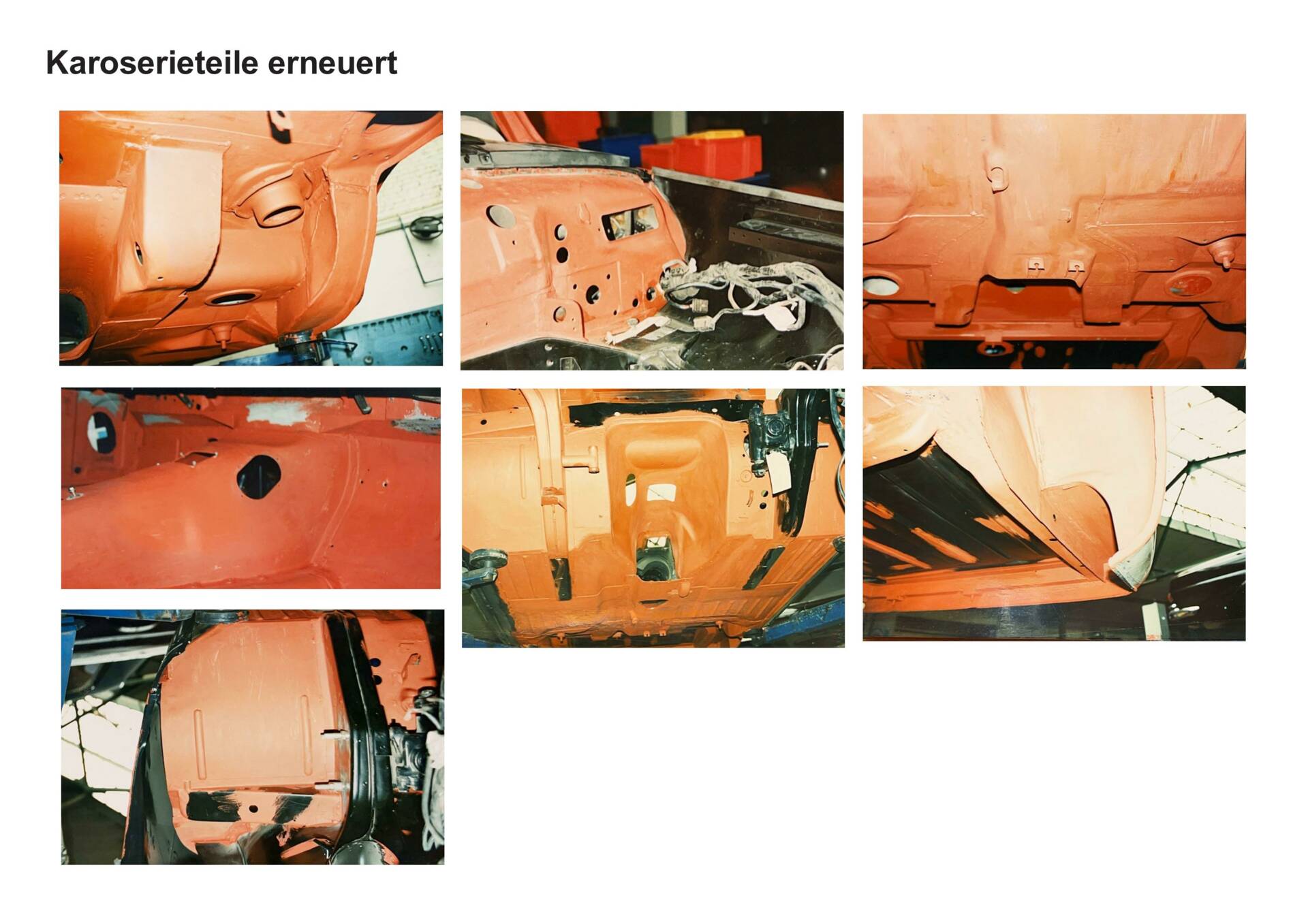 Se renovaron casi todas las piezas de chapa (excepto las de aluminio) y parte de los largueros principales (véanse también las fotos). Para ello, el vehículo se reconstruyó por completo en un banco de enderezado original. Las cavidades de todos los componentes se rellenaron con aproximadamente 6 litros de sellador para cavidades (Mike Sander).