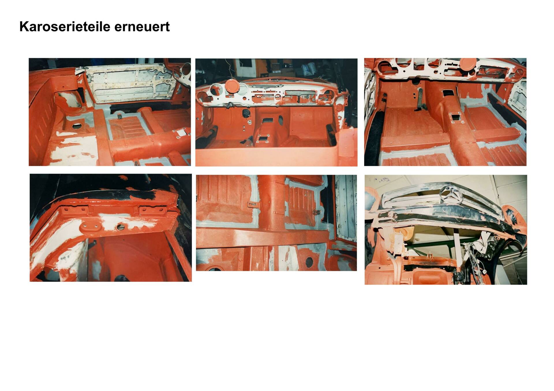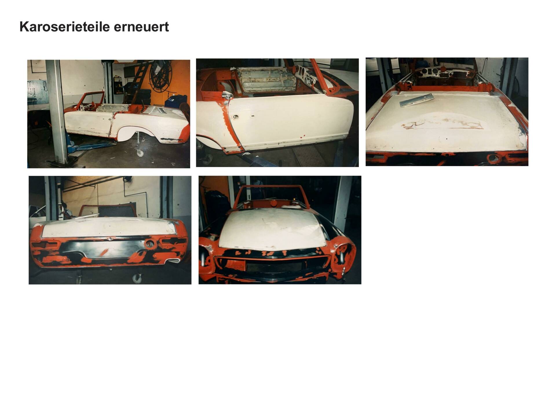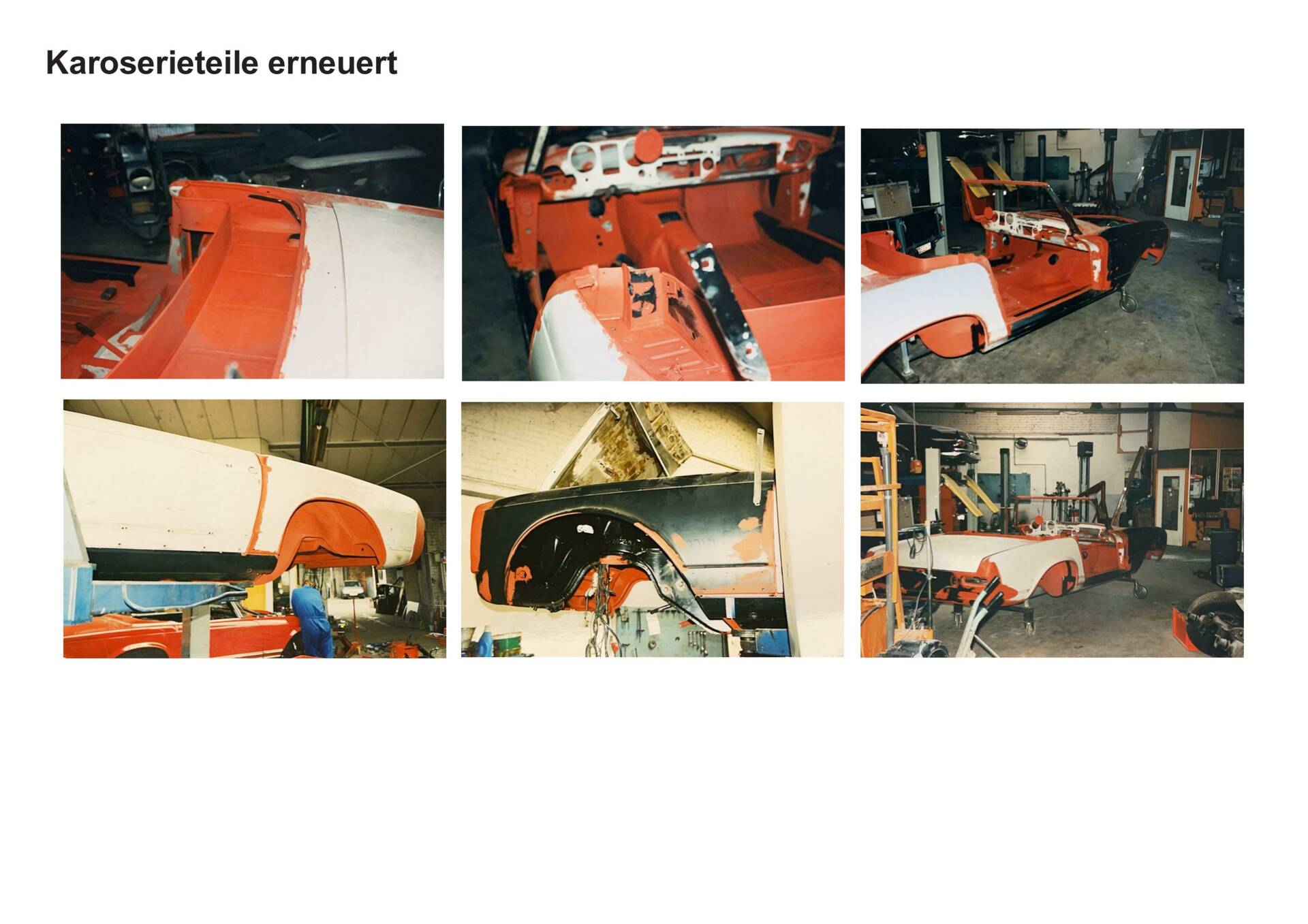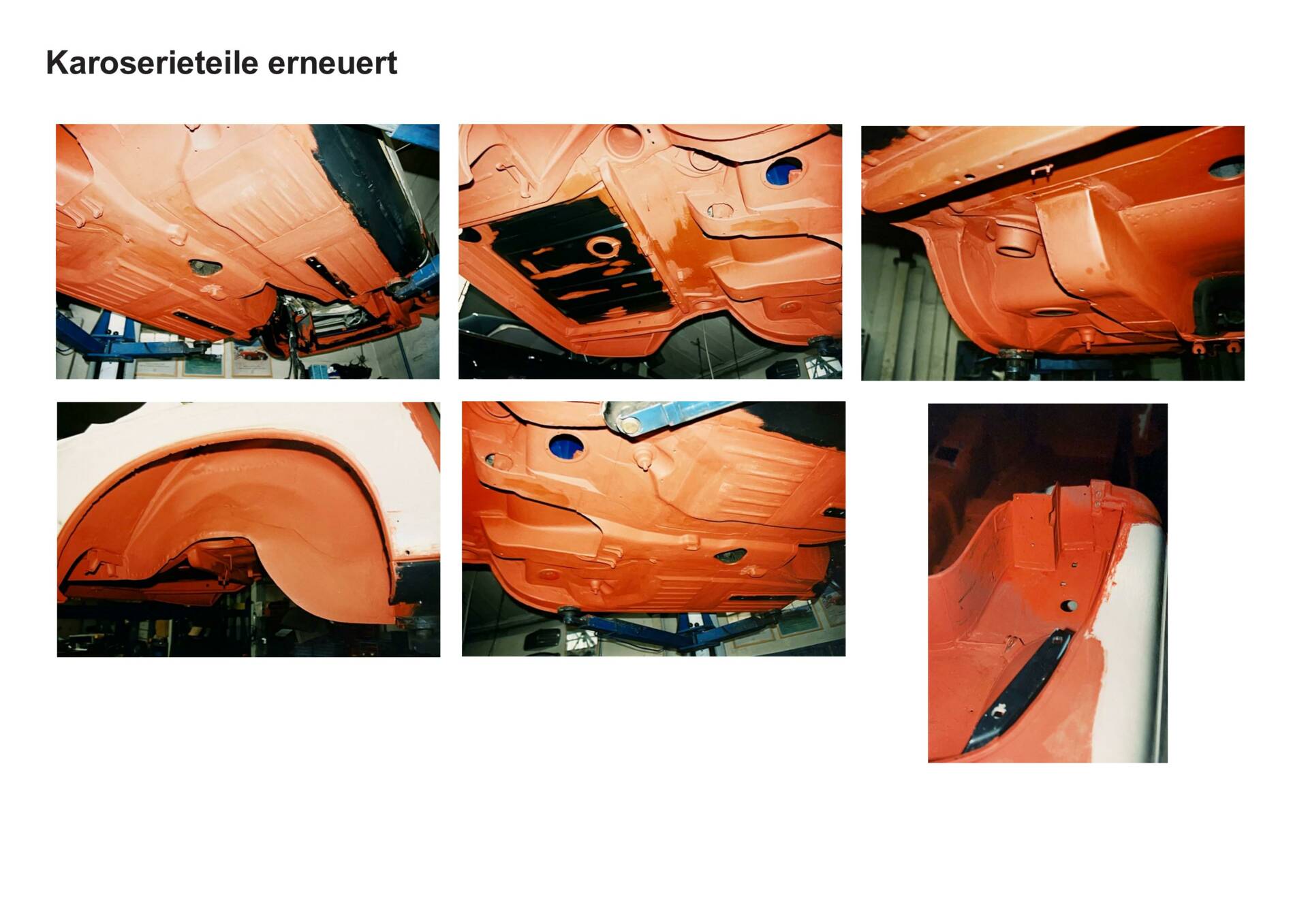 Se renovaron casi todas las piezas de chapa (excepto las de aluminio) y parte de los largueros principales (véanse también las fotos). Para ello, el vehículo se reconstruyó por completo en un banco de enderezado original. Las cavidades de todos los componentes se rellenaron con aproximadamente 6 litros de sellador para cavidades (Mike Sander).