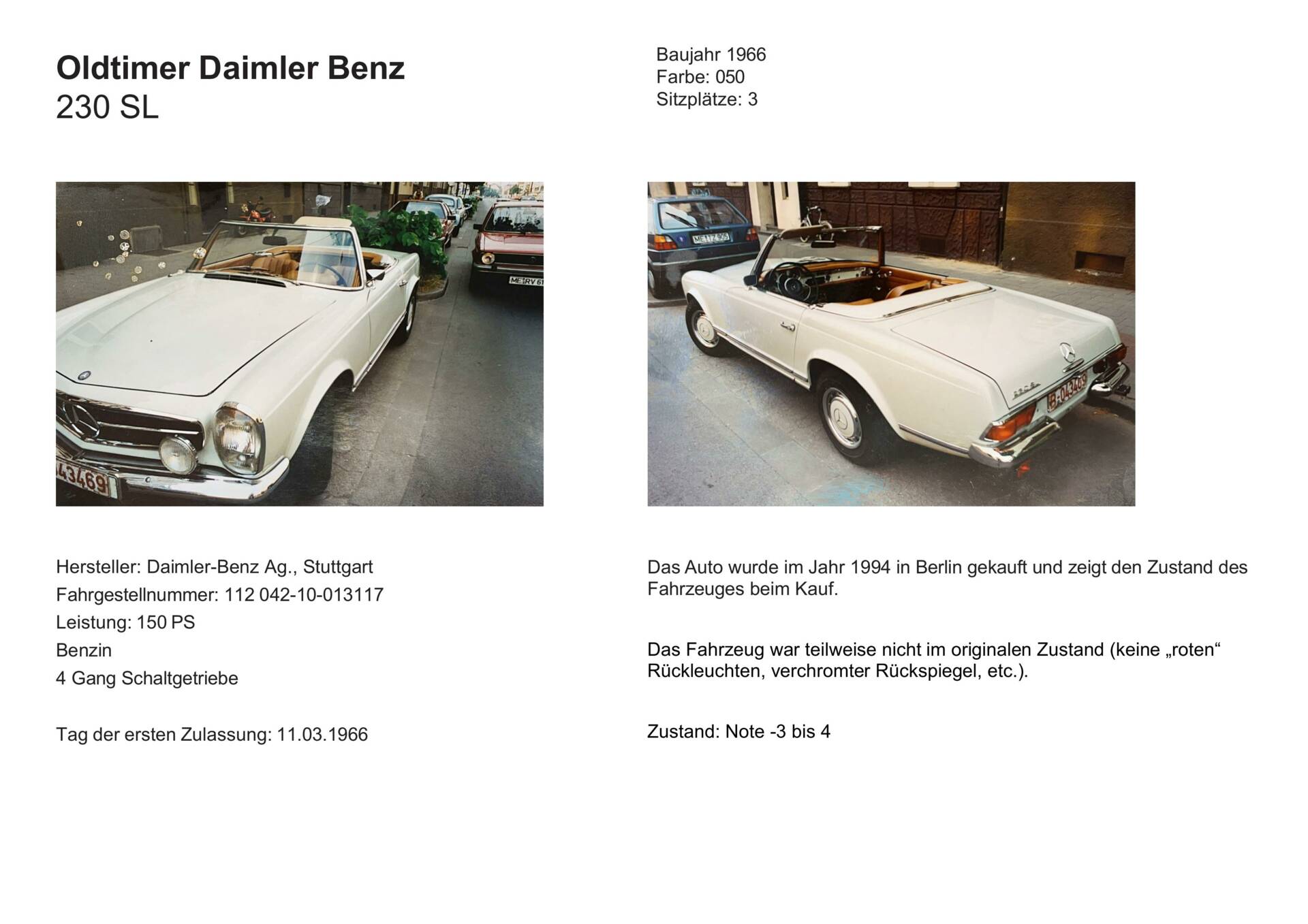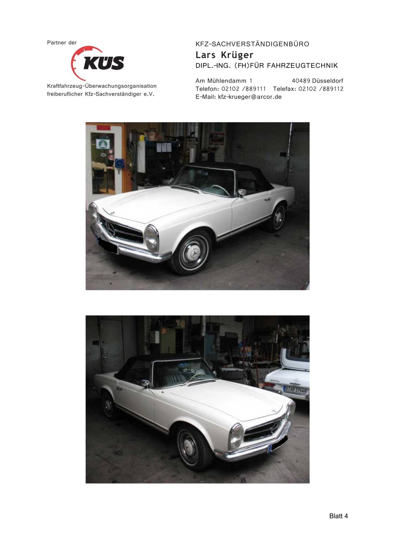 Todas las restauraciones se llevaron a cabo en un taller Mercedes Benz para coches antiguos llamado Karl Heinz Dellmann, situado en la calle Emmastraße de Düsseldorf. El propio Sr. Dellmann completó su formación en Mercedes con el modelo Pagode, por lo que poseía un gran conocimiento de este tipo de vehículos.