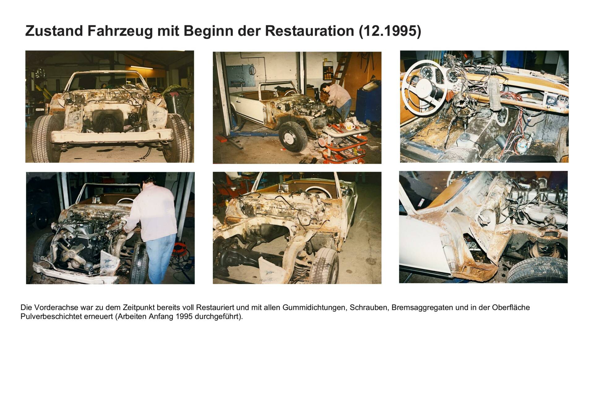 El motor y la transmisión se desmontaron por completo y todas las piezas se limpiaron y, en su caso, se sustituyeron por piezas nuevas (originales). El motor se adaptó para funcionar sin plomo. Se presurizó y ajustó la bomba de inyección. Se limpiaron el radiador, el depósito y el eje trasero y se equiparon con piezas nuevas. Se renovaron y/o limpiaron el mazo de cables y los sistemas eléctricos. Se renovaron parcialmente o se volvieron a cromar muchos elementos cromados. El resto de piezas del motor, tornillos, conductos, etc. se galvanizaron en amarillo. Se sustituyó el interior por uno de cuero gris y la capota (de la empresa Sonnenland) por una negra.