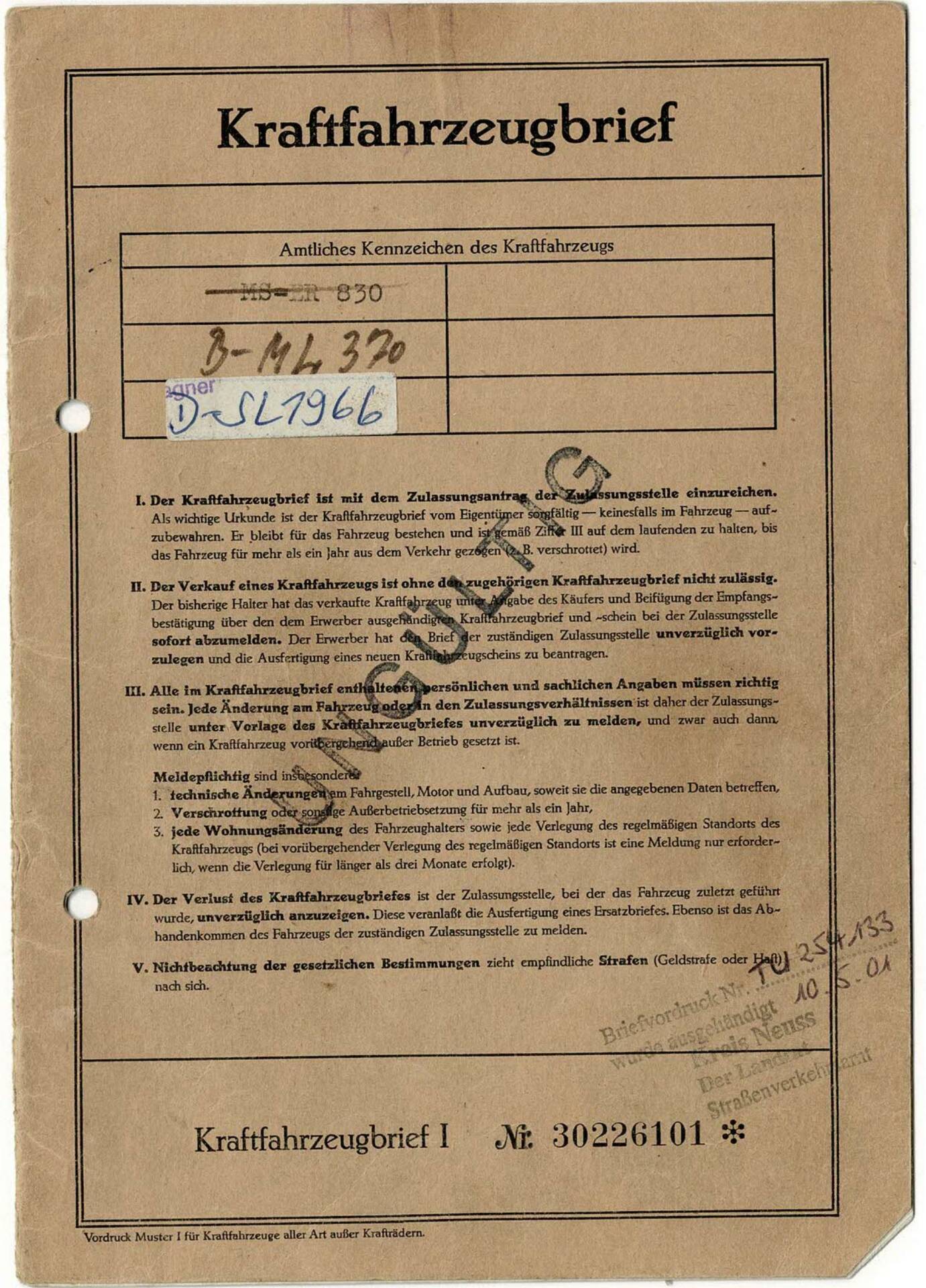 Adquirí el coche en Berlín en 1994 y, según el permiso, ha tenido un total de cuatro propietarios anteriores.