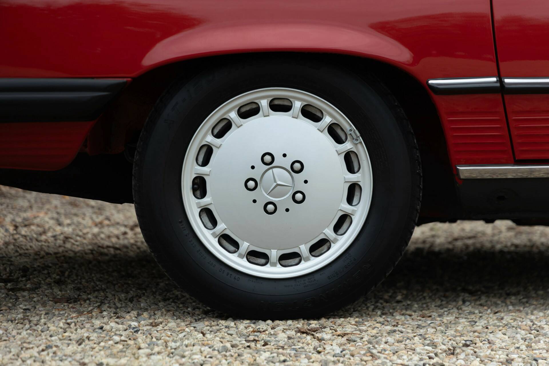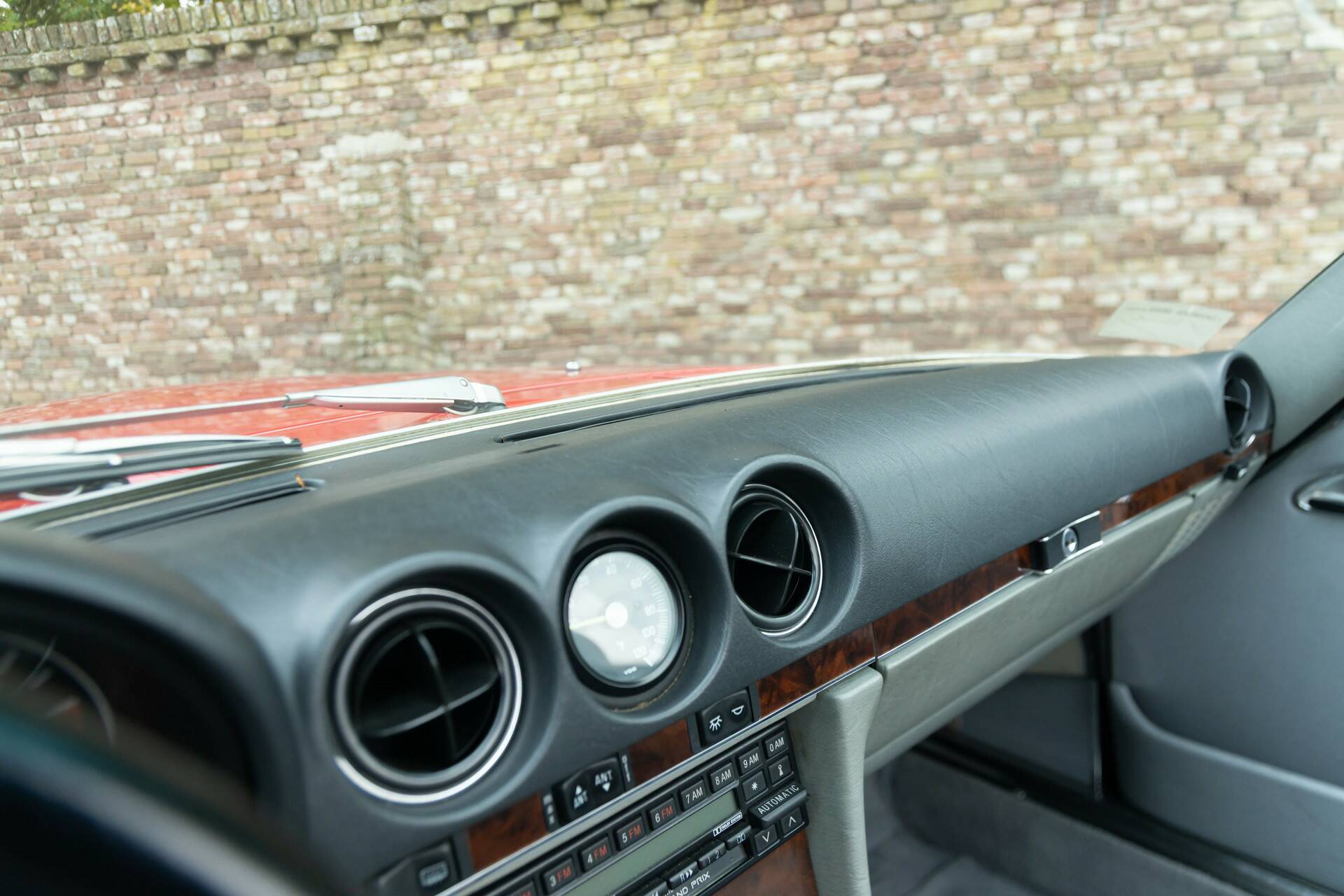 Mercedes Benz 560 SL "Becker Grand Prix" Newly delivered in "The Garden State" New Yersey - USA, Well-maintained 560 SL with the plastic pouch with booklets, In accordance with the completely original specifications, Executed in Signal Red over Alpaca Gray leather, Largely in the first coat of paint, Just an honest R107 in neat condition,The interior is beautifully maintained and cared for,