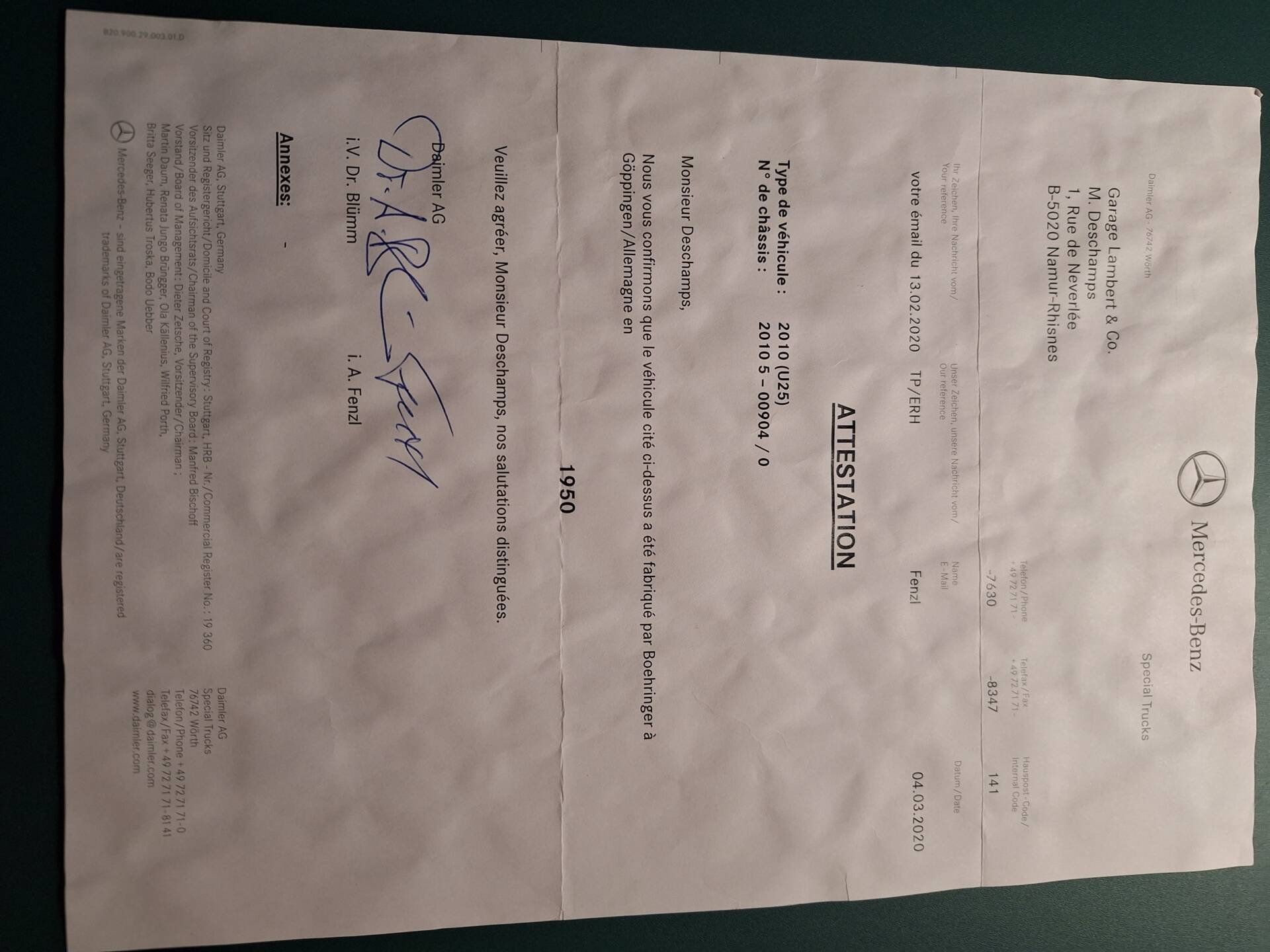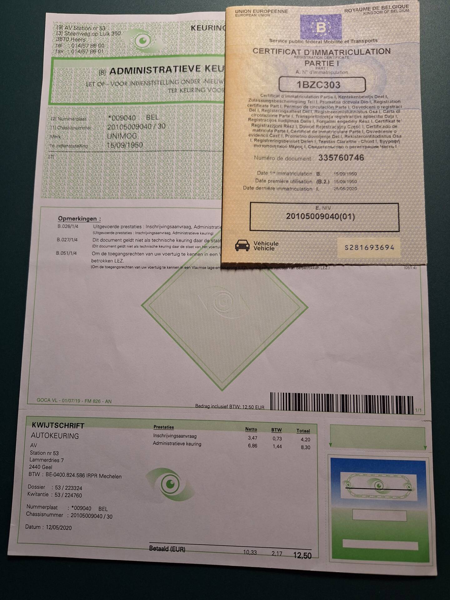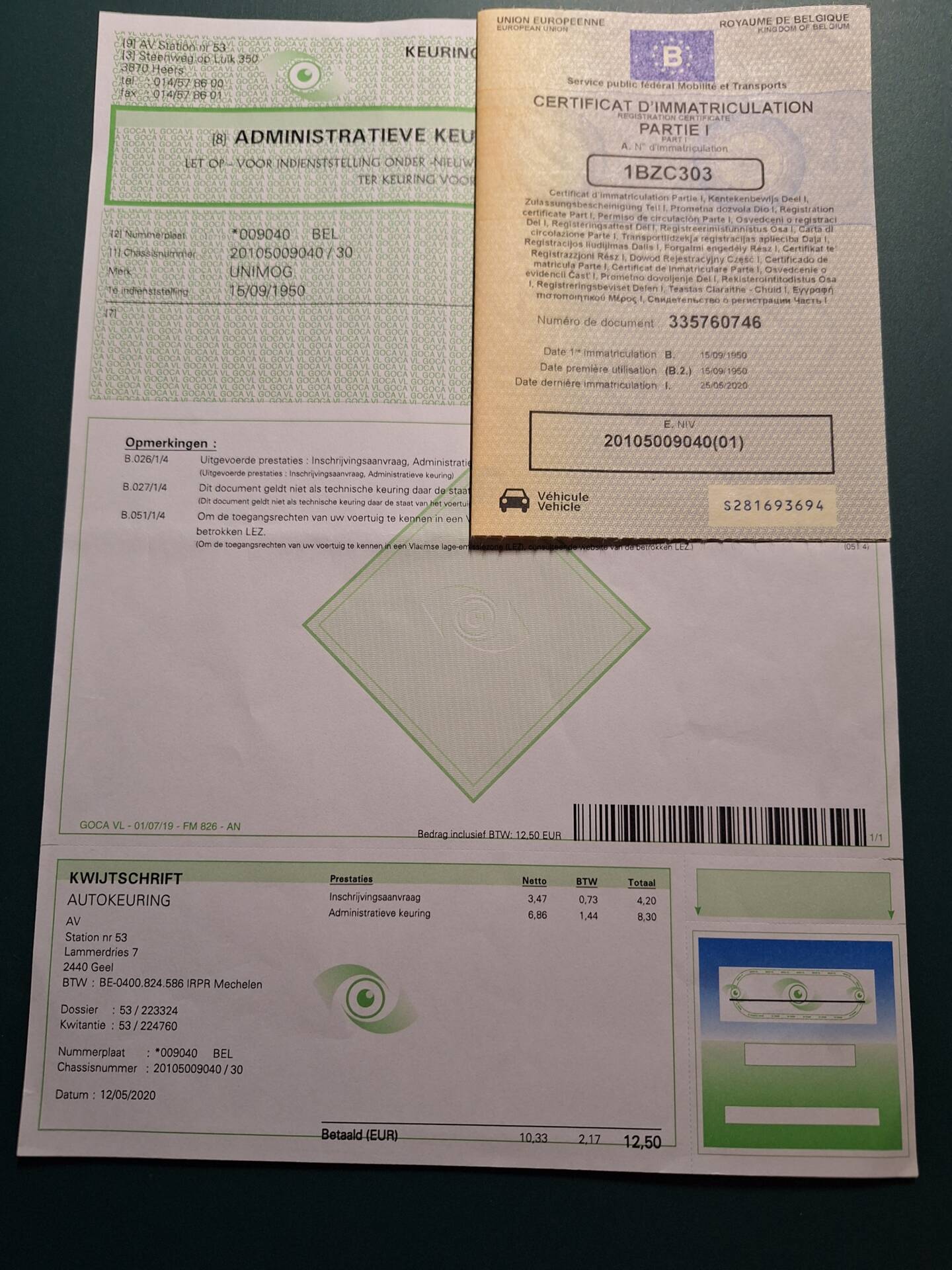 Unimog 2010 (U25) fabriqué dans les usines BOEHRINGER à Goppingen le 15/09/1950 ( voir attestation)