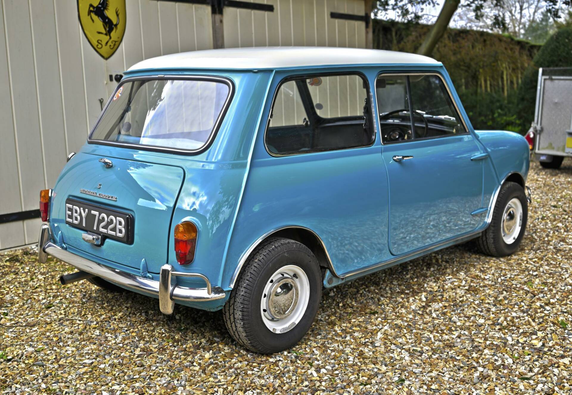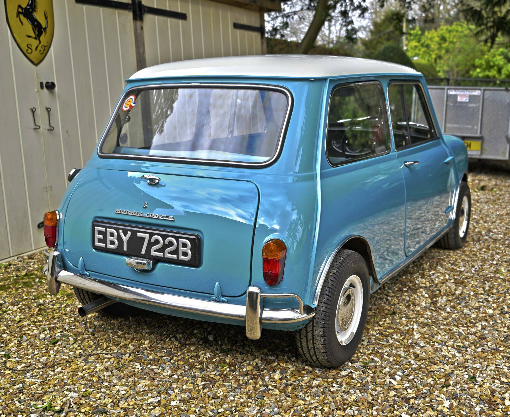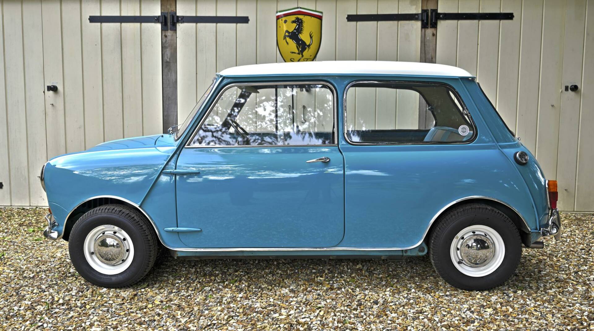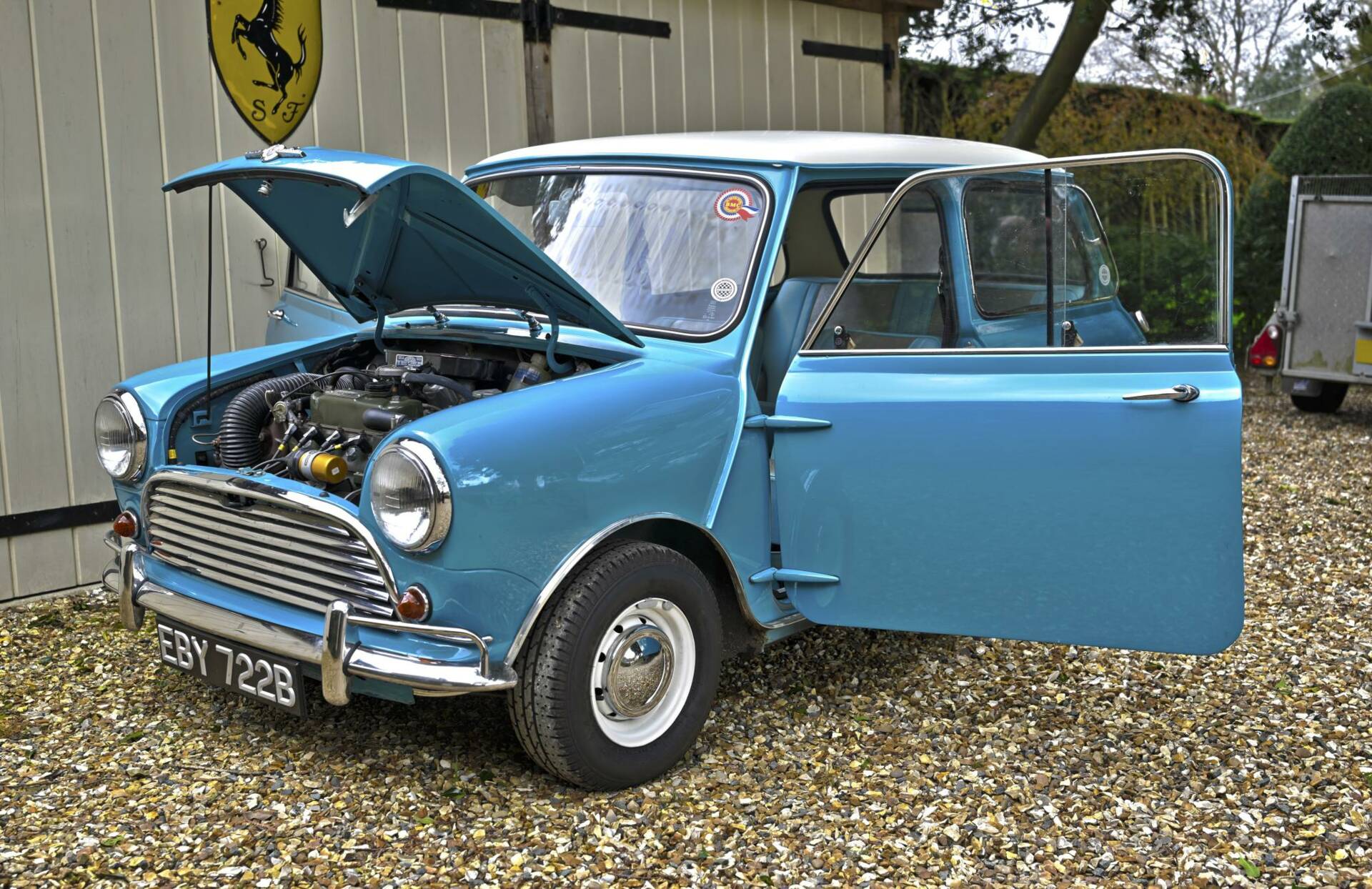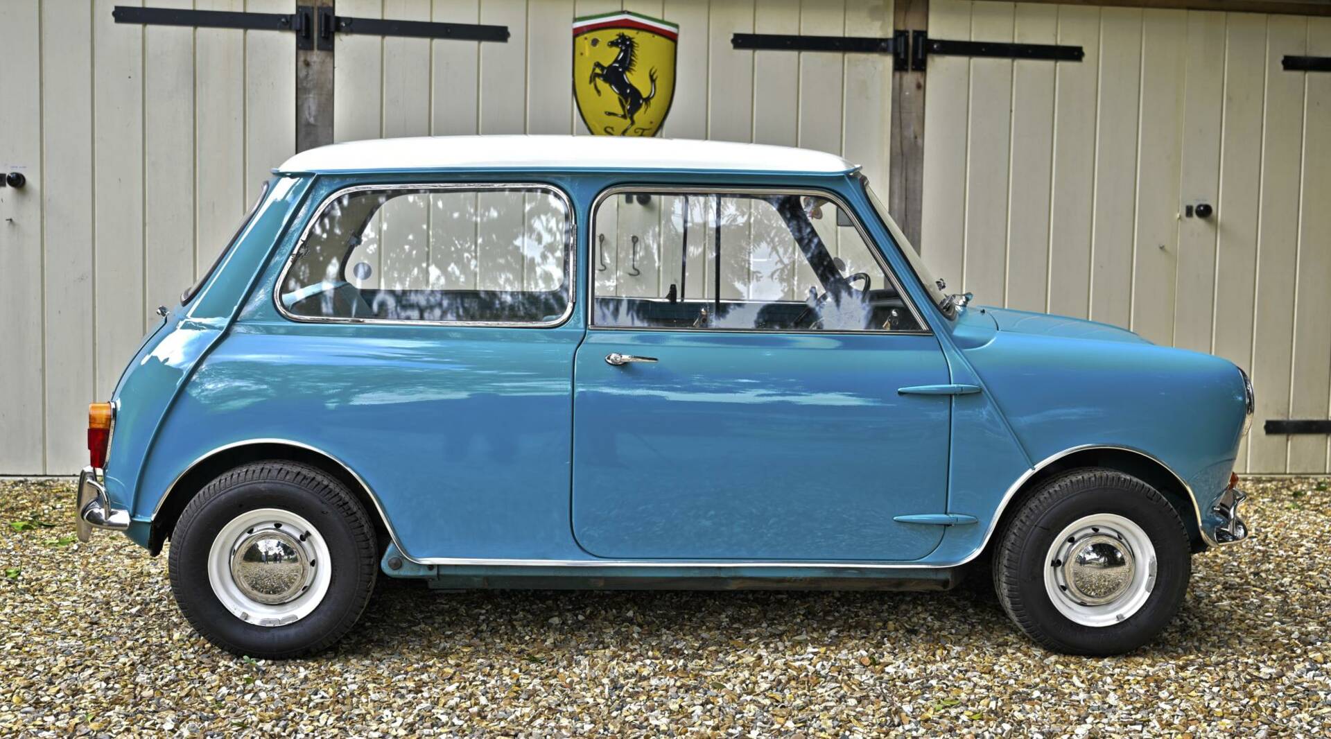 Fully restored over a three year period on behalf of and by it's then owner, a retired aircraft engineer. On completion, the car was sold to a new owner in 2016. It comes complete with photographic record and invoices totalling around £22,000 for work undertaken. This car was ordered new with the optional wider wheels which it wears to this day inlcuding a full size spare under the boot tray. Finished in Surf Blue with an Old English White roof and complemented by the correct Powder Blue/ Gold Brocade Grey vinyl trim, this Mini has been superbly restored to an impeccable standard.