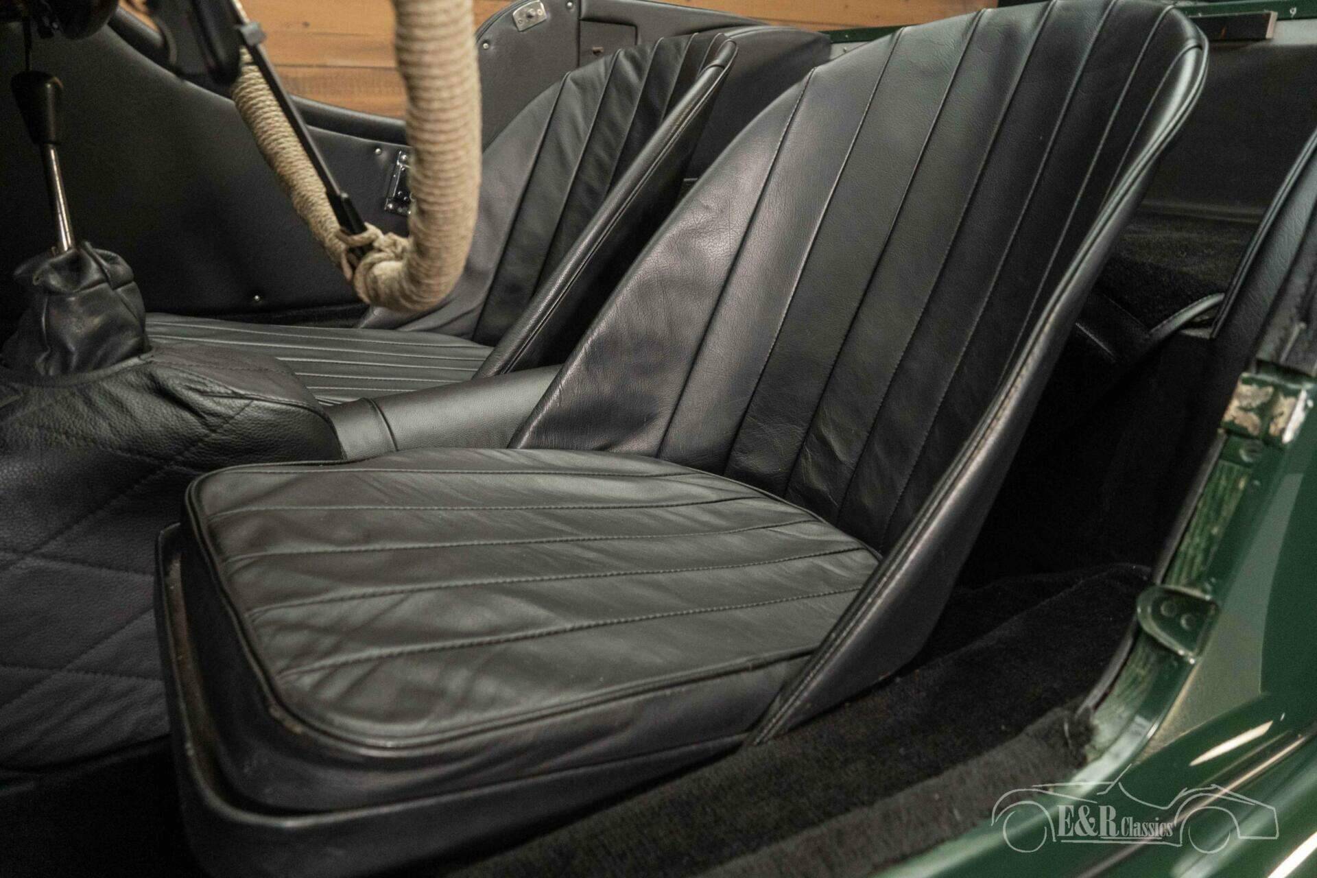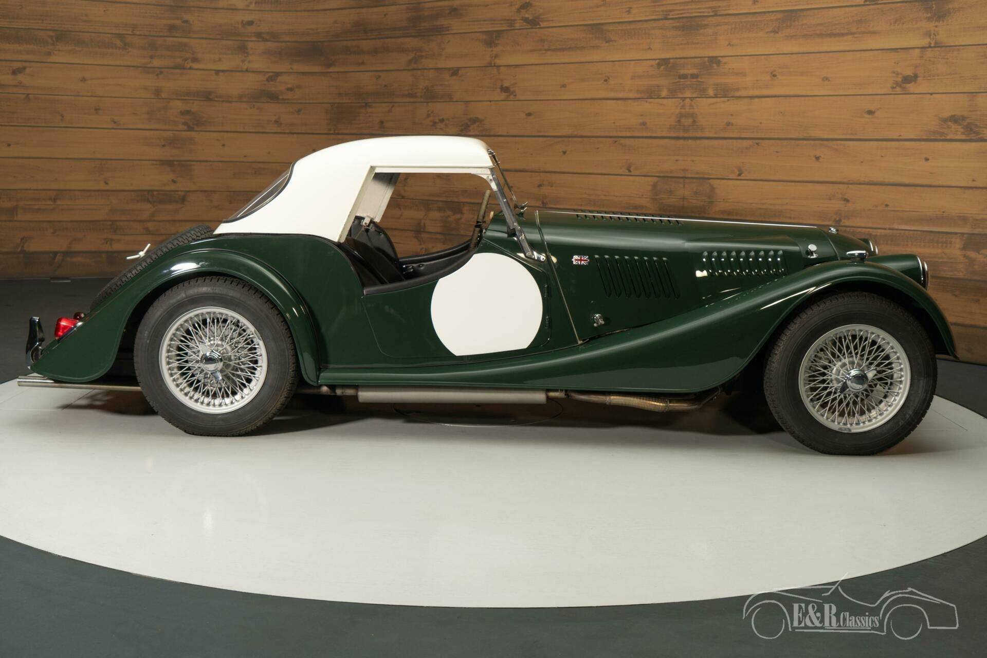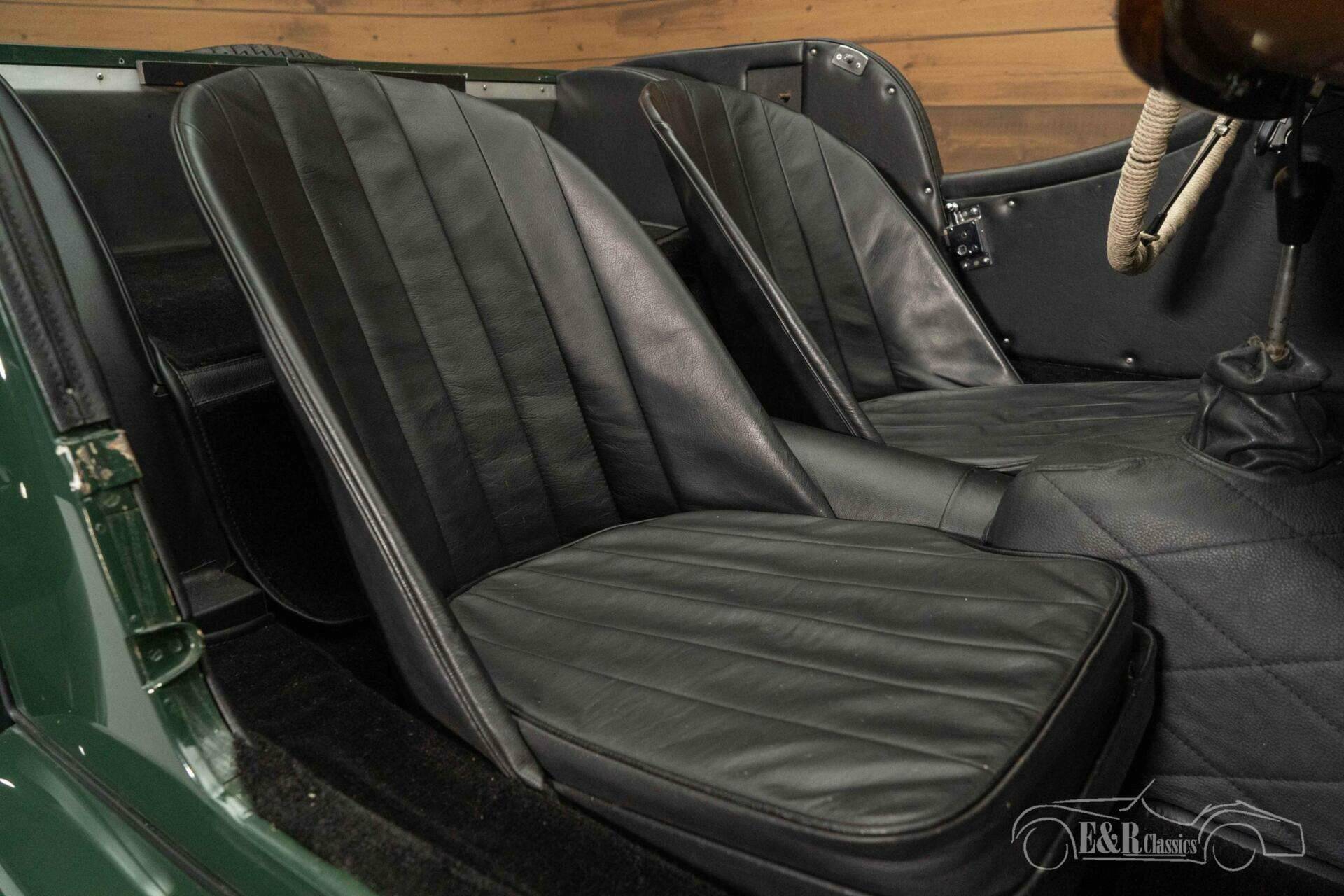The real Morgan connoisseurs see that this is anything but a standard Plus 4 Super Sports. This classic has been converted into a low-line supersport with original factory body and factory wings. It is finished in the beautiful colour British Racing Green and sits on a set of painted 72-spoke wire wheels. The interior has also been updated and equipped with Connolly leather bucket seats, a wooden dashboard with restored gauges and the original Brooklands steering wheel. What makes this Morgan Plus 4 completely special is the fact that it comes with an original Lawrence Tune hard top.