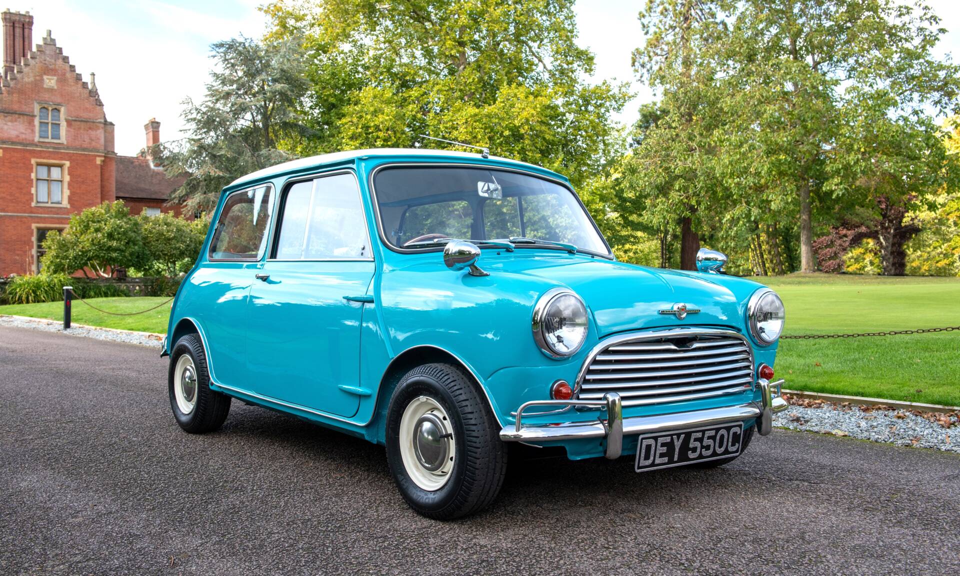This delightful Mini Cooper was supplied new by Stewart and Arden of Staines in July 1965 and presents wonderfully in the desirable colour combination Surf Blue with a white roof and is fitted with the optional extra of a heater. This superb Cooper retains its original floors, sills and subframes, none of which appear to have been patched up. This example has benefitted in recent years from being totally refreshed, including the replacement of most of the brightwork and attention to mechanicals, paintwork and interior. The car is also fitted with wider wheels and Yokohama tyres. It is believed that the indicated mileage is correct, as we know, that due to an owner's bereavement, the car spent a long time in storage. We are informed that these stunning Mini drives and stops well and that it performs as it should. This eye-catching example is sensibly estimated and ready for immediate use by a new owner. Consigned by Dominic Lake