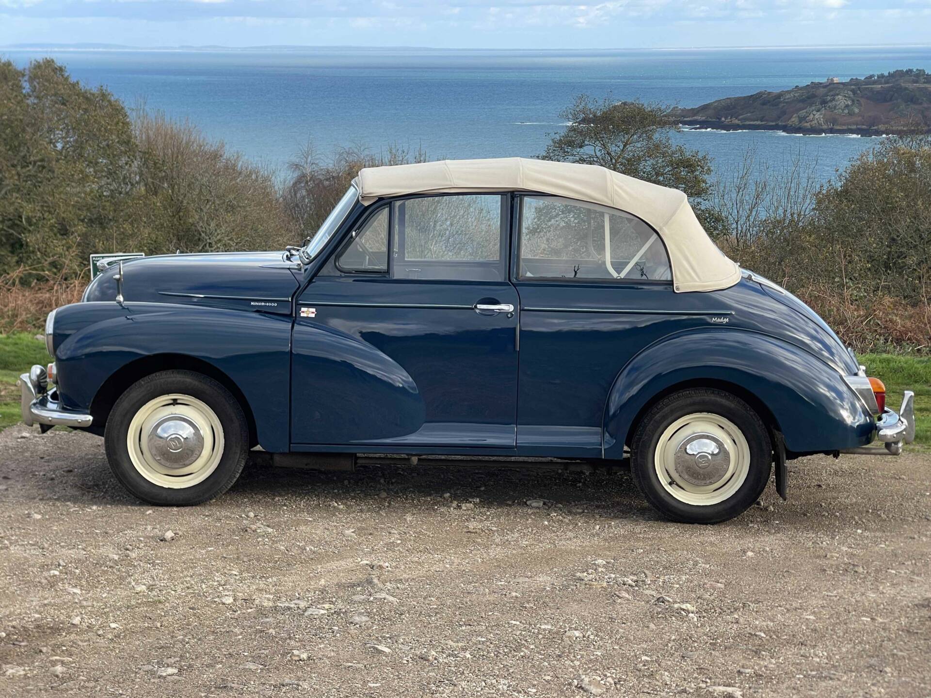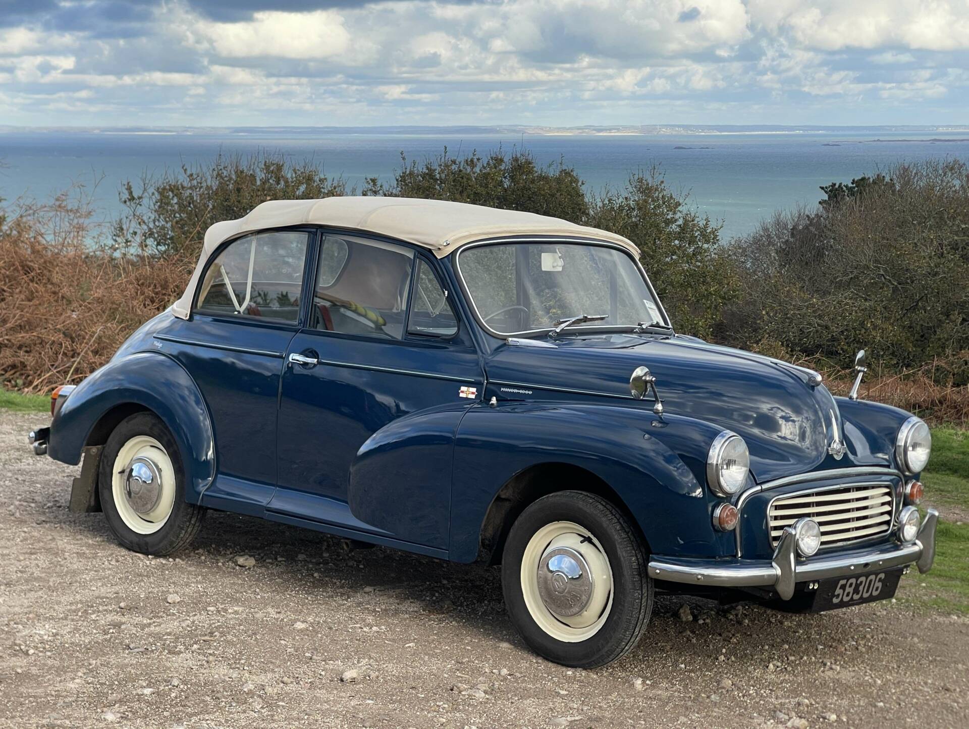 The Minor offered here is a genuine convertible model, first registered in July 1966 in the UK. We have documentary history for the car, which appears to have spent its life in the southwest, in the hands of a single family from 1978 to 2103. There is a history file with the vehicle which lists earlier repair and maintenance work with previous owners, together with old MOT certificates. It was purchased by a Guernsey resident in 2018. Following importation and re-registration in the island, the car has received some mechanical attention whilst being enjoyed, regularly maintained and well cared for. We acquired the convertible at the end of 2024.