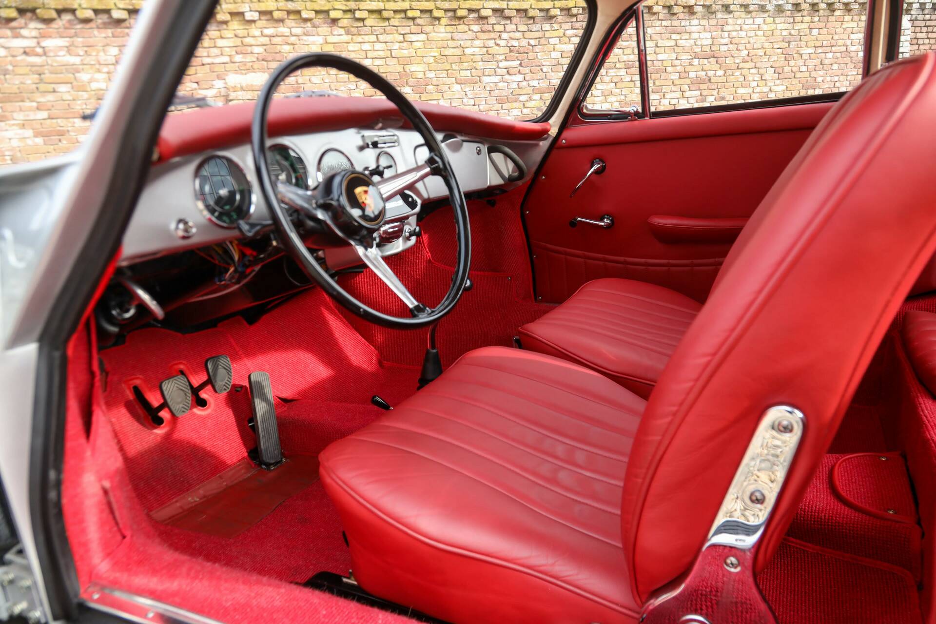 The example you see here is a 1964 Porsche 356C 1600 Coupé. Finished in silver grey with a full red interior. A timeless combination that is not easily overlooked. The color scheme is beautiful. This Porsche has been restored and overhauled to a standard reminiscent of how such work was often carried out in the late 1990s. Solid, and with great attention to detail.