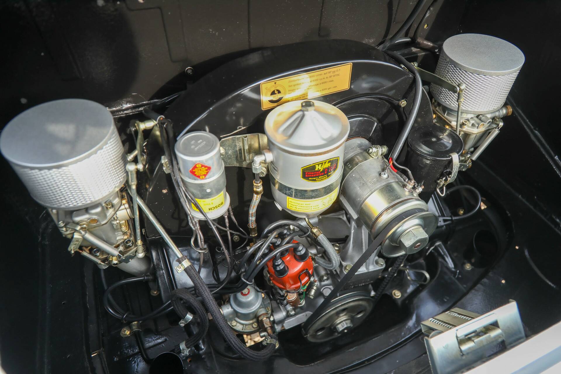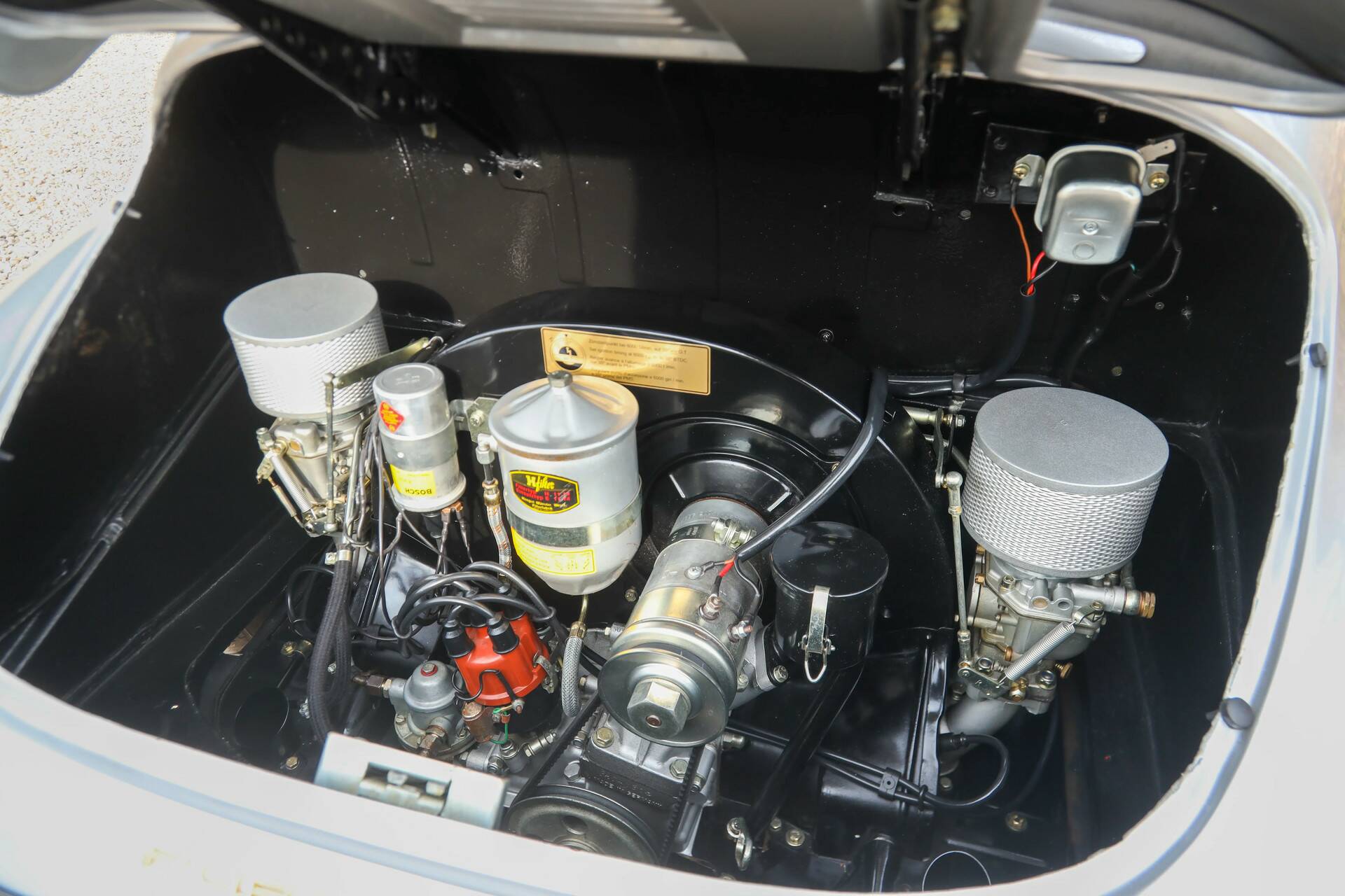 At the rear sits the well-known 1.6-liter four-cylinder boxer engine. Air-cooled, of course, as it should be in a 356. Driving a 356 like this is a genuinely enjoyable experience. Thanks to the restoration work, this Porsche drives exactly as you would expect: light, direct, and solid.
