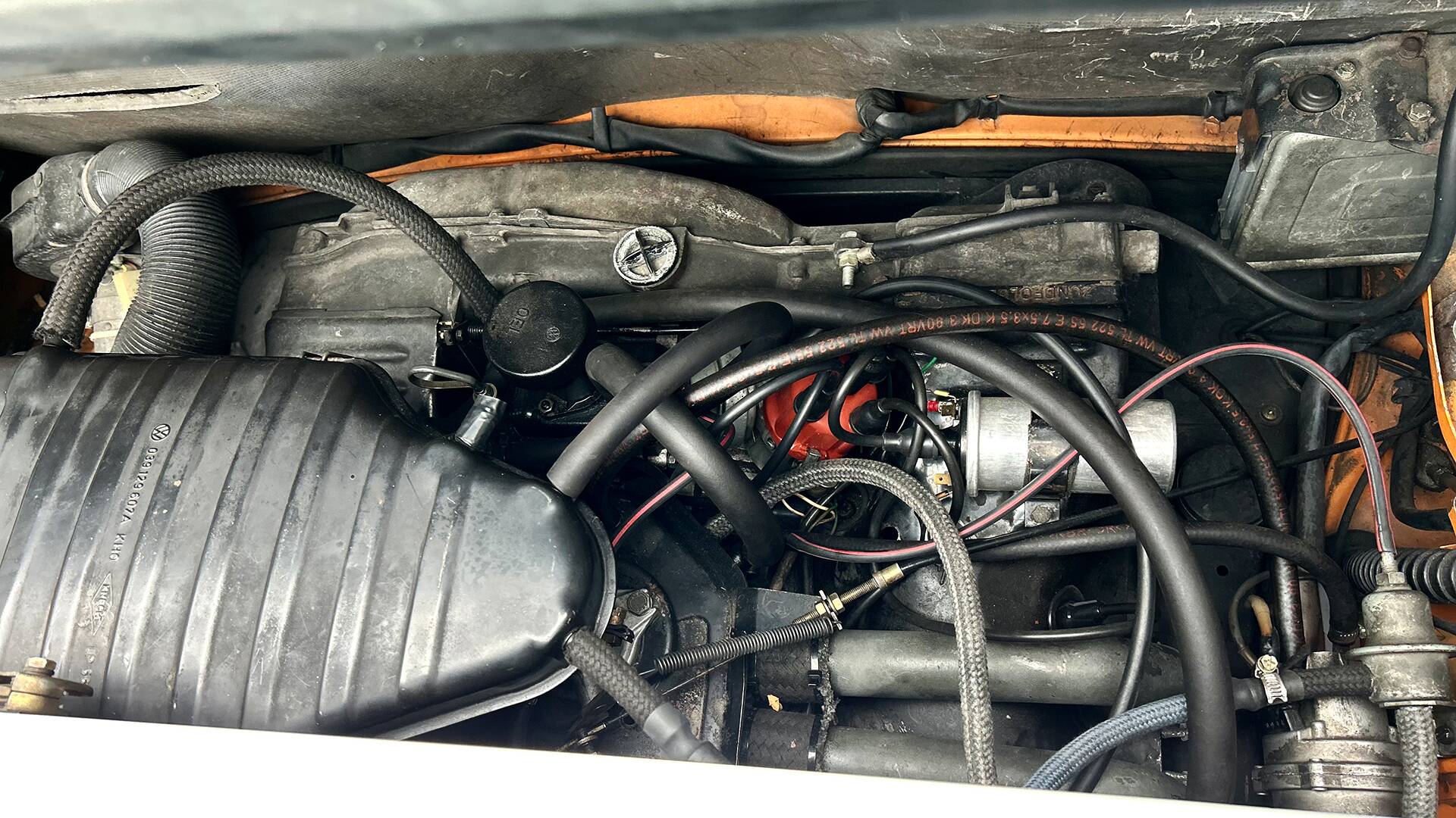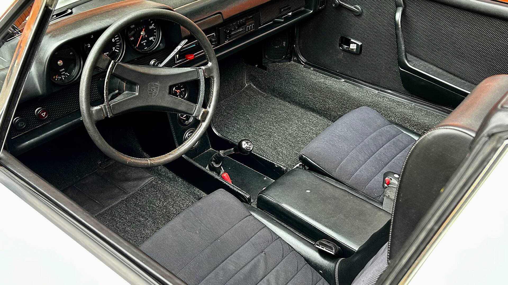 The 914 offered here is a rather late example from 1974. As such, it benefits not only from an improved gearbox and greater resistance to corrosion, but it was also ordered with the then relatively new 2-litre four-cylinder engine. This unit is around 40 kg lighter than the six-cylinder alternative and still delivers an almost equivalent 100 hp. The interior also features the period “Comfort Package,” including the three supplementary instruments on the centre console.