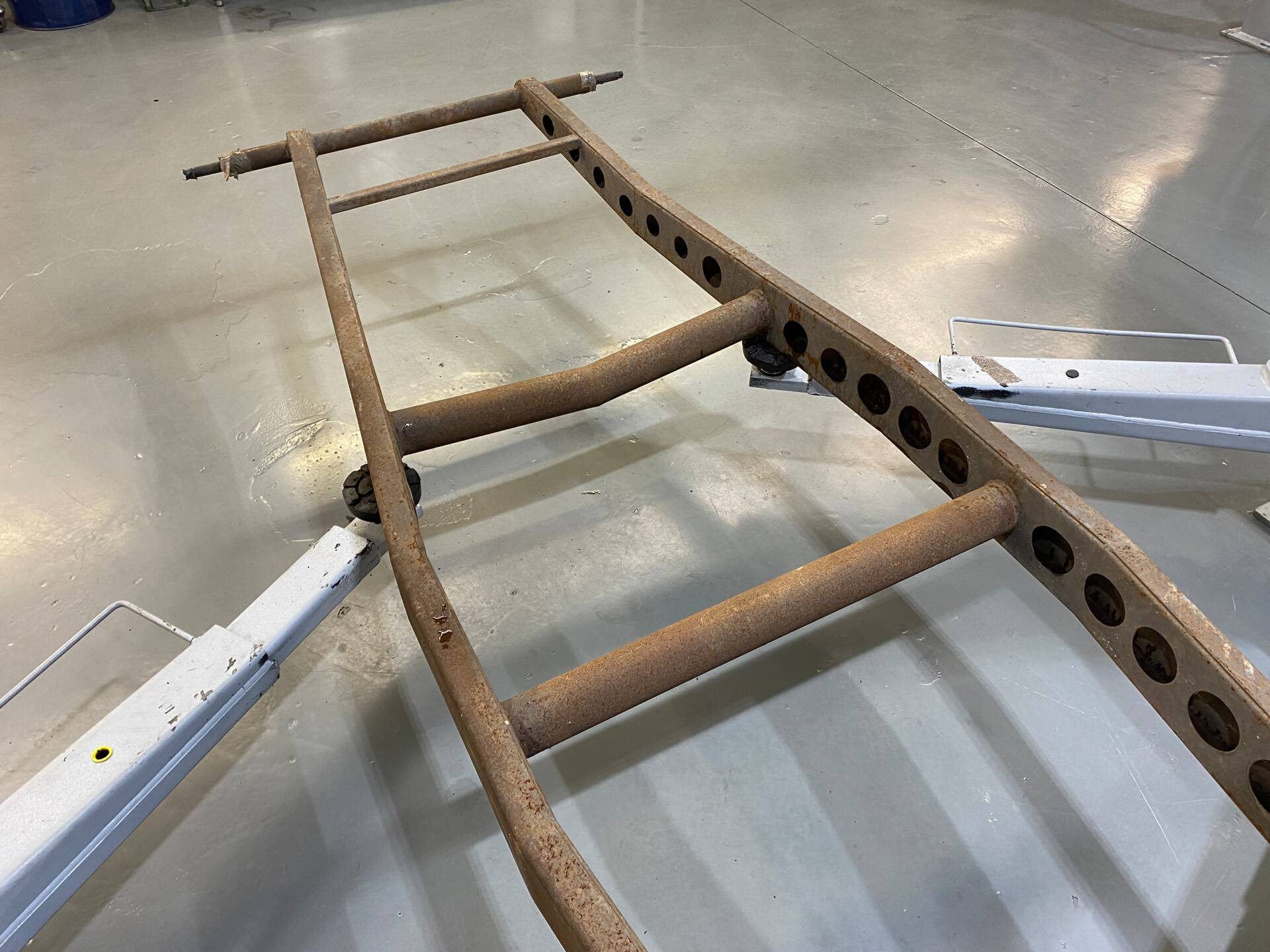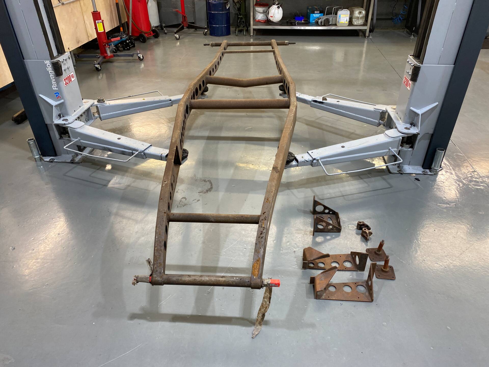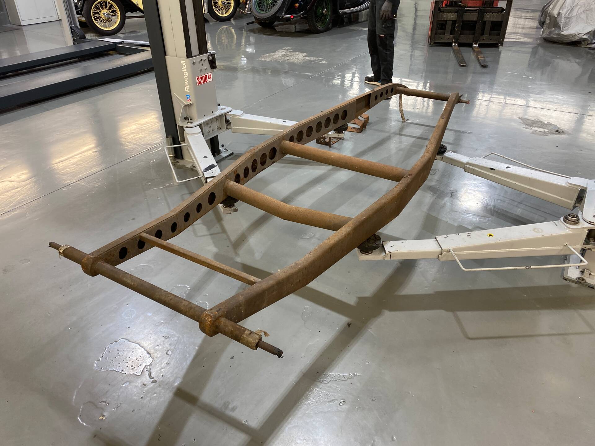 Offered for sale is a faithfully reproduced Riley TT Sprite chassis. An English registration document and a certificate of non-objection are included. The chassis originates from England, and its dimensions were taken directly from the original TT Sprite. This chassis is ideally suited for building a special.