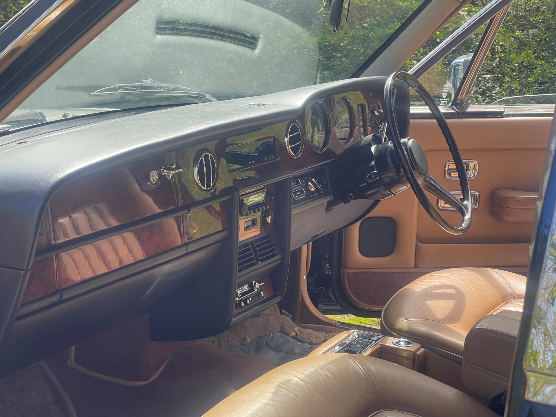 The tan leather interior shows little patination and is good throughout, as are carpets, headlining and veneer work. Fitted with air conditioning as might be anticipated, there is a period sound system, comprising push-button Blaupunkt radio and Pioneer cassette tape player!