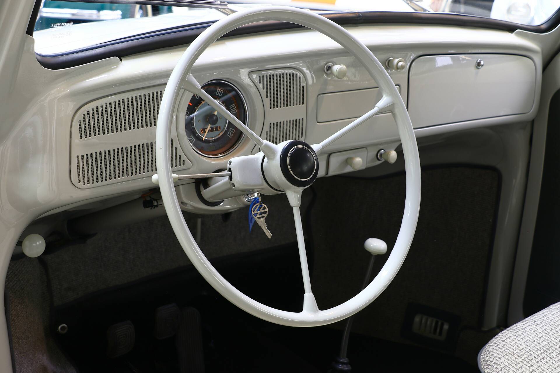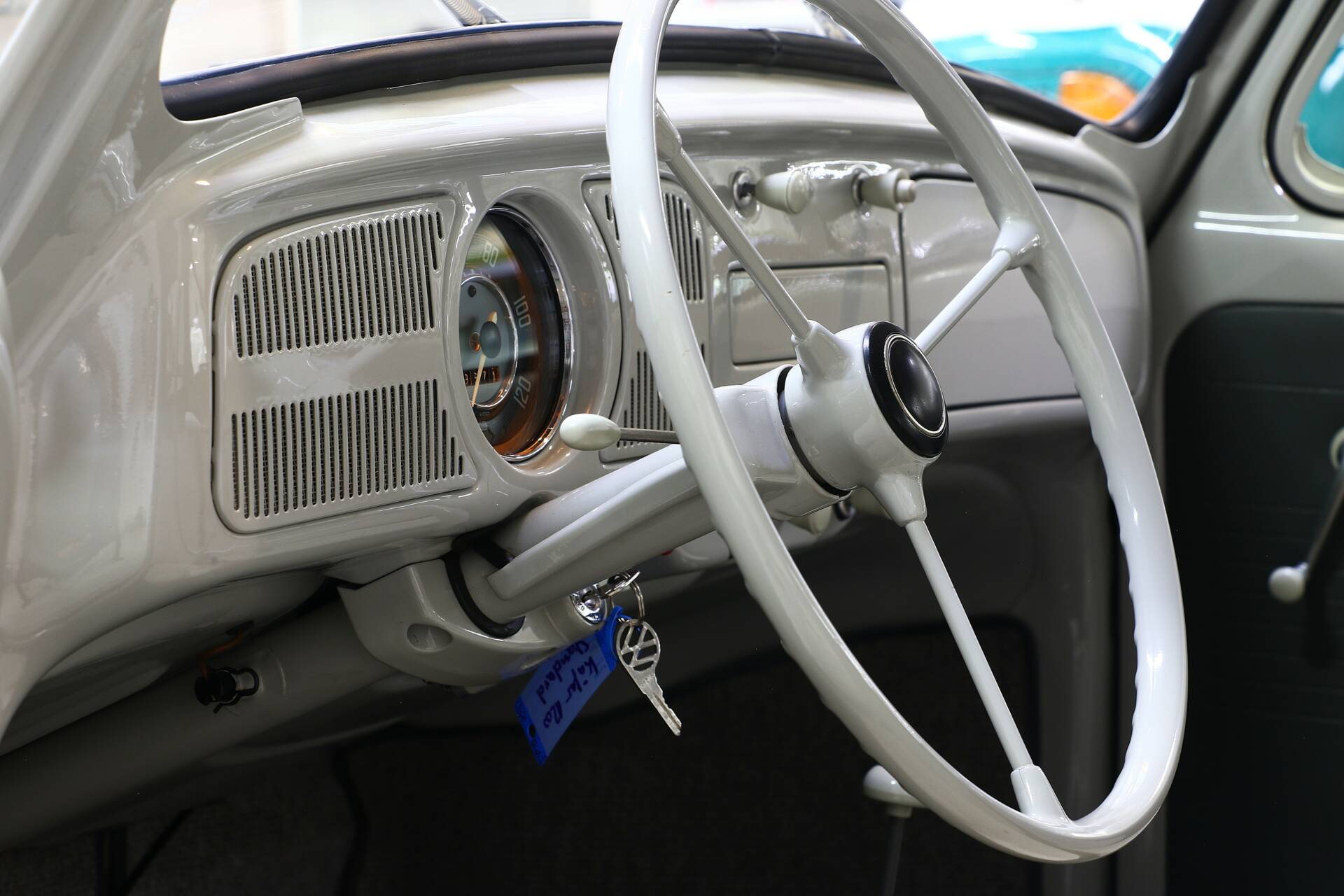 Mit seiner neuen 6V Batterie springt der Käfer sofort an. Er nimmt spontan Gas an und klingt wunderbar entspannt und souverän nach Käfer. Die Schaltung arbeitet exakt und sein 30PS Motor gibt sich weitaus kräftiger, als es seine Papierform suggeriert.