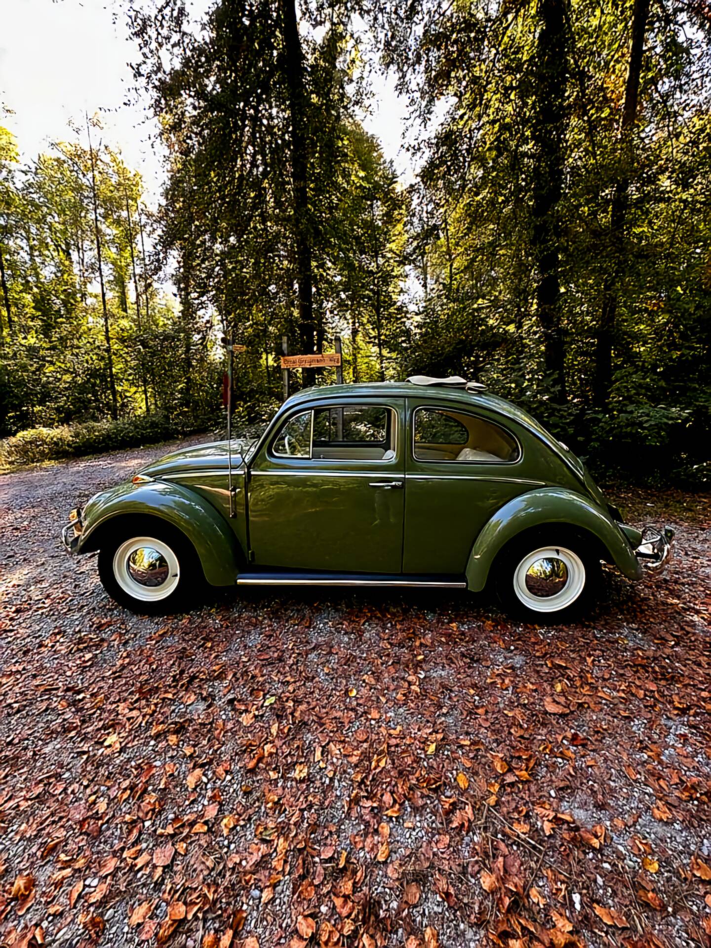 Liebevoll restaurierter olivgrüner VW Käfer 1960 mit Faltdach – fahrbereit, originalgetreu & mit Charme.