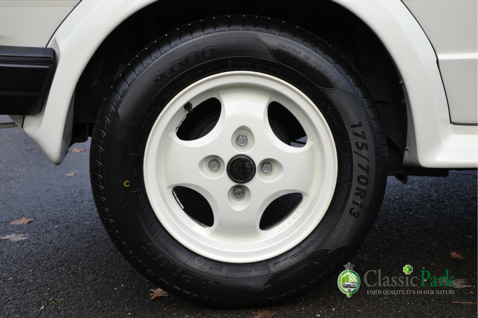 • White four-spoke alloy sport wheels, 5.5 J × 13 inch