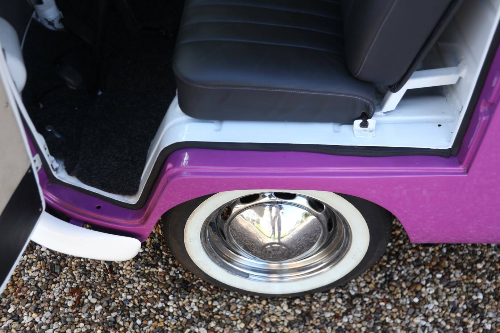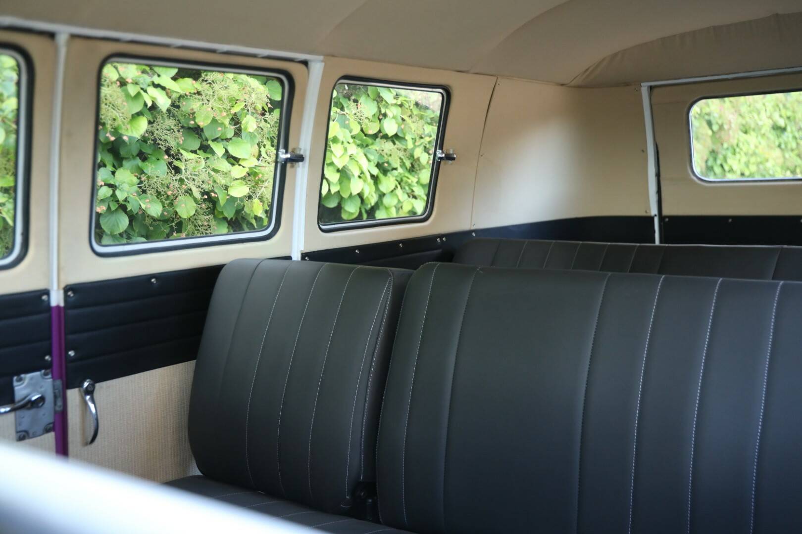 This 1958 example is the result of a carefully executed older restoration. It is an 11-window Combi, restored with meticulous attention to detail and authenticity by a Dutch enthusiast. The result is a bus that fully retains the charm of the classic T1 while standing out with its vibrant and lively appearance: an exterior in white complemented by an amethyst-colored top, a combination that immediately draws attention and perfectly suits the iconic character of this Microbus.