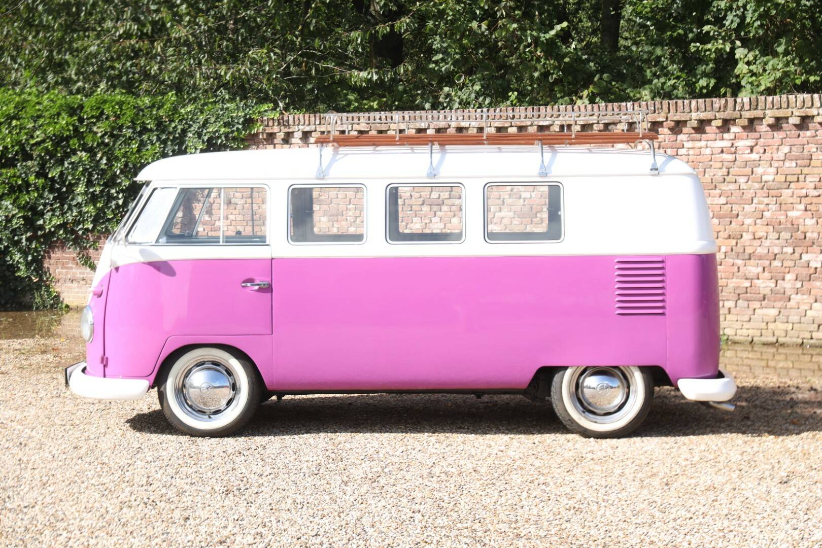 Volkswagen T1 Splitscreen Combi "Microbus" Restored and rebuilt condition, Older restoration with more than just good maintenance, An 11-window second series of the Type 1, A European (Dutch) restoration undertaken by an enthusiast, Vibrant color combination of white over amethyst, Fabulous classic for the whole family,