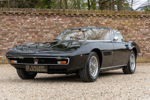 Maserati Ghibli 4700 Spyder "Built by Campana Carrozzeria Modena" Newly delivered in Switzerland at the time, Campana conversions are known for quality modifications and improvements, Equipped with the matching numbers engine, Refined color scheme "Nero con pelle bordeaux" interior, Maserati Classiche about the Ghibli Spyder: "Simply the most glamorous Maserati ever built".