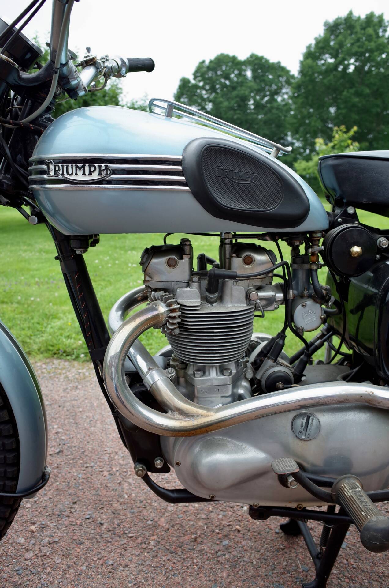 This particular example stands out as a highly original, matching-numbers machine, retaining its factory original components throughout. Remarkably, it still wears its original first paint, original seat cover and original Dunlop rims, rare survivals that speak to careful ownership and preservation over the decades. Such authenticity places it among the more desirable surviving TR5s, as originality is increasingly prized.