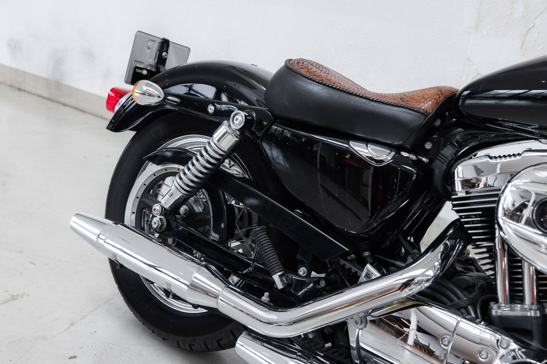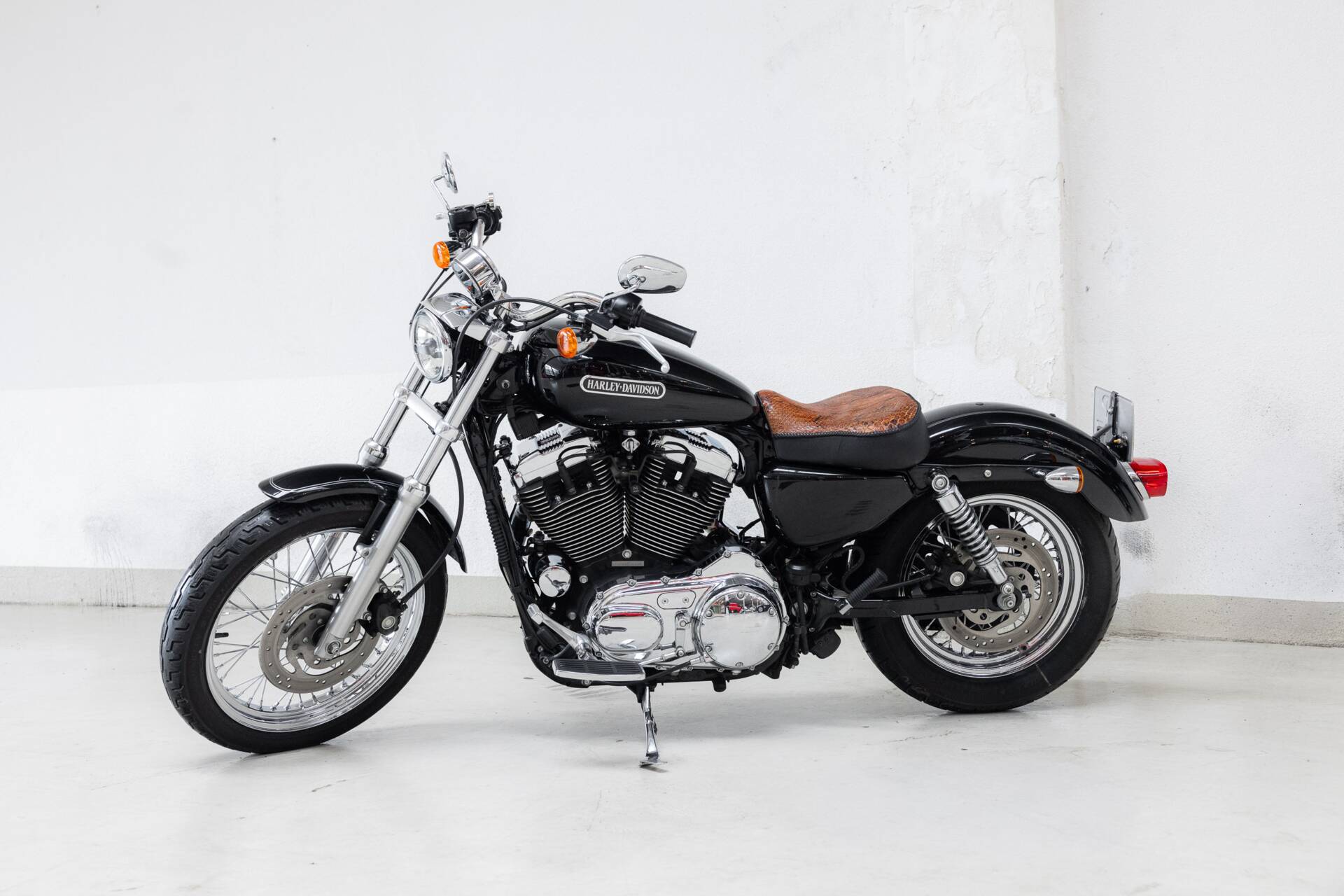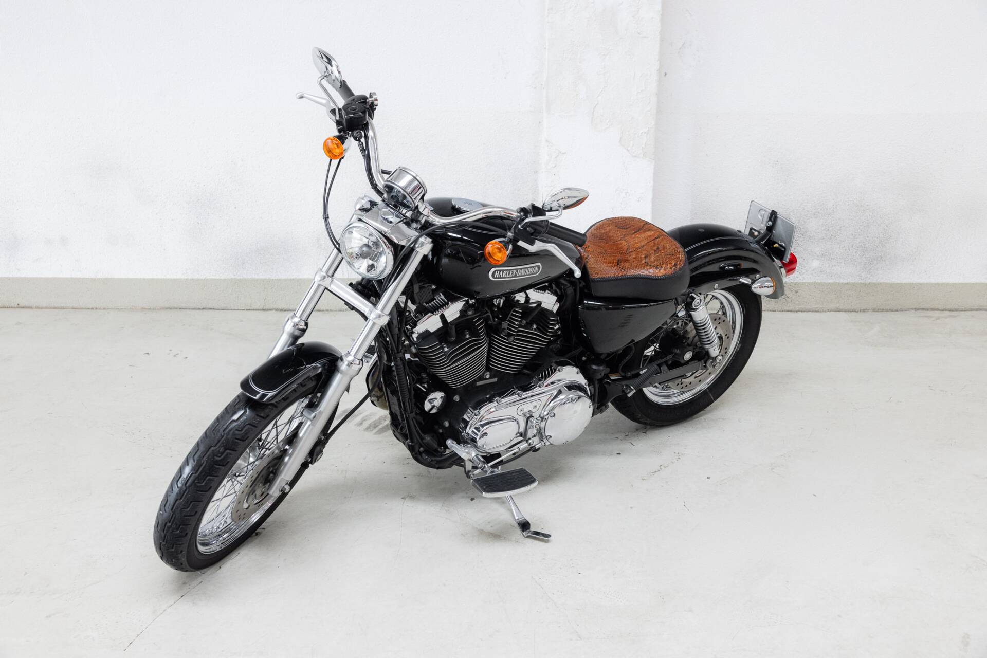 In terms of style and comfort, this is the Sportster you want: a low seat height ideal for longer rides, equipped with a snakeskin solo seat and an extra passenger seat, so you can cruise in style — solo or two-up.