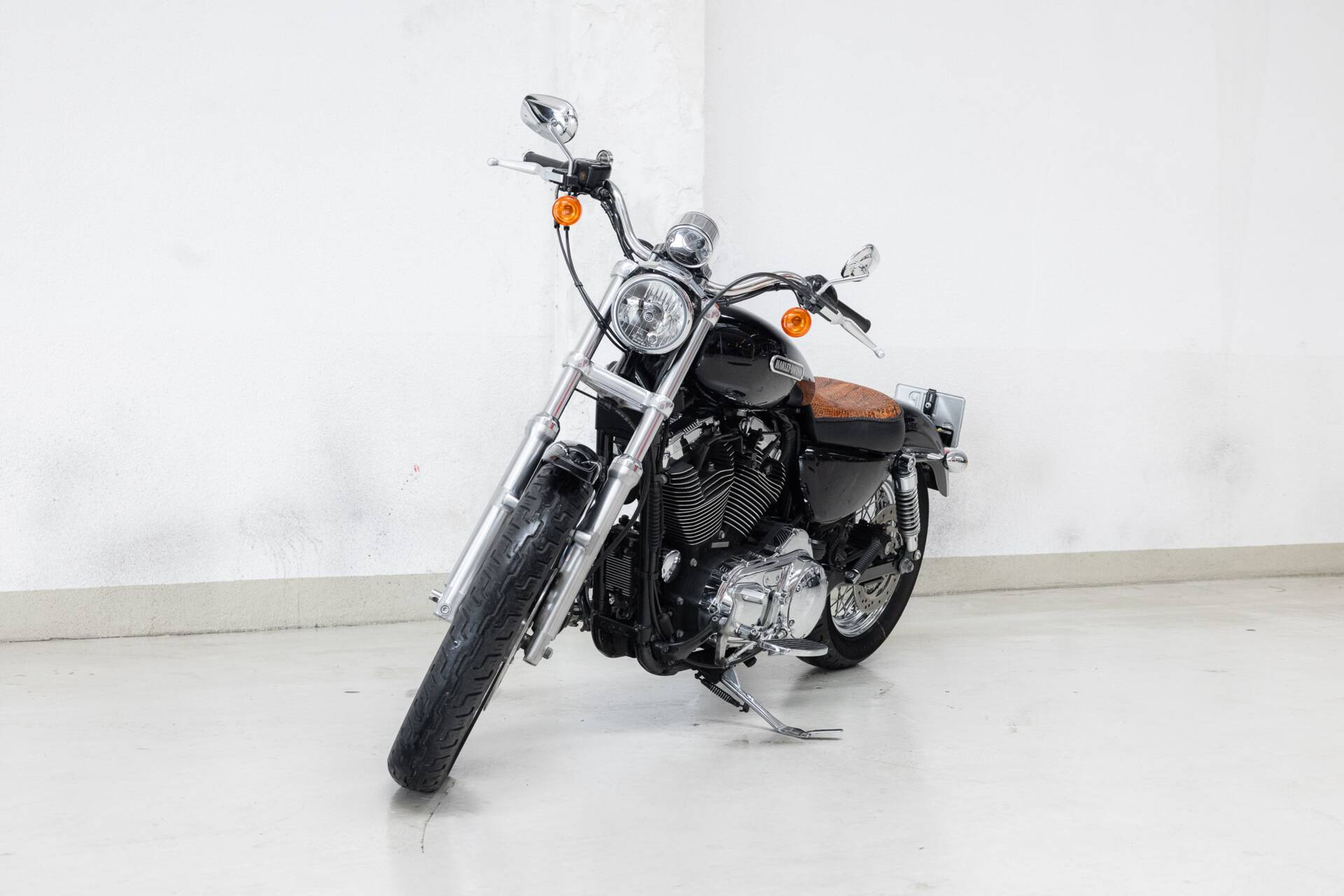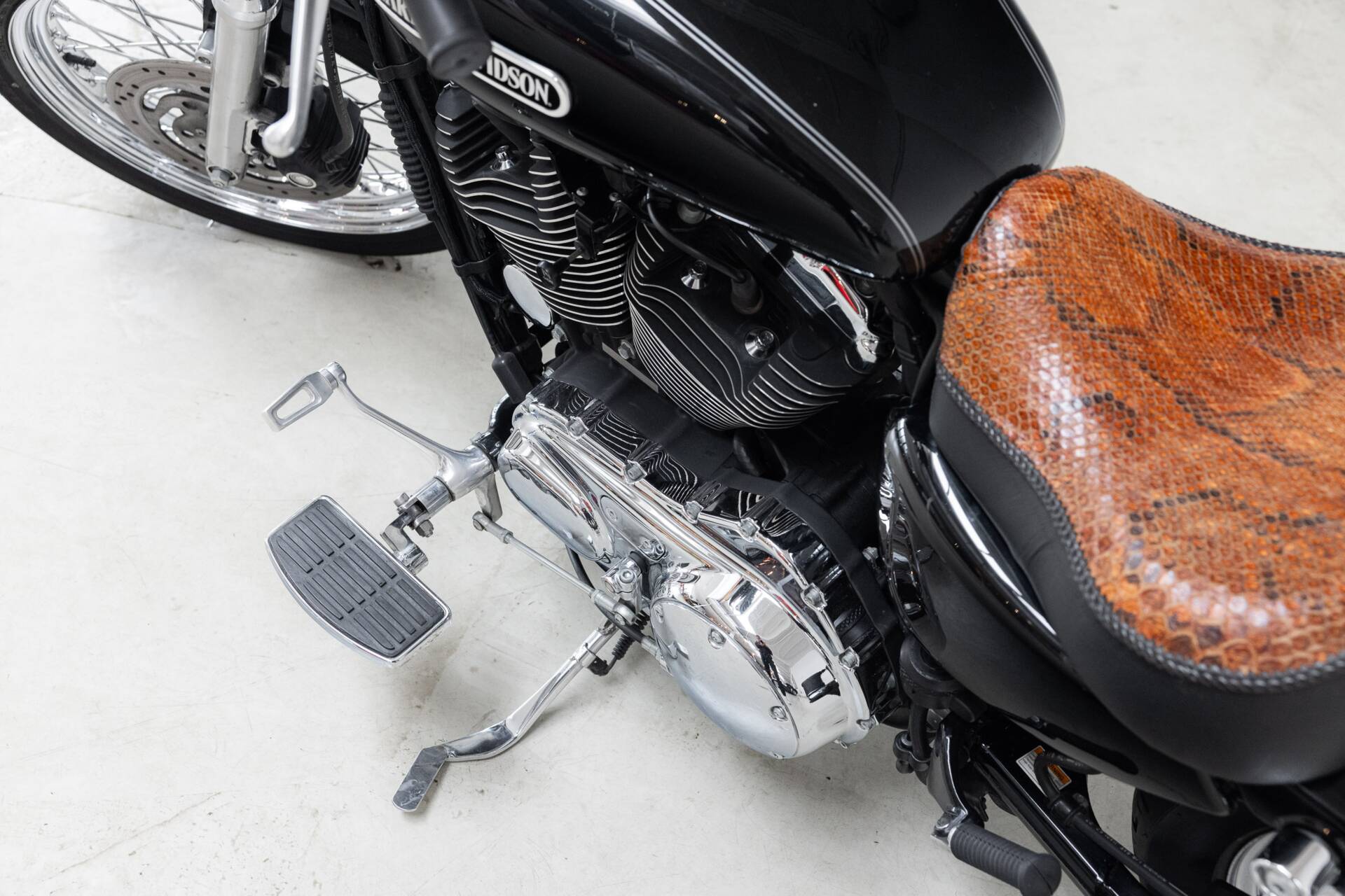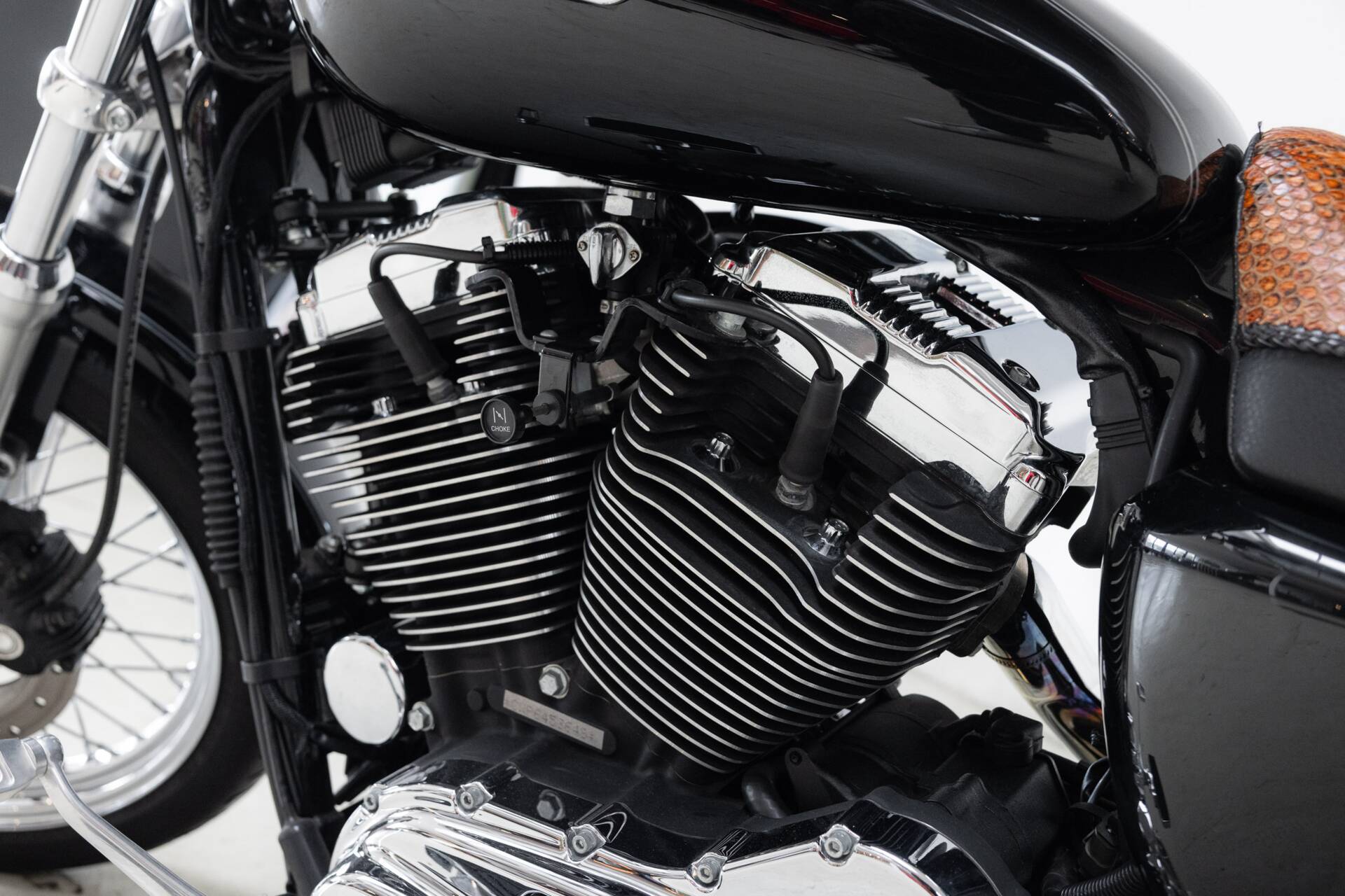 In terms of style and comfort, this is the Sportster you want: a low seat height ideal for longer rides, equipped with a snakeskin solo seat and an extra passenger seat, so you can cruise in style — solo or two-up.