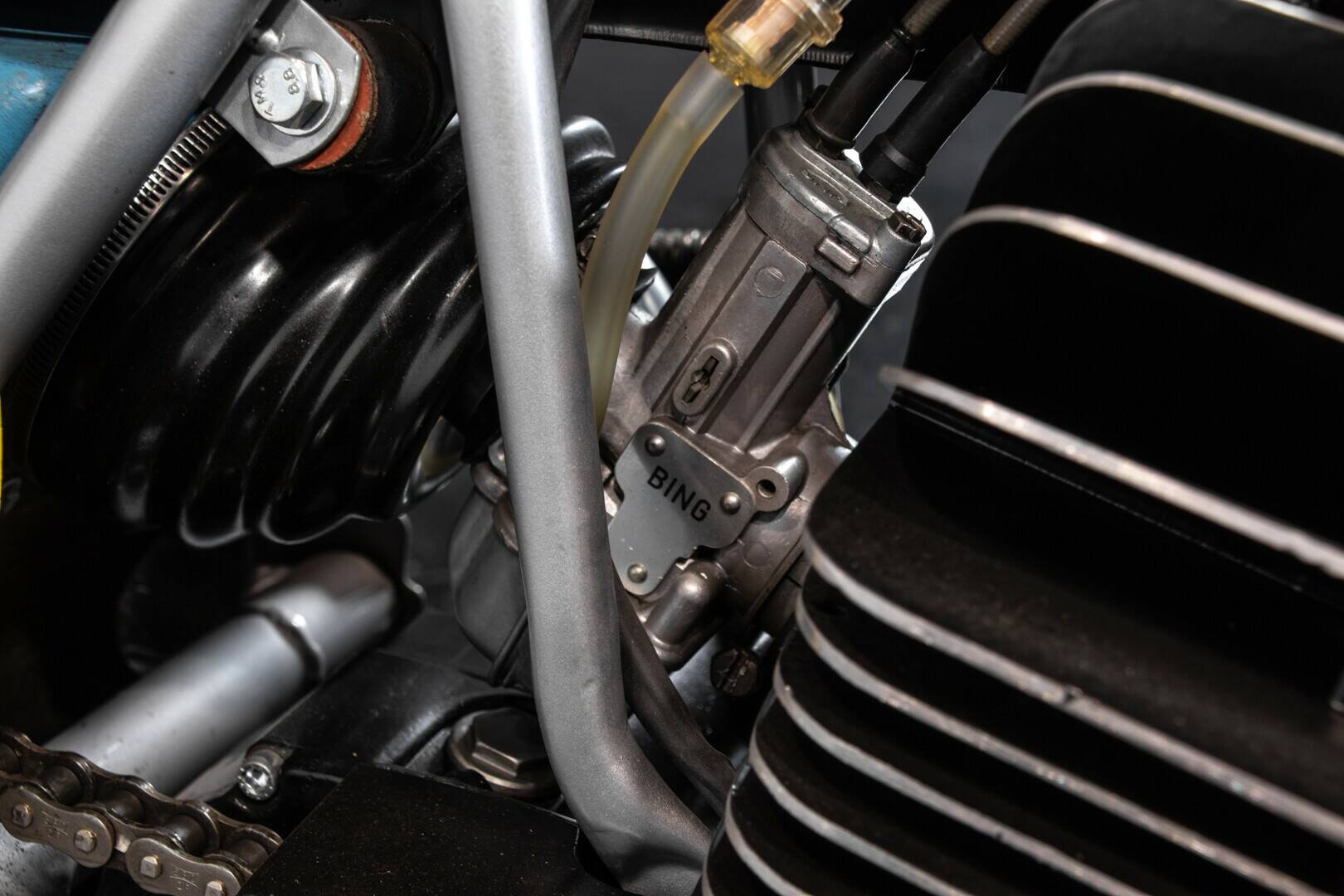 E poi comandi CEV e Magura (rigorosamente Made in West Germany) con carburatore Amal inglese.