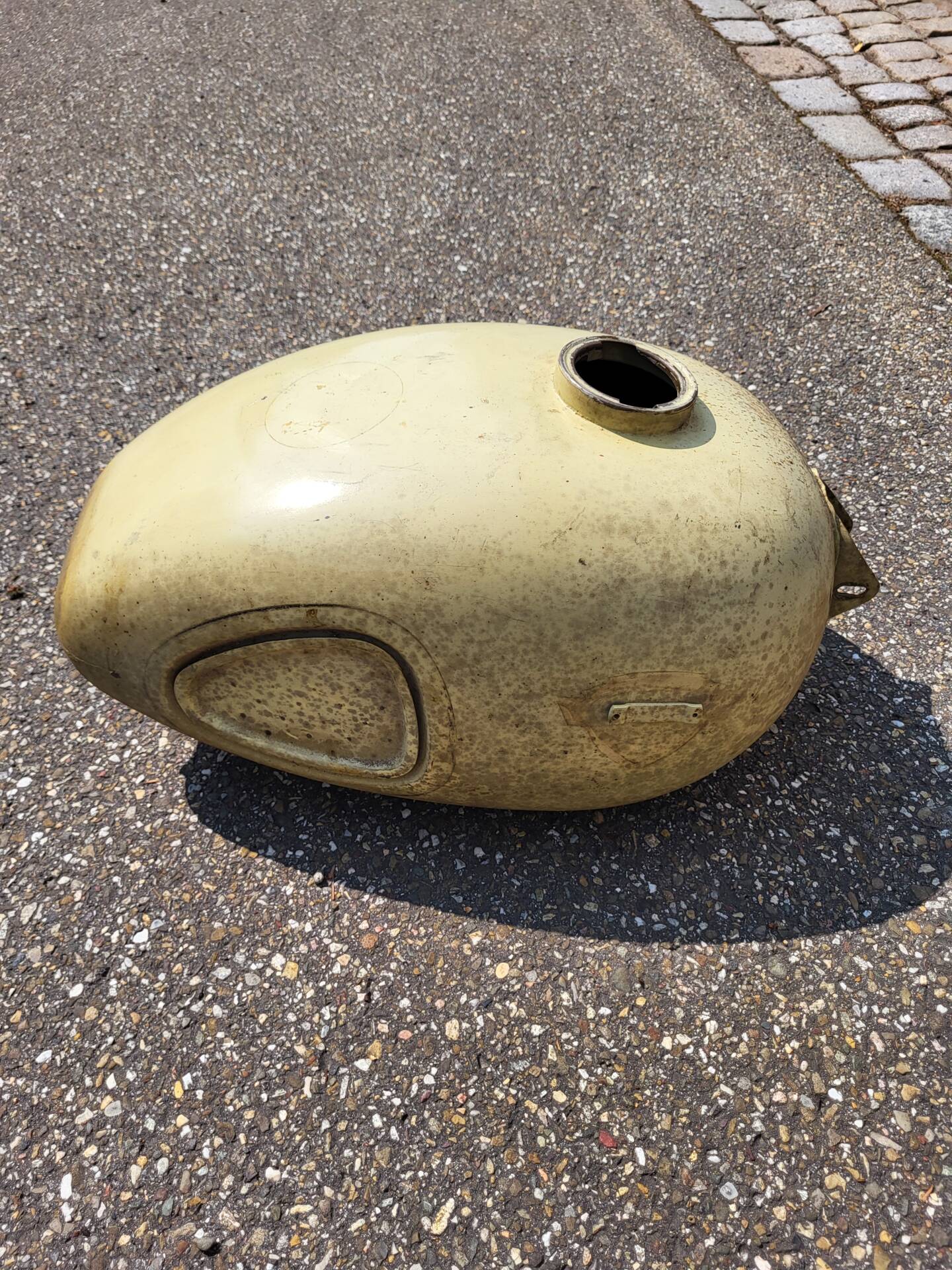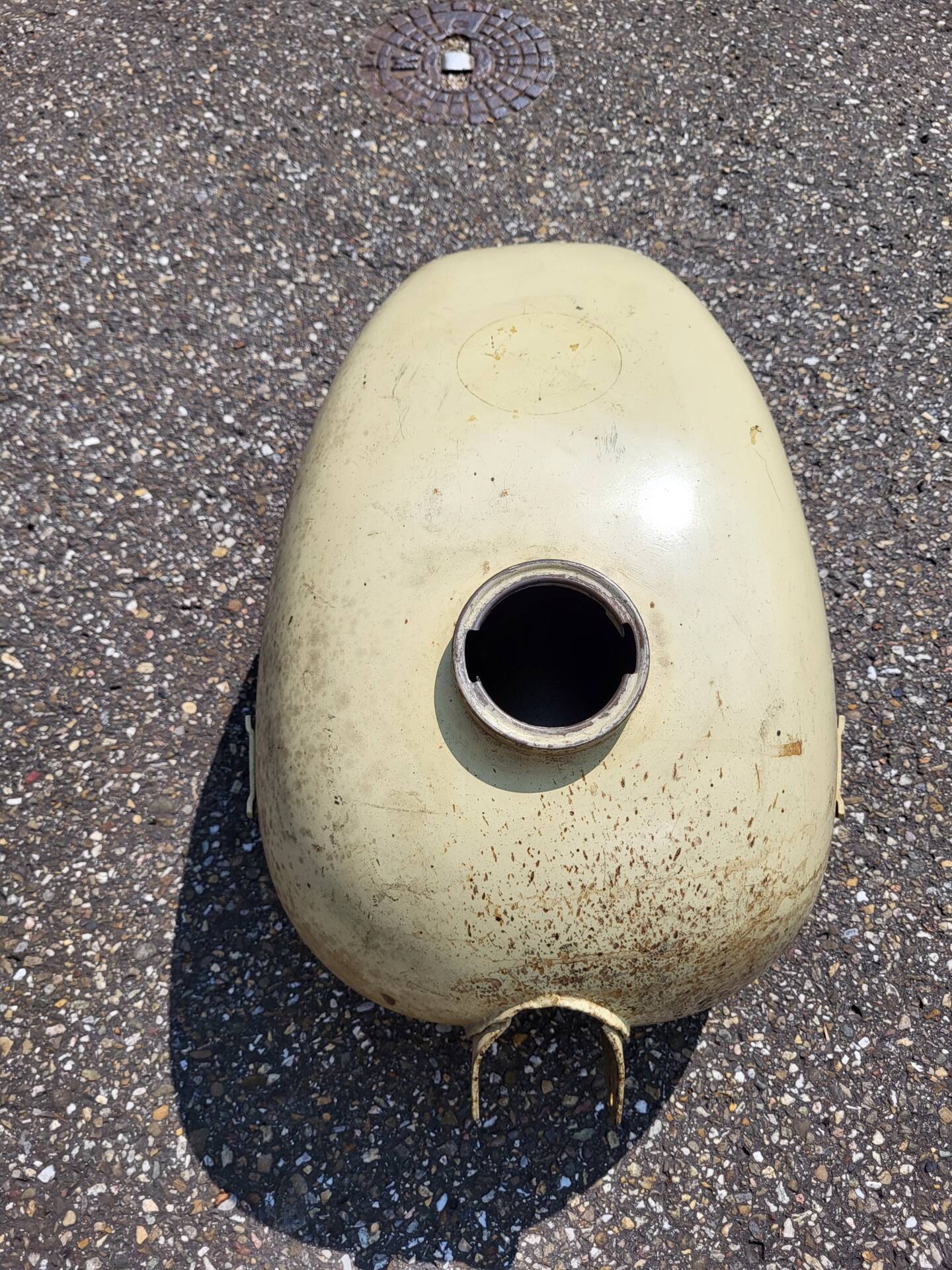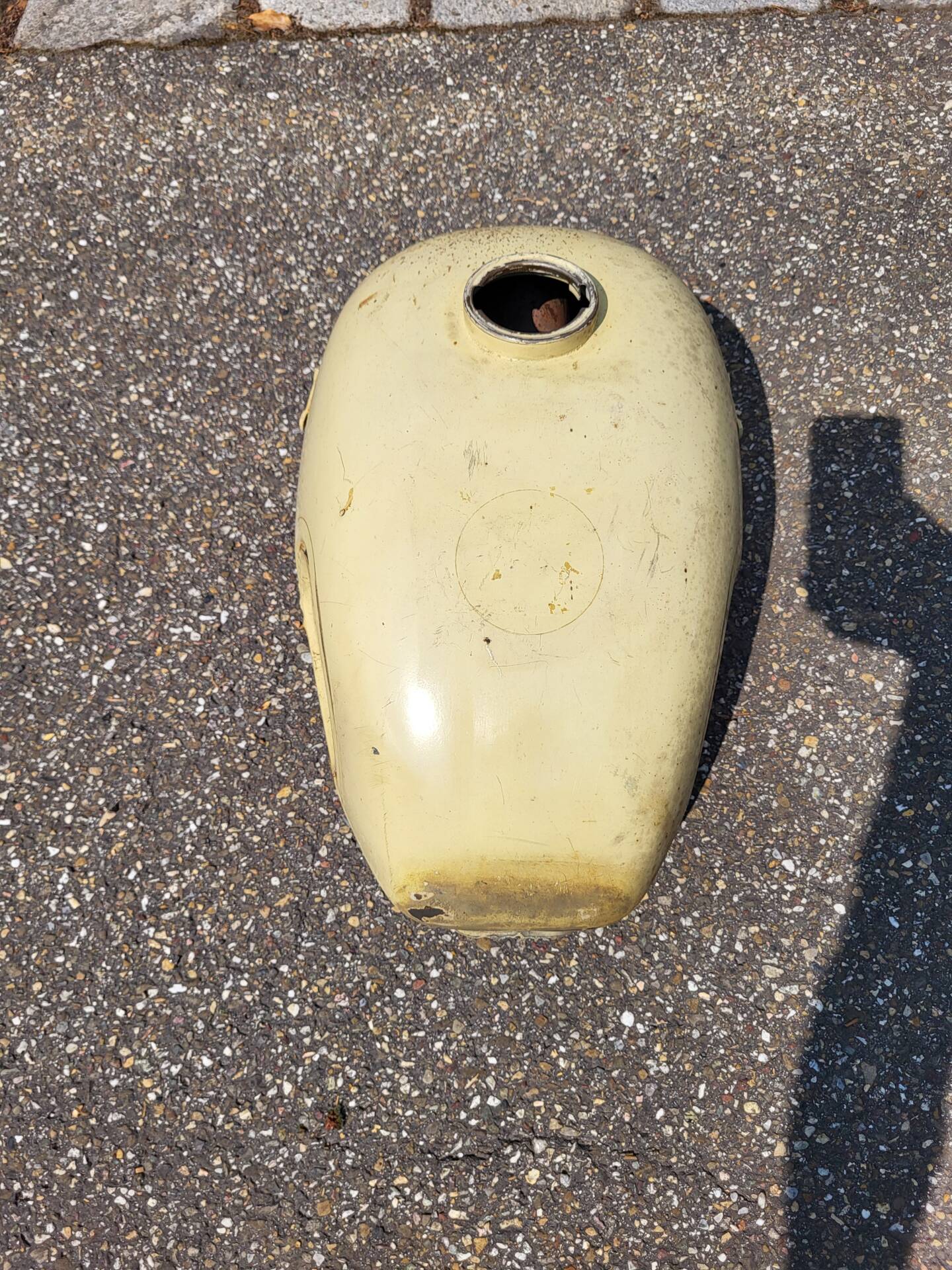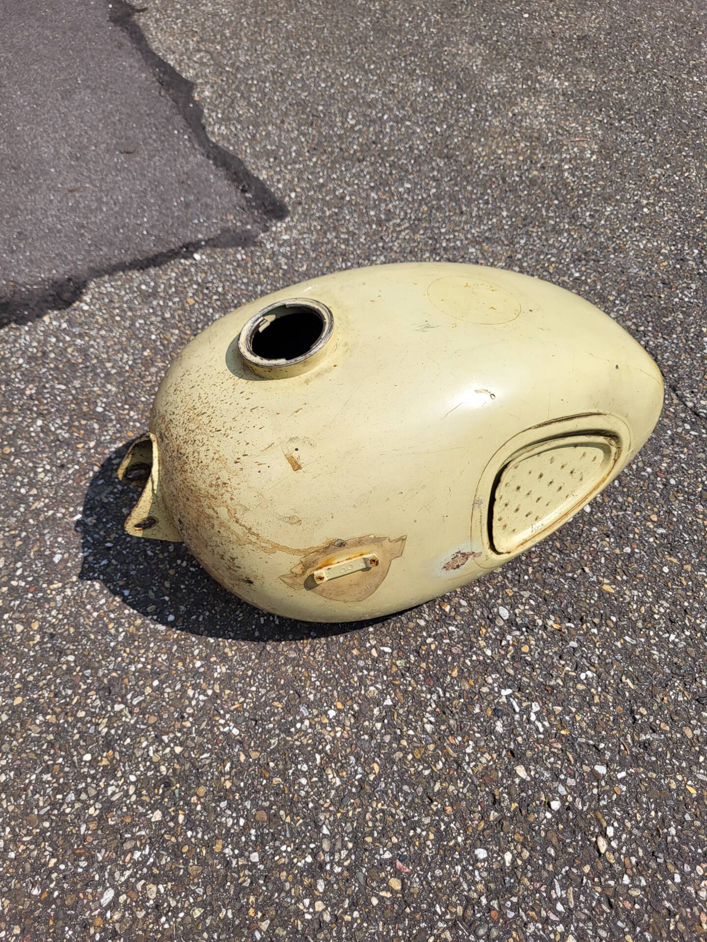Un réservoir de rechange pour le réservoir d'origine cabossé est disponible.