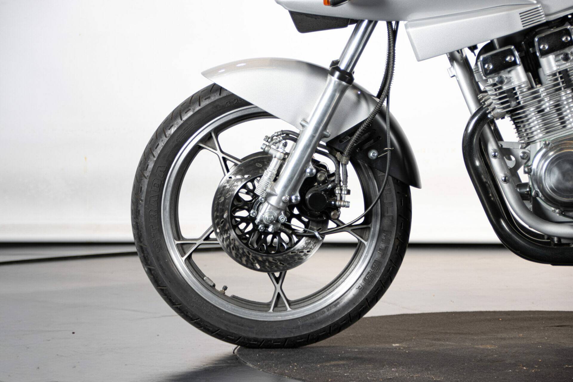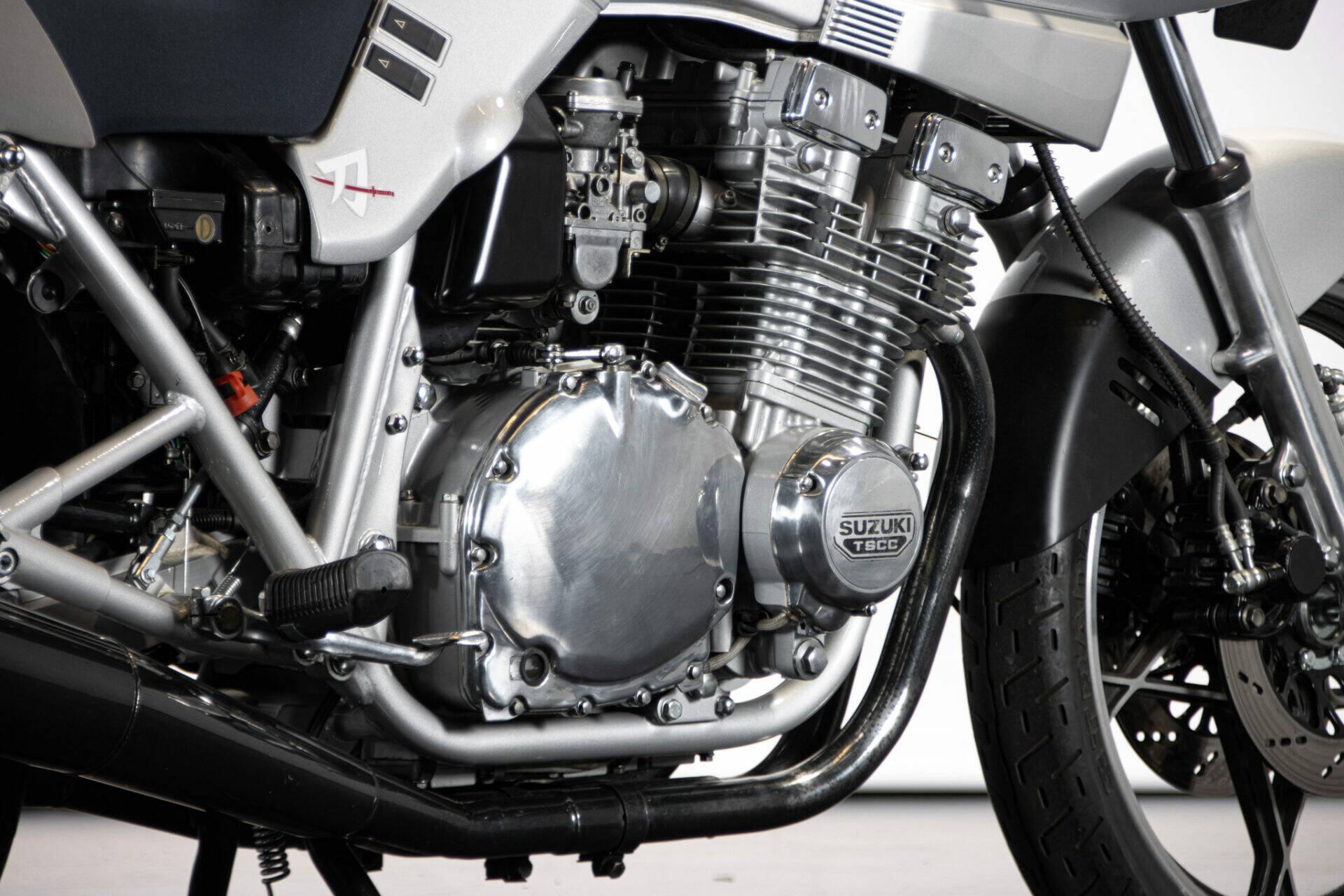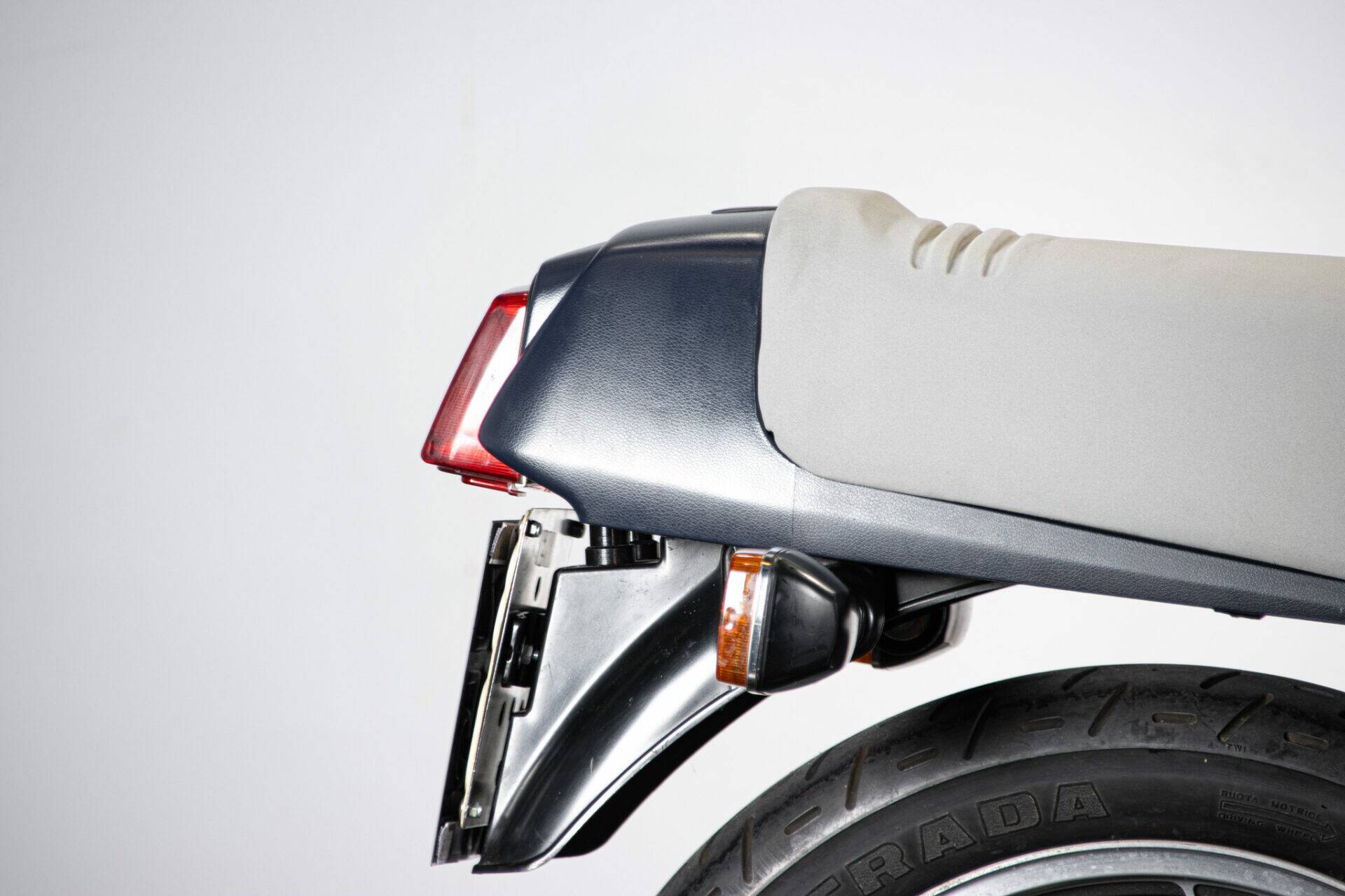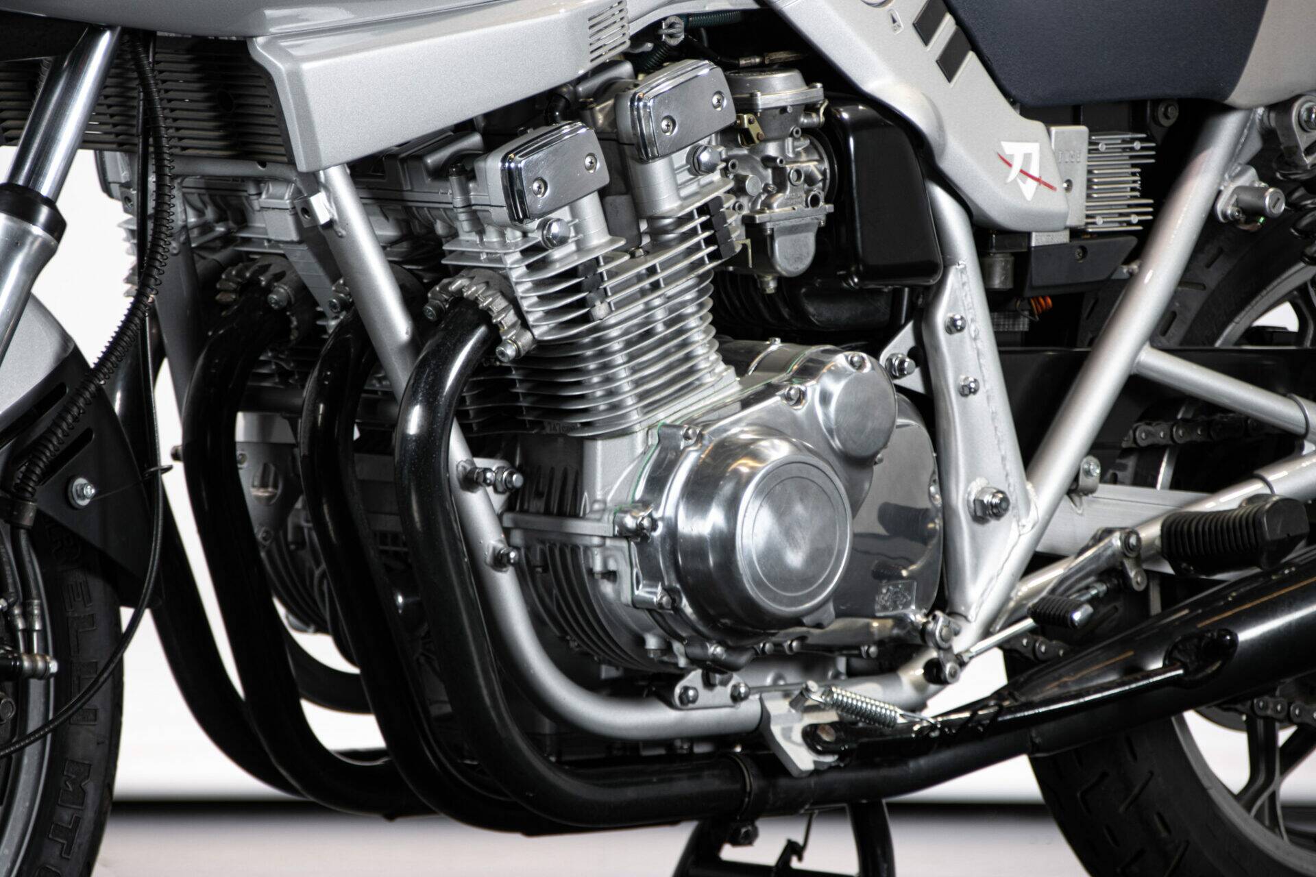 The Suzuki Katana (which takes its name from the Samurai swords) was unveiled at the Cologne Motor Show in 1980. Designed by car engineers, its very modern shape was innovative for its time. The headlight grille stands out, while the tank is coupled to the sides and the saddle, the seat is pushed far back and shaped to allow a sporting ride, while the handlebar is lowered and tilted. The 1982 Katana has greater power (111 hp at 8,500 rpm), making it an extremely fast bike. It has a four-cylinder, 16-valve, 1074 cc engine.