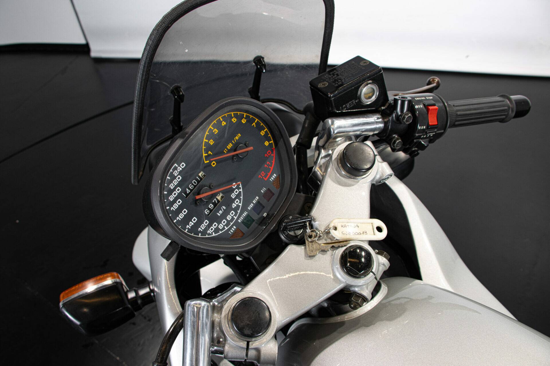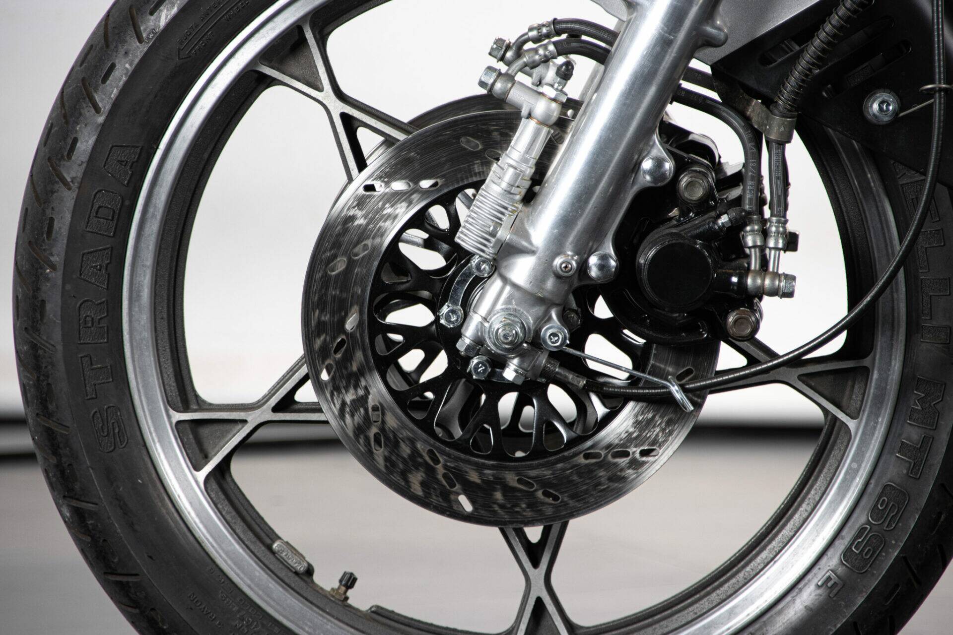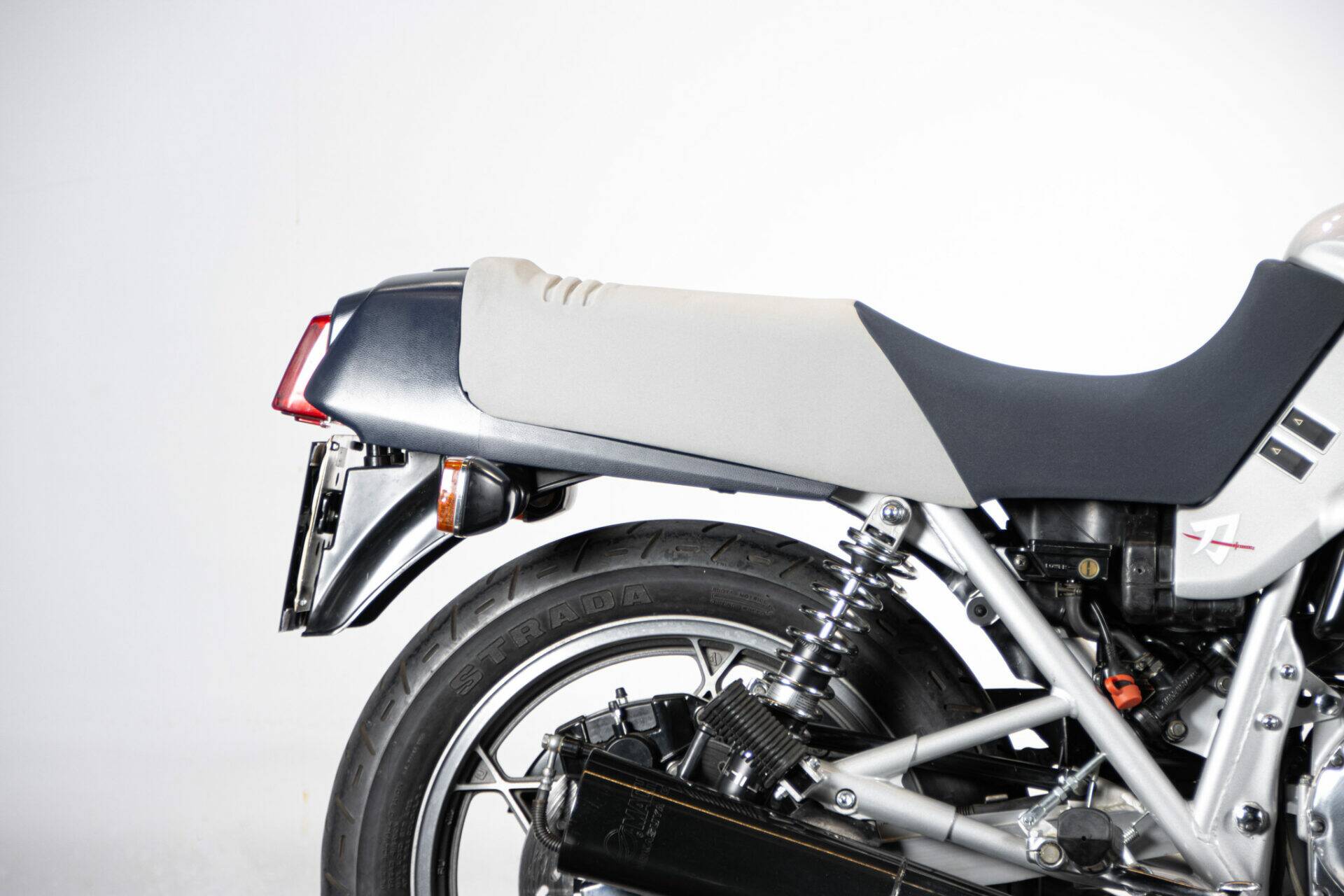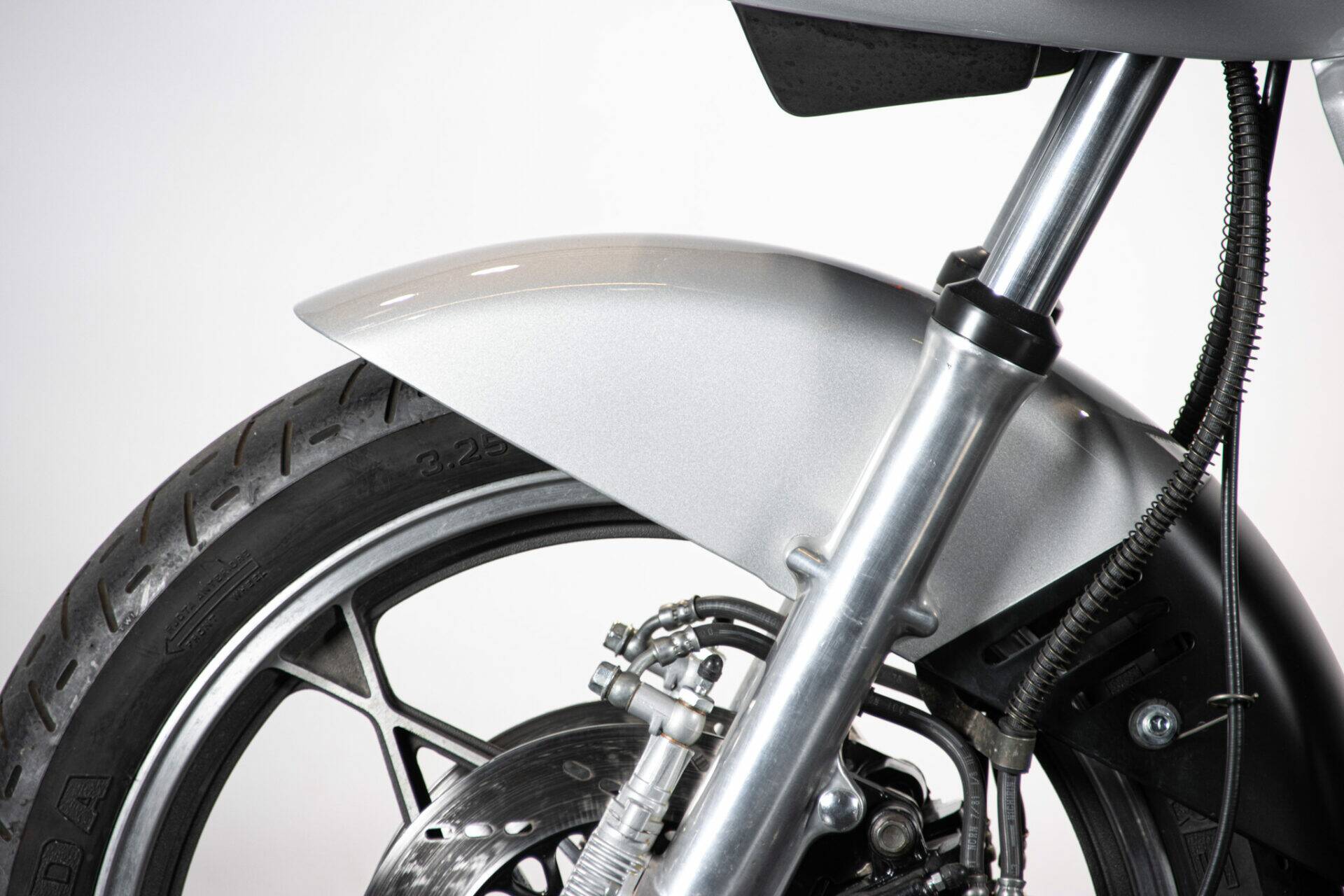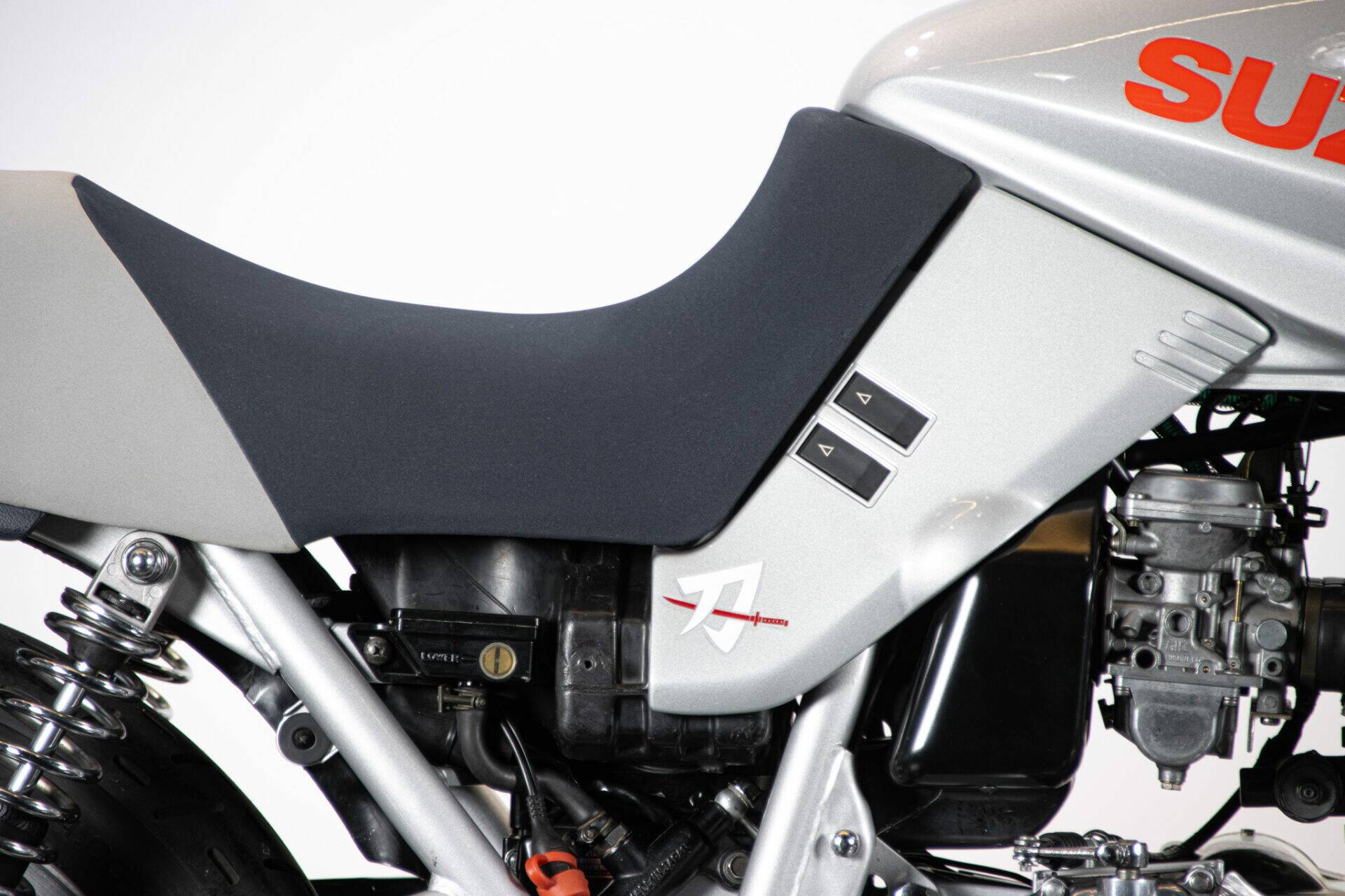 The Suzuki Katana (which takes its name from the Samurai swords) was unveiled at the Cologne Motor Show in 1980. Designed by car engineers, its very modern shape was innovative for its time. The headlight grille stands out, while the tank is coupled to the sides and the saddle, the seat is pushed far back and shaped to allow a sporting ride, while the handlebar is lowered and tilted. The 1982 Katana has greater power (111 hp at 8,500 rpm), making it an extremely fast bike. It has a four-cylinder, 16-valve, 1074 cc engine.