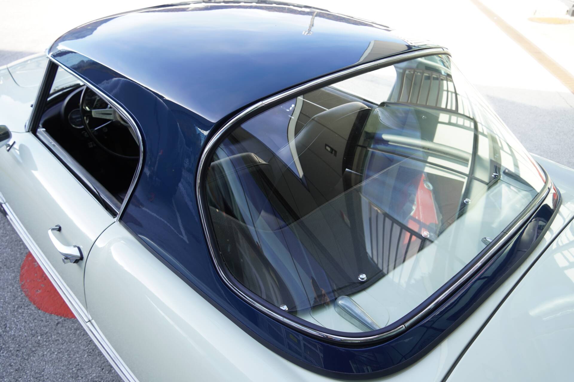Auf den Fotos zu sehen ist der Spider auch mit einem originalen Hardtop aus Stahl, von Touring. Dieses originale Hardtop ist sehr selten, wurde kürzlich restauriert, und in Dunkelblau lackiert. Es unterstreicht die Eleganz dieses wunderschönen Cabriolet zusätzlich.