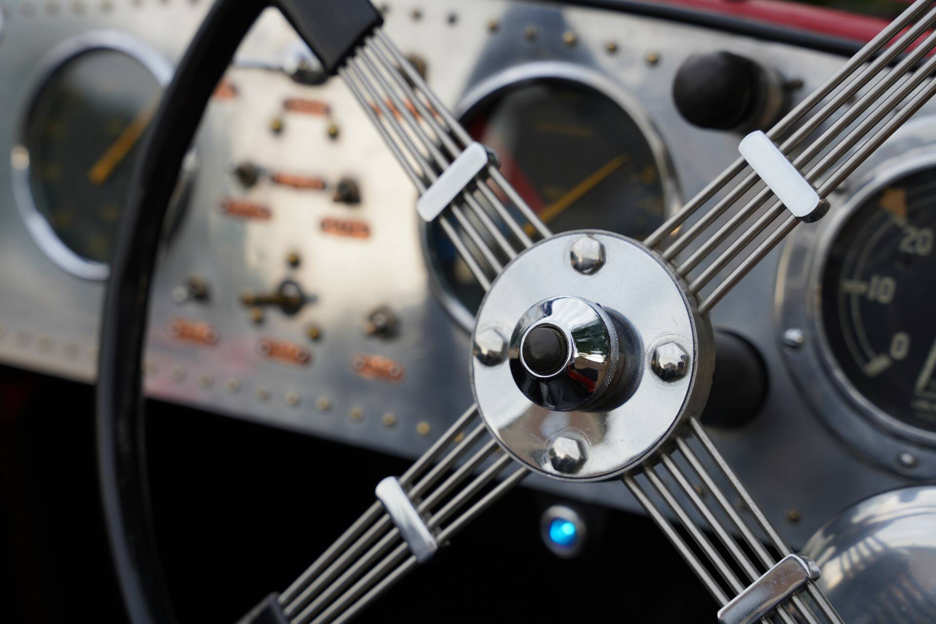 Under the hood lives the soul of the car—the 4.4-liter straight-eight Alvis engine. This powerplant, with its innovative valve cluster system, runs smoothly and powerfully, delivering impressive performance that still impresses today. The car proverbially goes like the devil! Of course, driving an Alvis with this power is an experience that is hard to match. Add to that the advanced technology and original details, and you're driving a car that offers tremendous pleasure. The car has a rich history of participating in hill climbs and other events, reinforcing its status as a true sports icon.