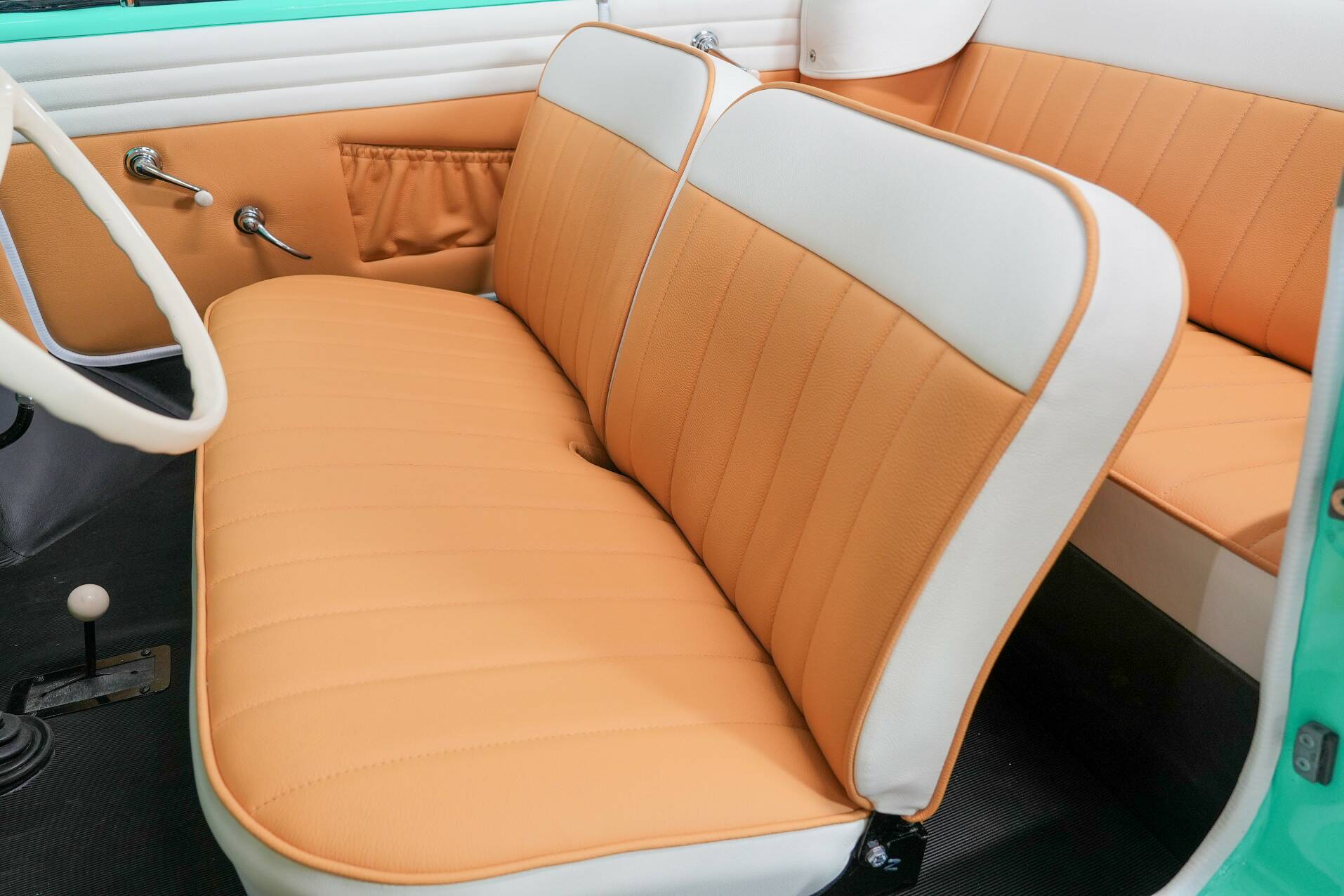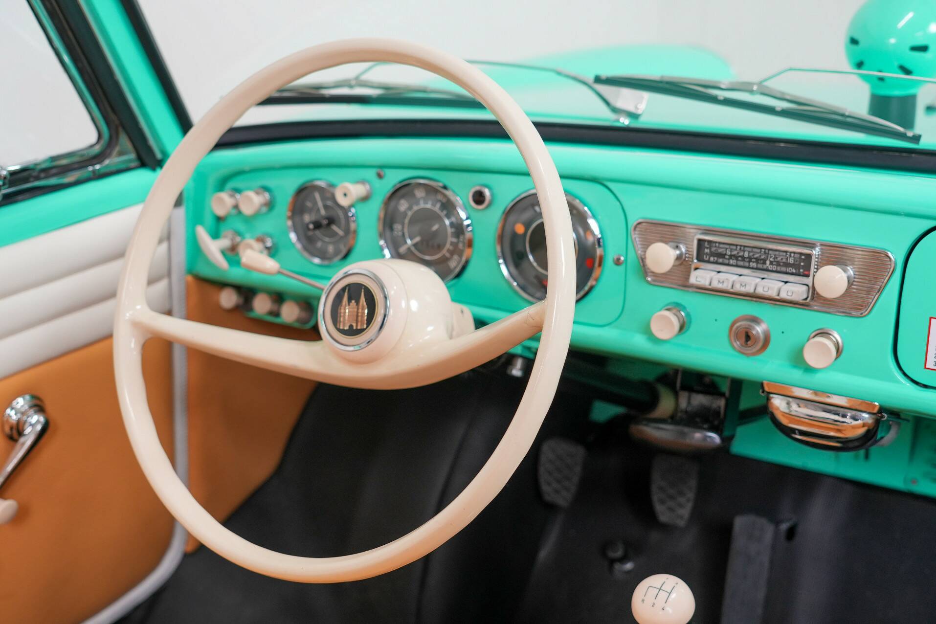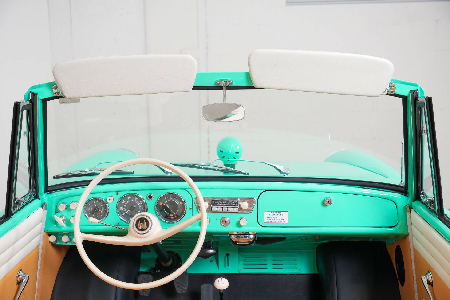 This beautifully restored example has been in the Netherlands for a long time and looks almost like new. The color is aqua green with a white and yellow interior. Ready to drive and sail.
