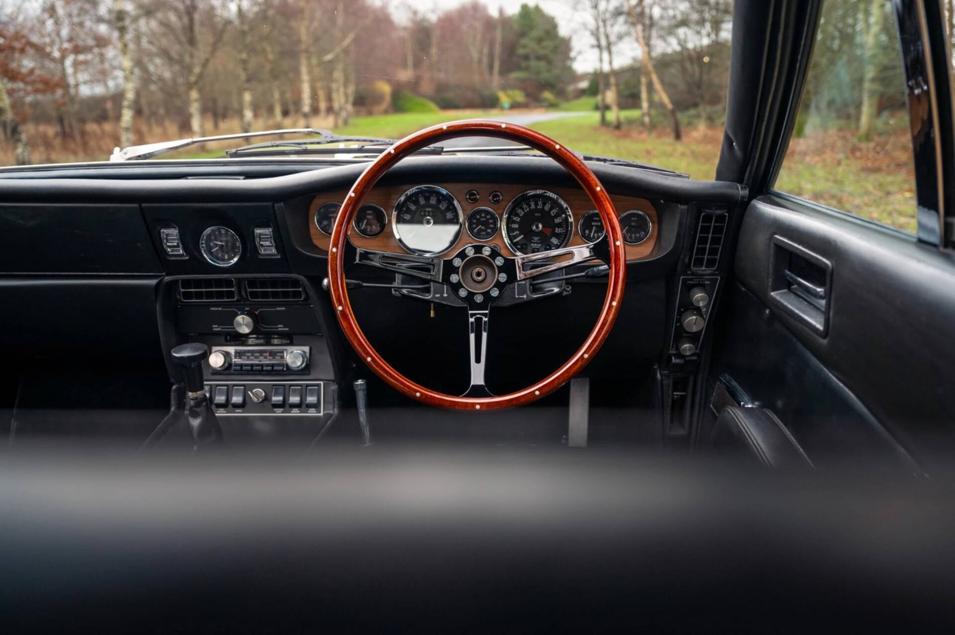 The DBS featured in the only James Bond film starring George Lazenby as the international superspy, ‘On Her Majesty’s Secret Service’, elevating it to the level of fame reserved for Bond vehicles only. This car has a unique connection to that film, with George Lazenby’s signature appearing in the glove box.