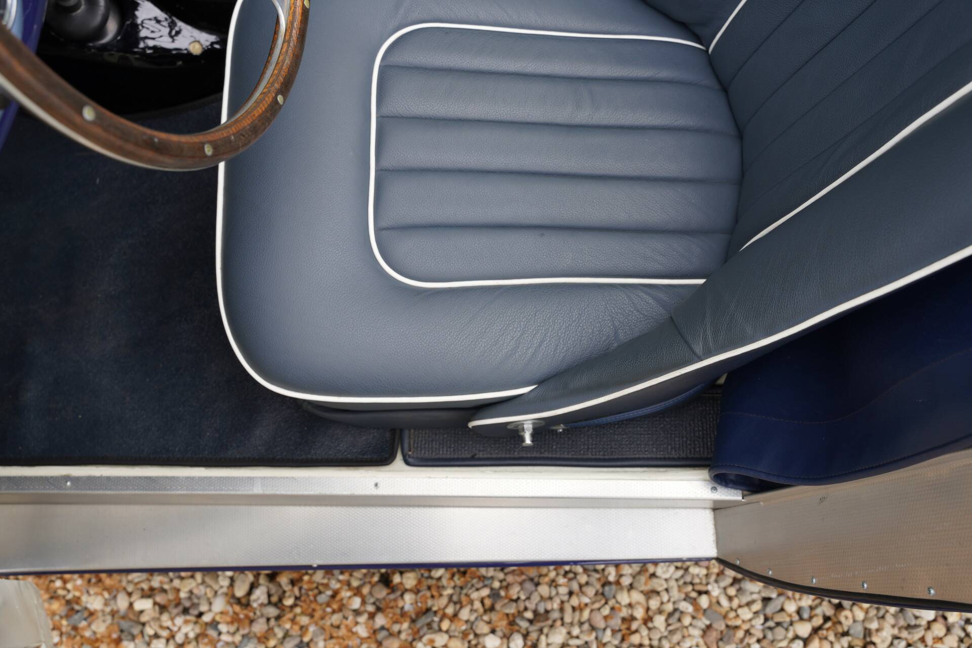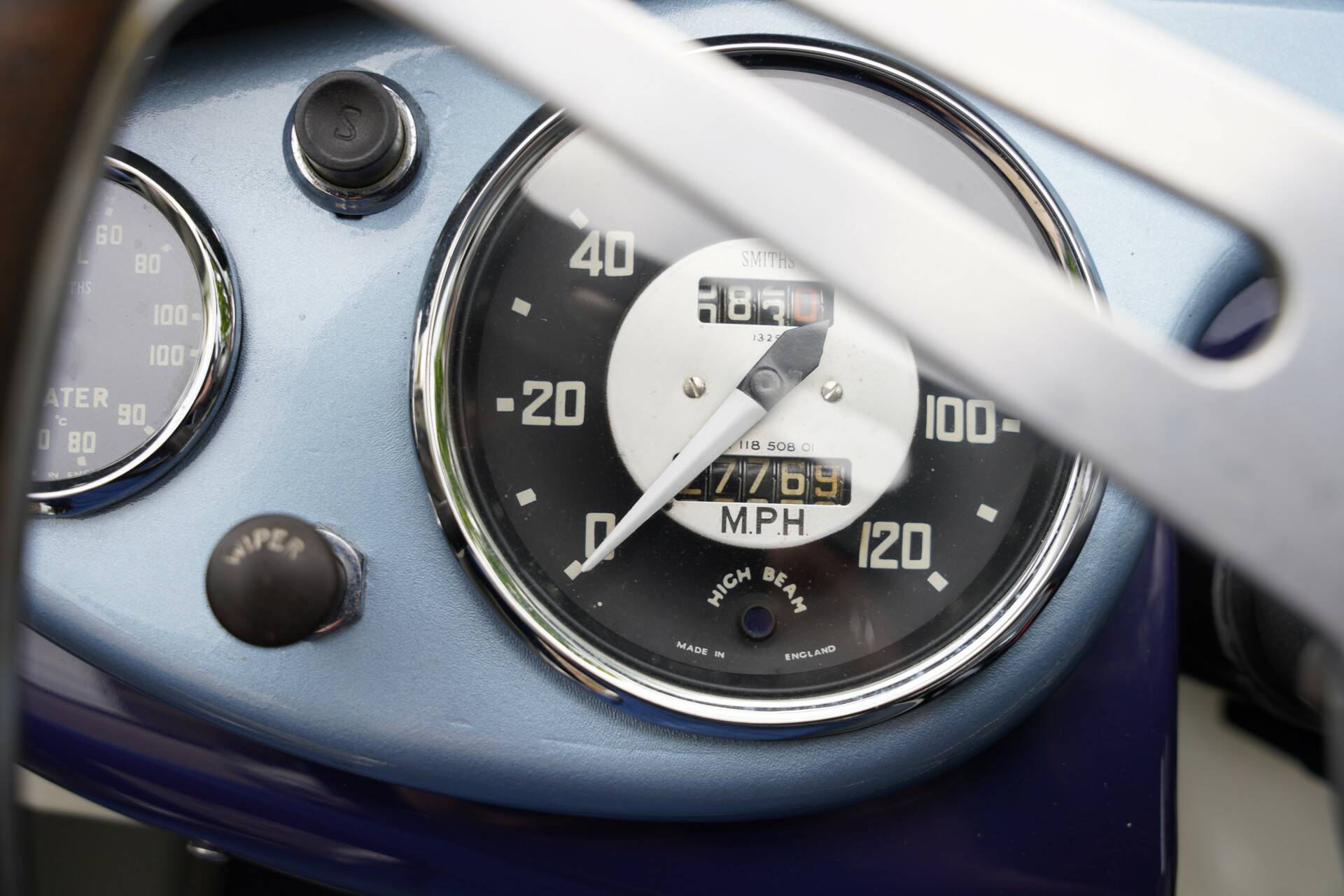 The restoration was carried out by a Healey specialist, with a focus on period-correct components like the rare Alfin aluminum brake drums, which were fitted back in the day specifically for racing. The rest of the braking system was also lightened, as every pound made a difference on the track.