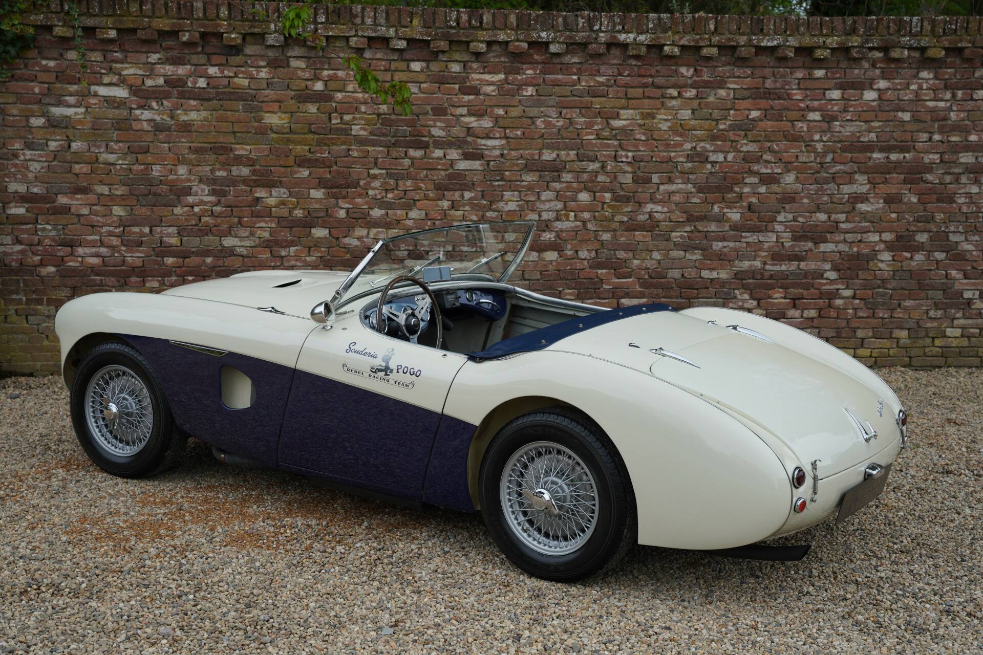 Austin Healey 100/4 "SCCA-racer '53-'64" PRICE REDUCTION! Oldest Healey race car in the world believed by international AH connoisseurs, Fully sourced history by Jeff Knudsen and others, "Lost and found" - Barn-discovered in 1994 in Columbia-USA, Periodically correct modifications such as Alfin aluminum drum brakes, Restored by AH specialist, Fully documented with photos