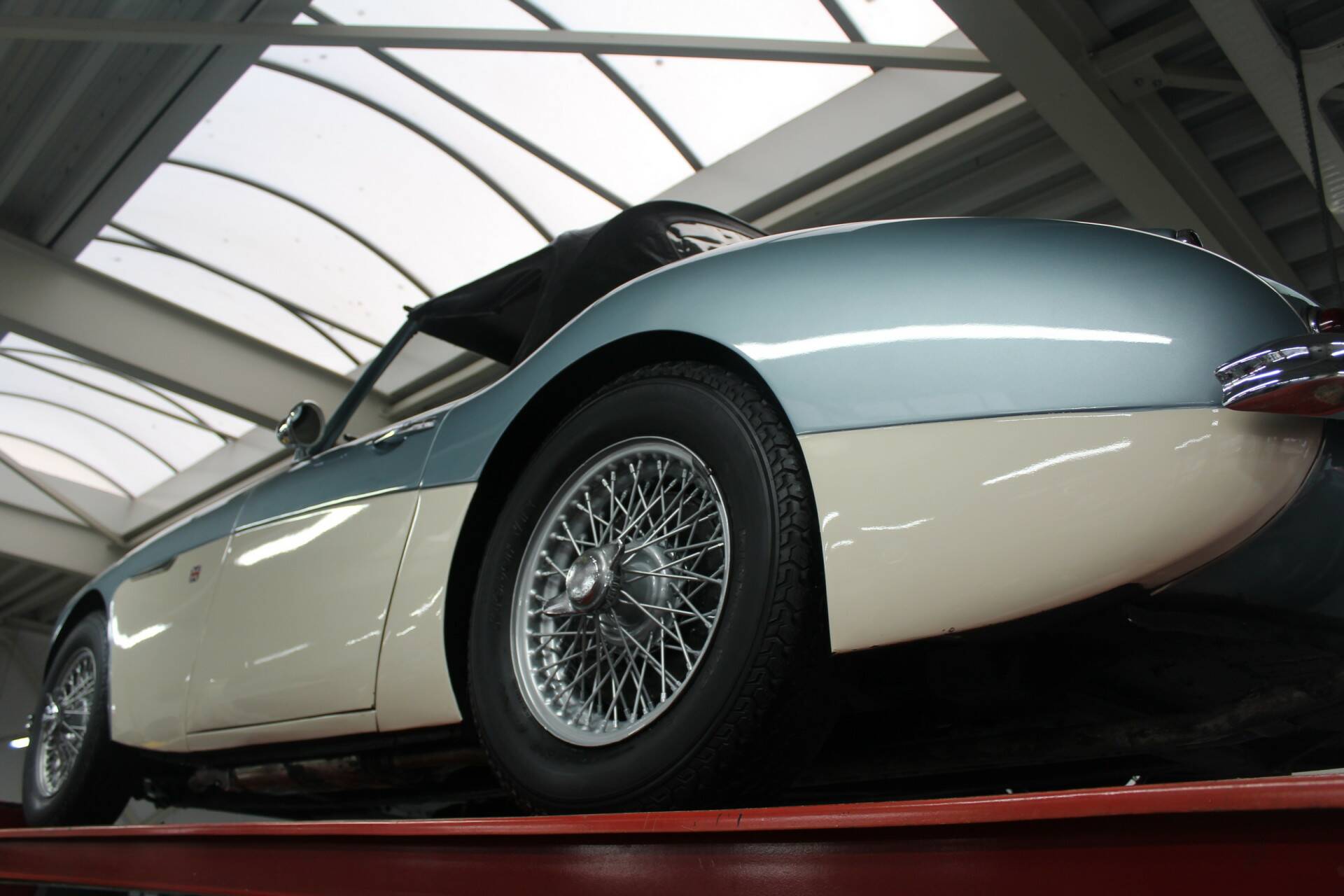 The Austin-Healey has been regarded since its debut as one of the purest British sports cars ever built. And that unmistakable feeling comes alive the moment you see this Healey in its iconic livery: Ice Blue over Old English White. A combination that has become legendary in the classic-car world and remains every bit as charming today as it was in the 1960s.