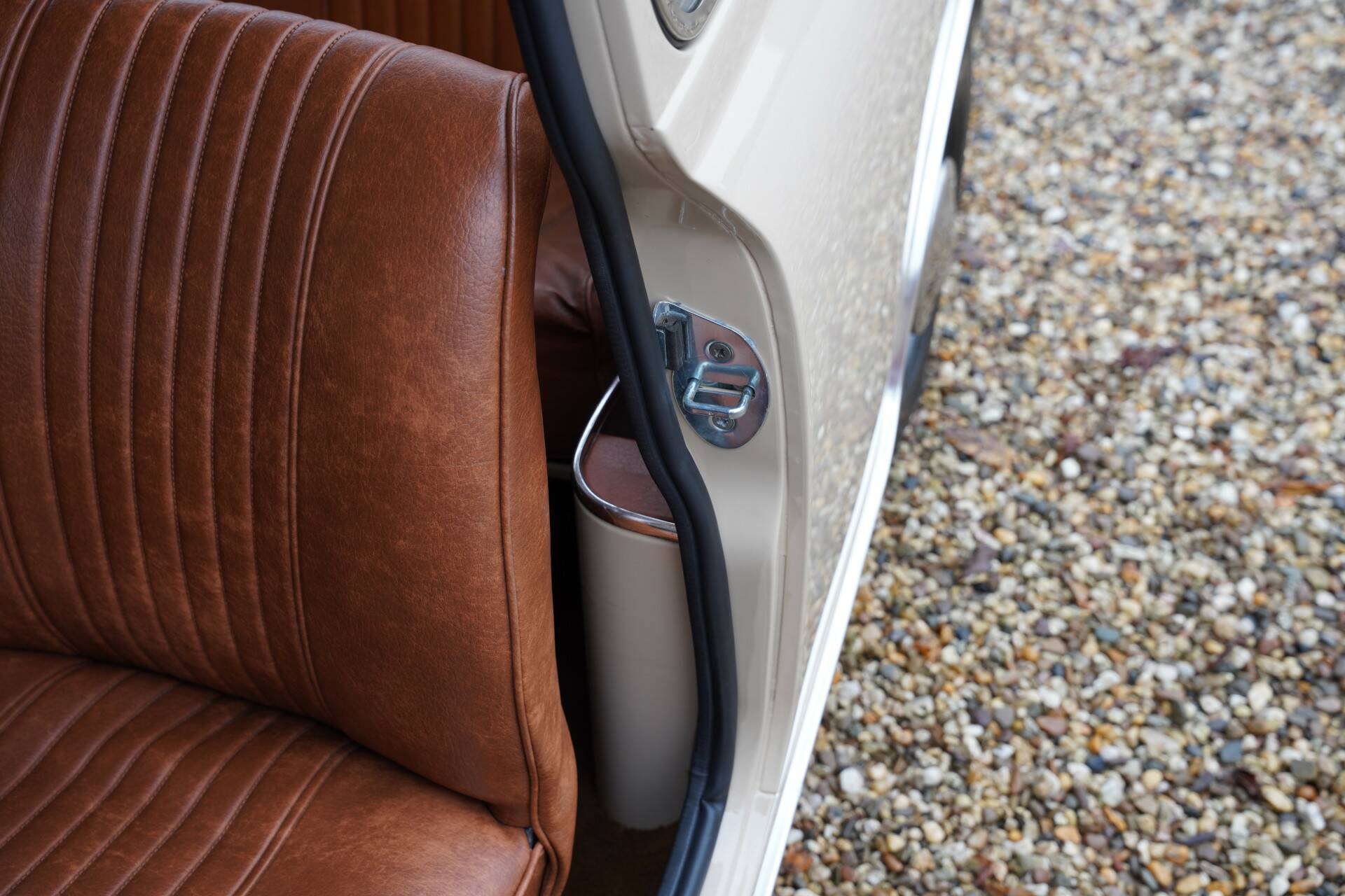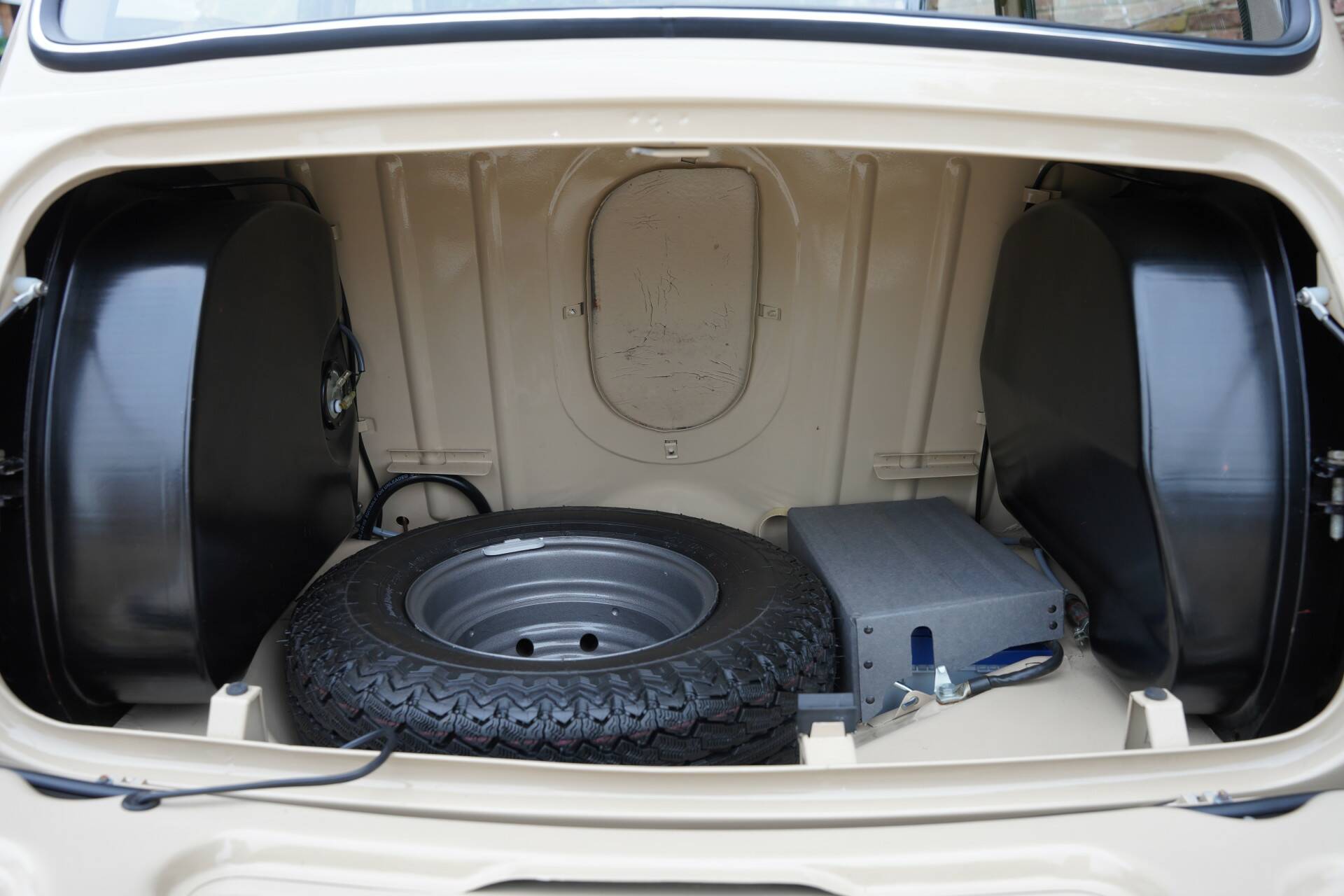 The entire car is immaculate. The exterior has been resprayed in the original color with which this Mini was delivered in 1970: Bedouin. With sleek sheet metal and beautiful chrome parts, the exterior is a beauty! The same goes for the interior. The original upholstery color, Autumn Leaf (what a beautiful name), is stunning, and everything has been completely renewed. As a result, the interior also looks magnificent.