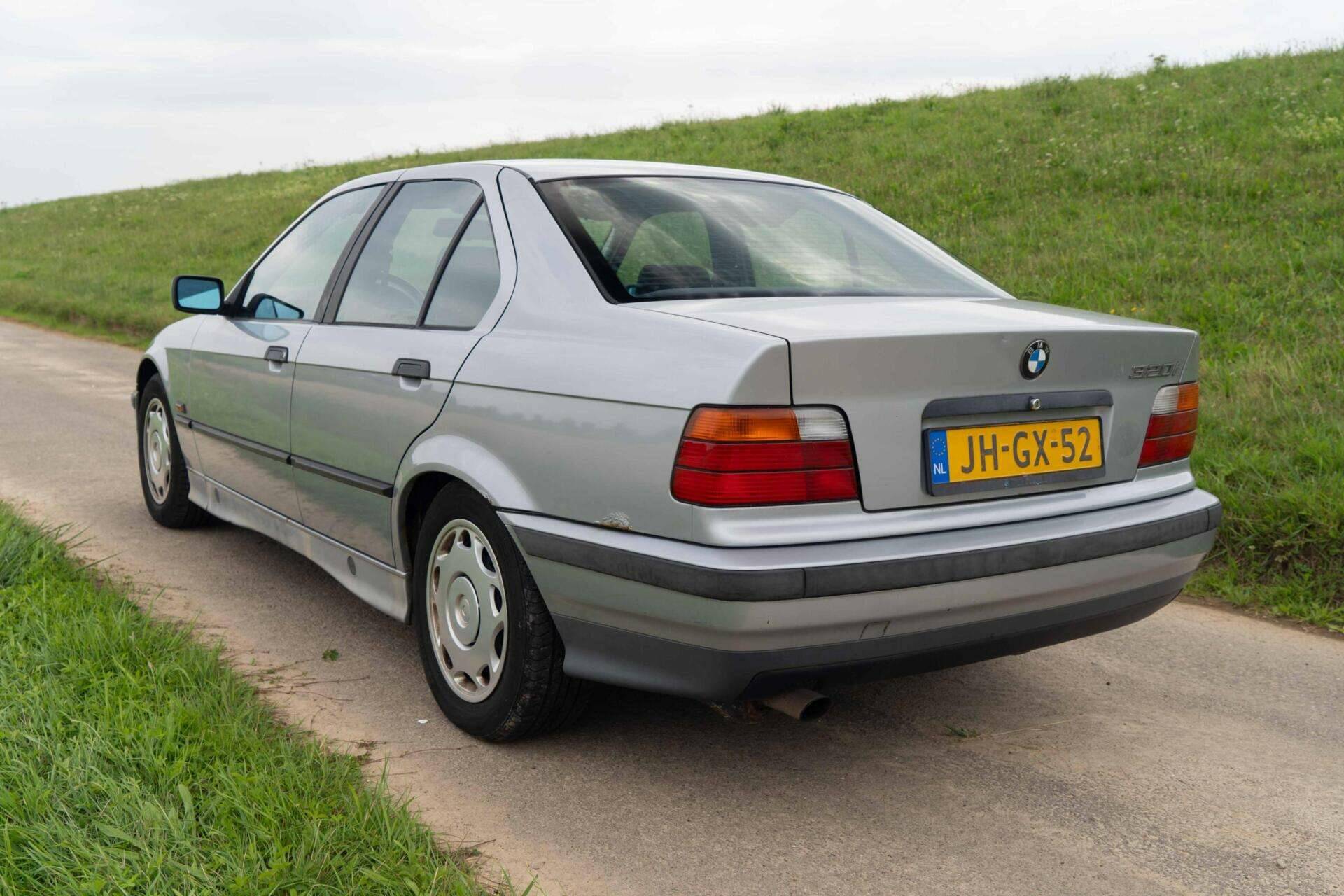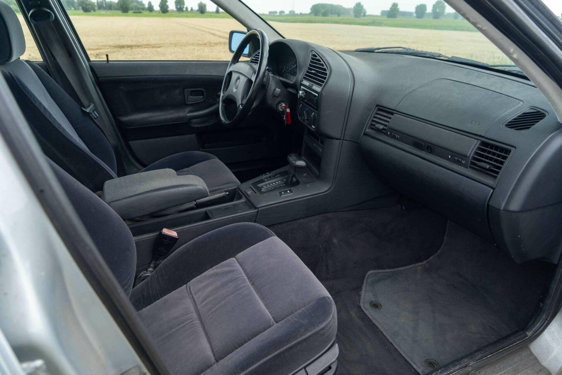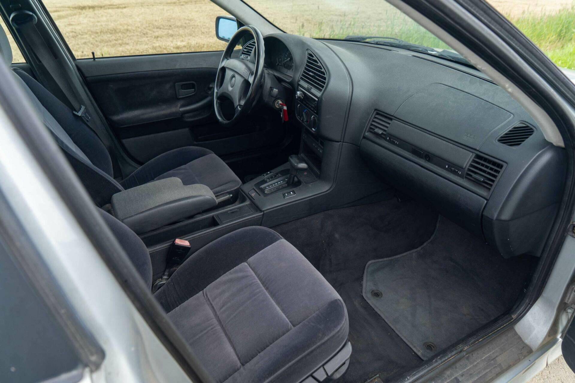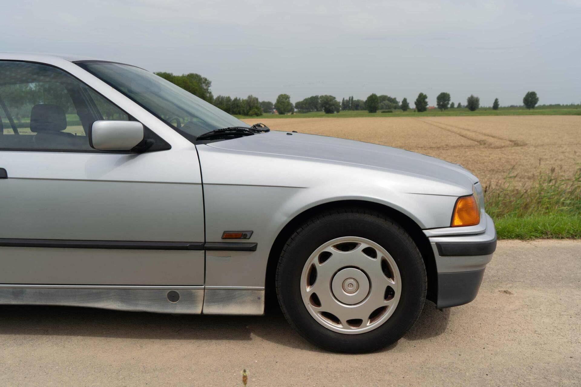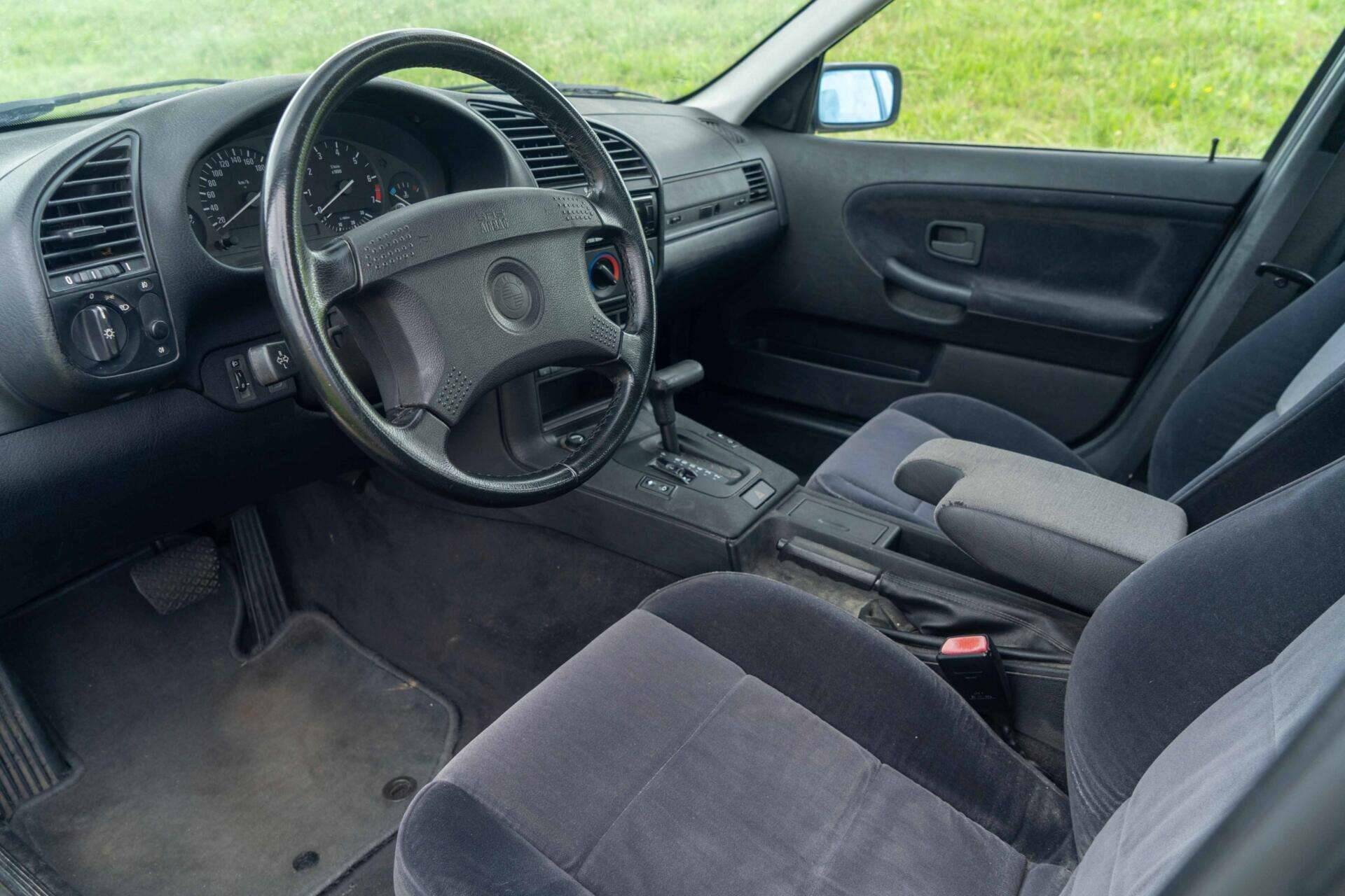 Deze BMW 320i uit 1994 vertegenwoordigt de praktische charme van de E36-generatie, bekend om zijn evenwichtige rijgedrag en strakke design. De afwerking in metallic grijs behoudt de no-nonsense jaren 90-uitstraling, hoewel er overal tekenen van ouderdom en slijtage zichtbaar zijn.