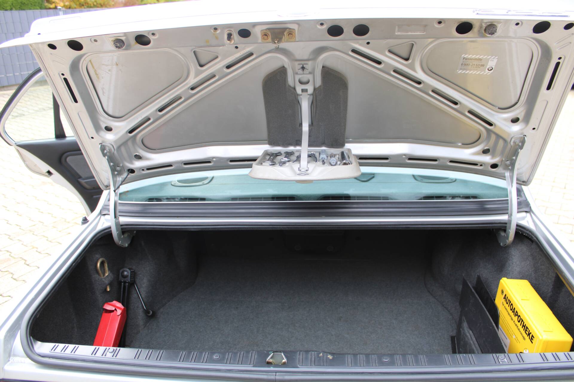 Der Kofferraum ist sauber, sogar das originale Bordwerkzeug ist noch vollständig. Was in der Regel teils oder komplett fehlt.