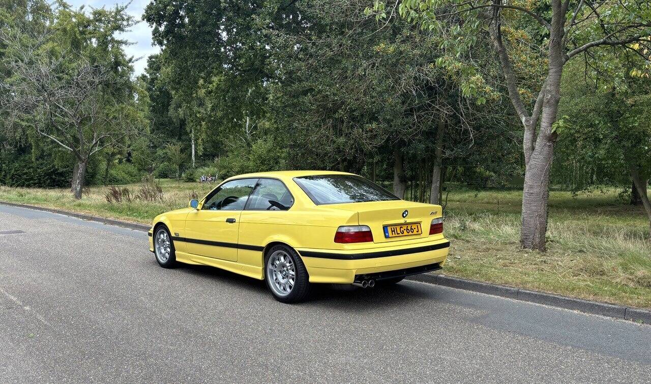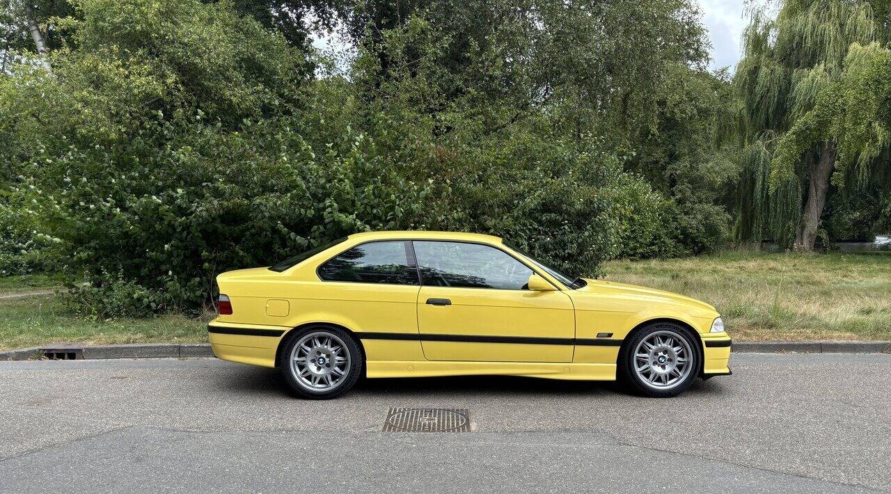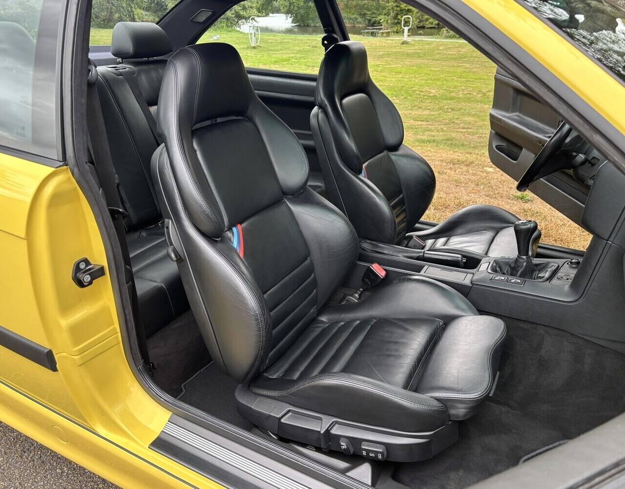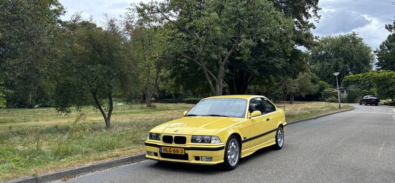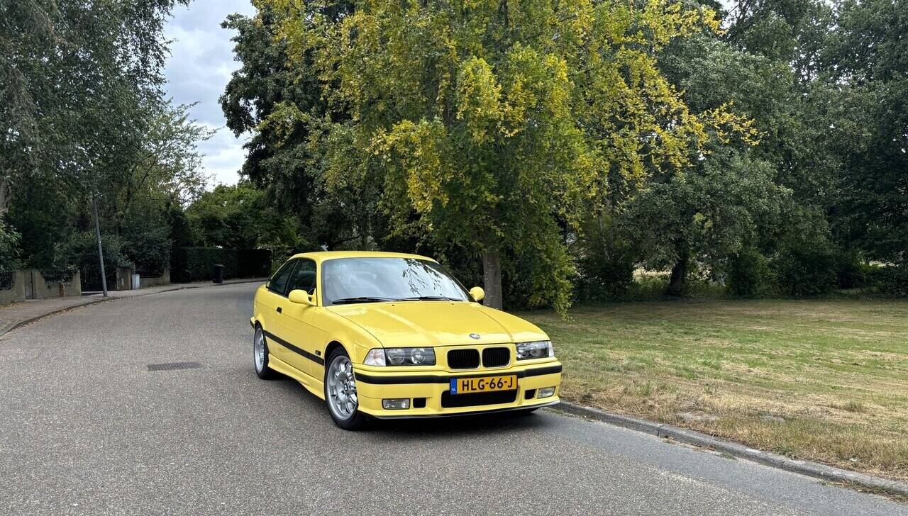 De buitenzijde is zeer strak, schadevrij en alle naadjes zijn correct. De auto is uitvoerig gepolijst en gepoetst en de lak is super glad. De body staat voor 90% in de originele lak. Dakargelb is de M3 introductiekleur, dus deze kleur heeft toen in alle autobladen gestaan. Sowieso zijn er maar een paar "echte" E36 M3 kleuren en dat zijn Dakargelb en Estorilblau. Dat zijn nu de geliefde en gezochte kleuren. De originele M3 velgen zien er uit als nieuw en zijn voorzien van de correcte Michelin Pilote Sport banden. Op de buitenspiegels zitten nog de originele stickertjes uit de fabriek!