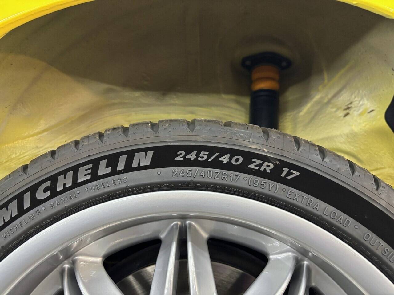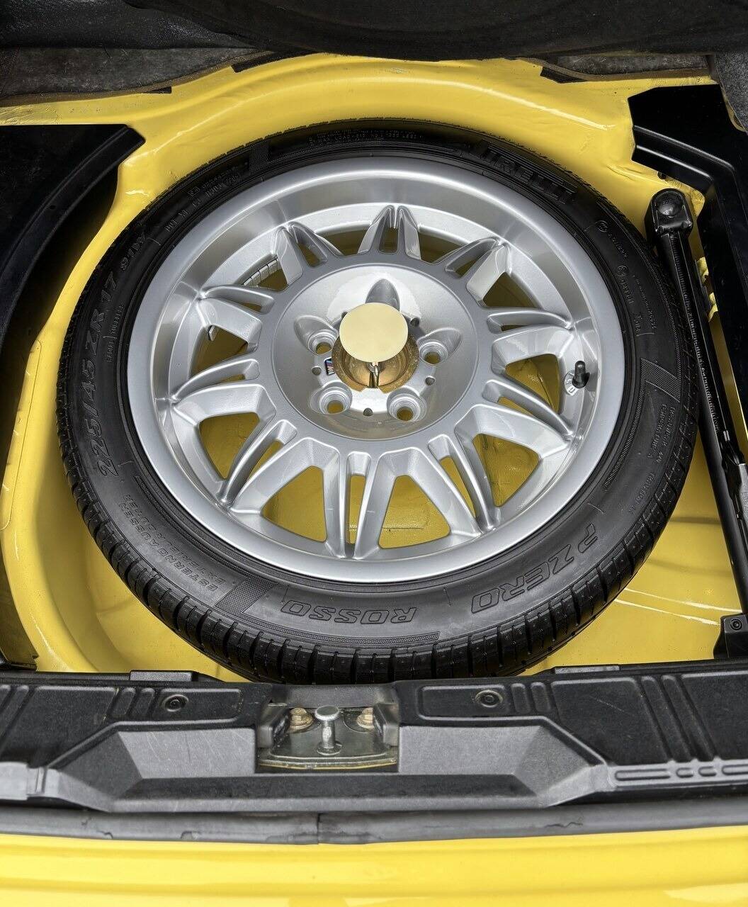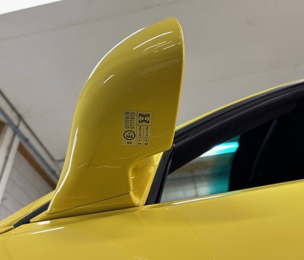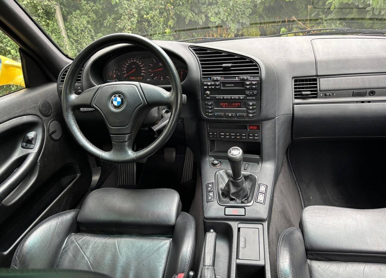 De buitenzijde is zeer strak, schadevrij en alle naadjes zijn correct. De auto is uitvoerig gepolijst en gepoetst en de lak is super glad. De body staat voor 90% in de originele lak. Dakargelb is de M3 introductiekleur, dus deze kleur heeft toen in alle autobladen gestaan. Sowieso zijn er maar een paar "echte" E36 M3 kleuren en dat zijn Dakargelb en Estorilblau. Dat zijn nu de geliefde en gezochte kleuren. De originele M3 velgen zien er uit als nieuw en zijn voorzien van de correcte Michelin Pilote Sport banden. Op de buitenspiegels zitten nog de originele stickertjes uit de fabriek!