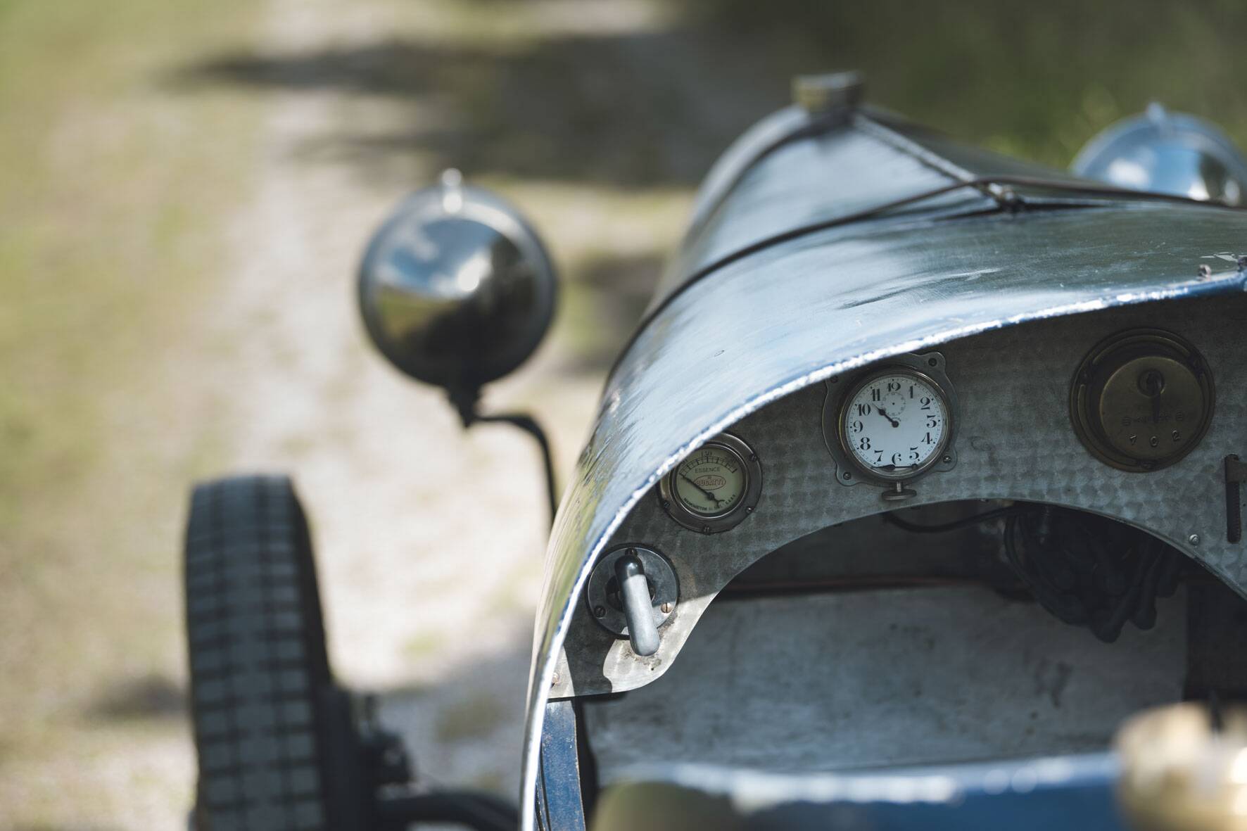 This particular Bugatti Type 30 consists of a genuine chassis, supposedly one of three ordered by wealthy Argentinian driver Martin ‘Macoco’ de Álzaga and according to the Bugatti register, is the car that was driven by Pierre de Viscaya at Indianapolis in 1923. The three Type 30s ordered by Martin de Álzaga, Chassis # 4013, 4014, and 4016, were part of a batch of five Bugattis that were all raced at Indianapolis in 1923.