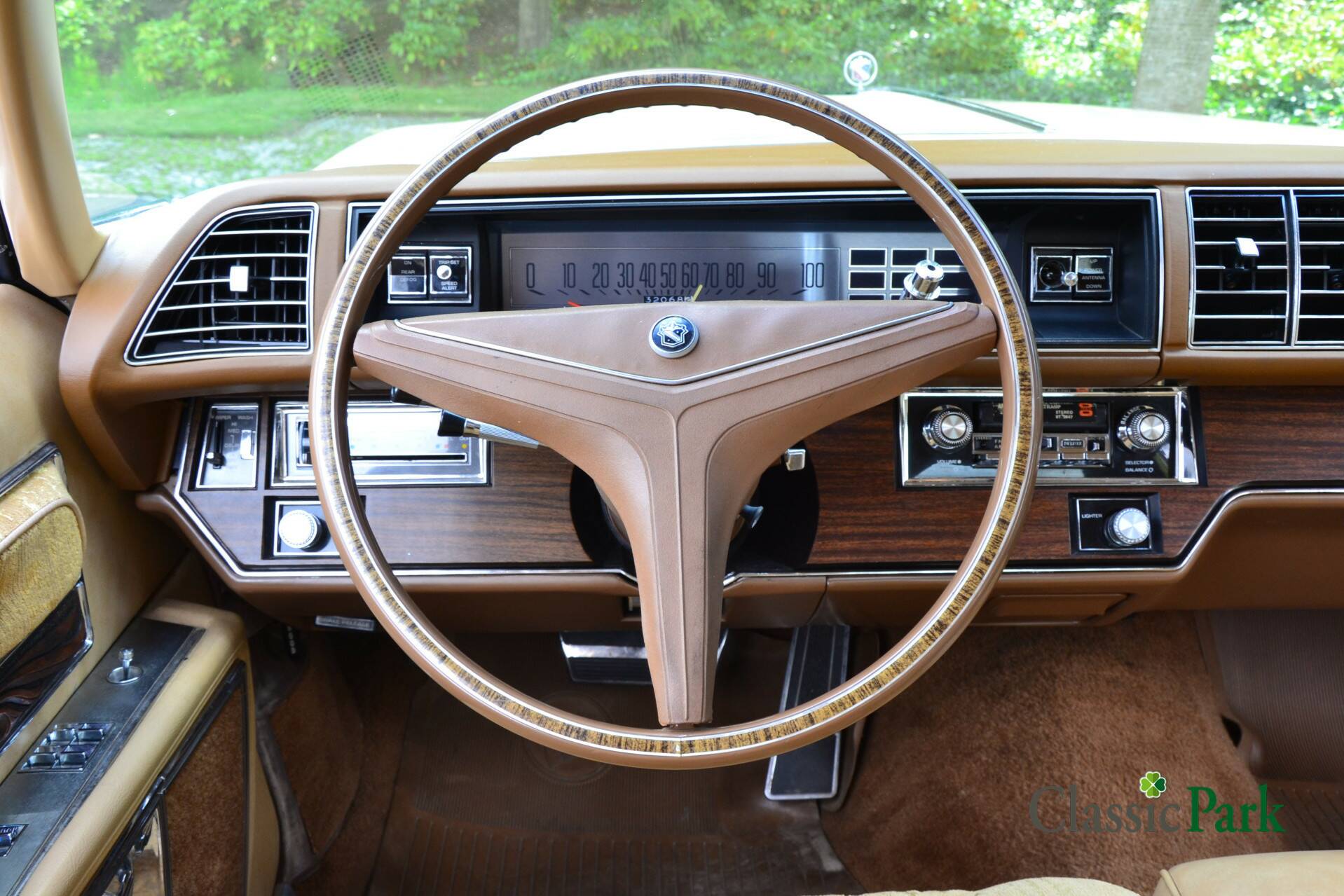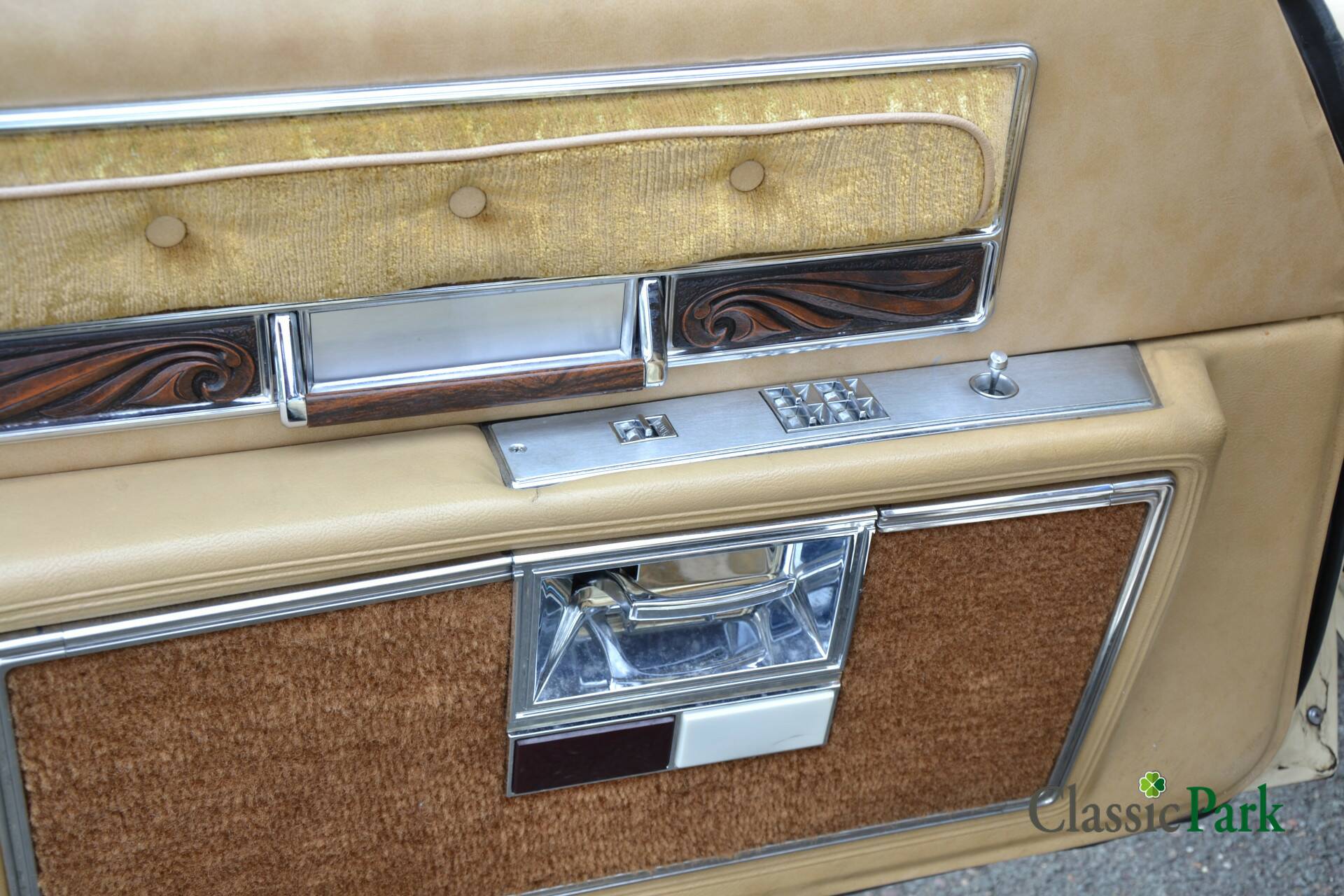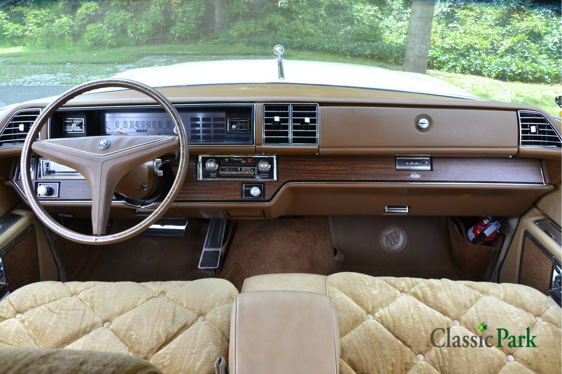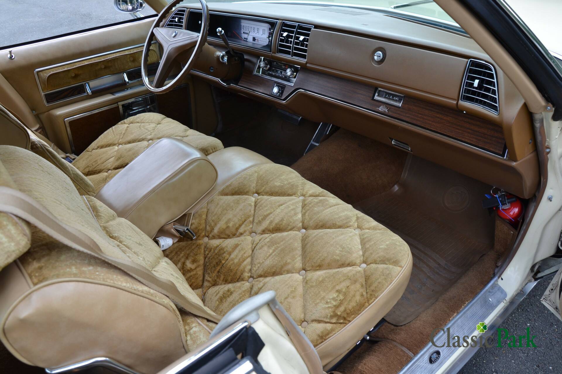 This Buick Electra at Classic Park amplifies that ’70s feeling with its beige exterior, warm brown velour interior accented with wood trim, and a beige vinyl roof. The bench-style front seats, strong power steering, and ribbon-style speedometer all combine into a harmonious, elegant package. Comfortably, it can carry up to six passengers.