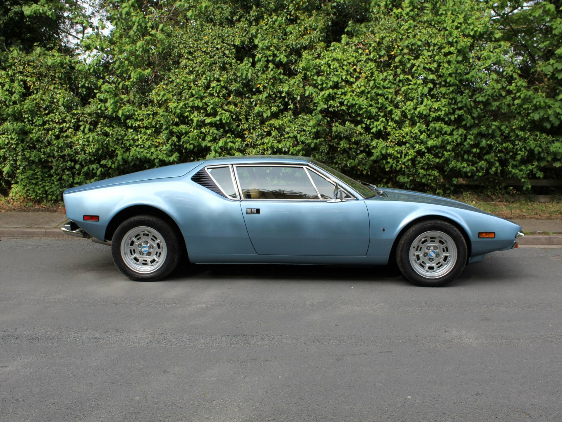 This is an incredibly rare, original UK RHD home market example that we know incredibly well having carried out a huge level of work on the car back in 2020-2021. We are also pleased to confirm this was the De Tomaso Geneva Motor Show Car, confirmed by paperwork supplied with the car.. This is simply unrepeatable for so many reasons, not only being unique as the Geneva Motor Show Car but one of the very few RHD UK examples ever produced. Finding a RHD De Tomaso Pantera GTS is difficult, there are very few in existence and making this opportunity even more unique is the fact it has covered less than 35,000 miles from new and is a low ownership car with fantastic history. Over 2020 and 2021 the De Tomaso has been put through a refurbishment program costing over £80,000 and the car is truly exceptional. It’s a car that has been owned by several regular customers of ours, most recently selling to a client in Sonning who has spent in the region of £20,000 on major brake and suspension upgrades, and new wheels (originals with the car too). The Pantera GTS was purchased new by a North London Building Contractor, Mr Barr who owned the car from 1973 to 2002. Mr Barr covered little over 20,000 miles in 29 years of ownership, and in 2002 it sold the car to the second owner who used the car for various shows and events, selling it in 2009 with 26600 miles from new. The De Tomaso sold to one of our long-standing customers who owned the car until 2020 covering over 6000 miles and spending in the region of £20,000 on maintenance work and upkeep over the eleven years. The car arrived with us for a program of re-commissioning work and prior to completing the work, we sold the car to one of our long term clients who wanted to take this very correct car back to an exceptional standard.First of all the 350BHP Cleveland Ford 5.7 V8 engine and five speed ZF gearbox were removed from the car. The engine was completely stripped down and treated to a full rebuild to include an upgrade stroker kit, main and big end bearings, new crankshaft, new rods, new pistons, re-bored, full overhaul of cylinder heads with bigger valves, new carburettor, balanced flywheel, and new clutch. The braking system was overhauled to include new brake calipers, the suspension rebuilt, and the cooling was system was overhauled to include a new water pump. Driveshafts were overhauled, universal joints replaced, the alternator and starter motor replaced, and thousands of pounds spent on rebuilding the air-conditioning system to include a new A/C pump and rebuilt compressor.Whilst the engine and major mechanicals were removed from the De Tomaso, the external bodyshell was stripped down and fully prepared for a complete full re-spray due to its very original looking, faded paintwork. The De Tomaso was fully re-painted in its original colour, the engine bay compartment fully painted ahead of re-installation of the engine, and the alloy wheels re-furbished before a new set of tyres were fitted to the car. The bumpers were sent away for triple plate re-chroming, and the interior then fully re-trimmed in top quality leather. The original seats were re-trimmed, as were the door cards and kick panels, the carpets replaced and a new dash top trimmed. The centre console was all stripped down and re-trimmed, and many internal items such as switches re-furbished to ensure a beautiful interior finish. On completion of all the work, the car was MOT tested and then put through a detailing program that included stripping and re-painting the top engine cover, stripping and re-painting the frames to the fans and radiator, re-furbishing and painting the horns and re-painting the boot cover at the front of the vehicle. The stunning rebuilt engine was detailed including the various brackets and inner arches and the underside cleaned and detailed to a high standard. Since then the De Tomaso has had careful use and has been kept in exceptional condition.