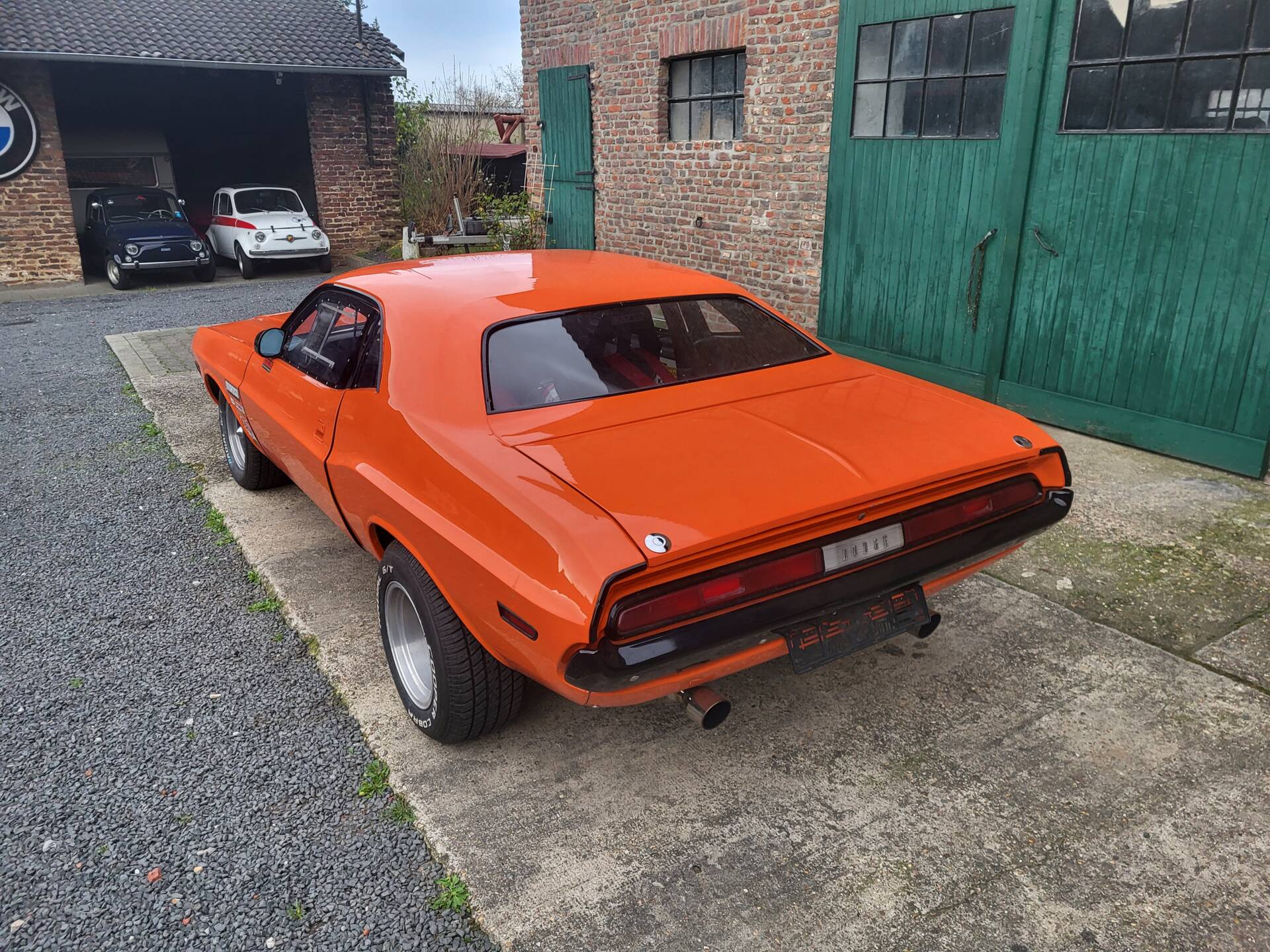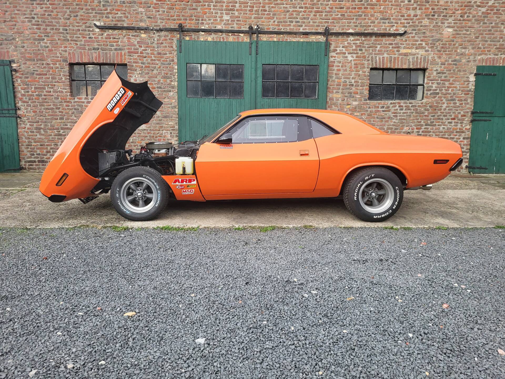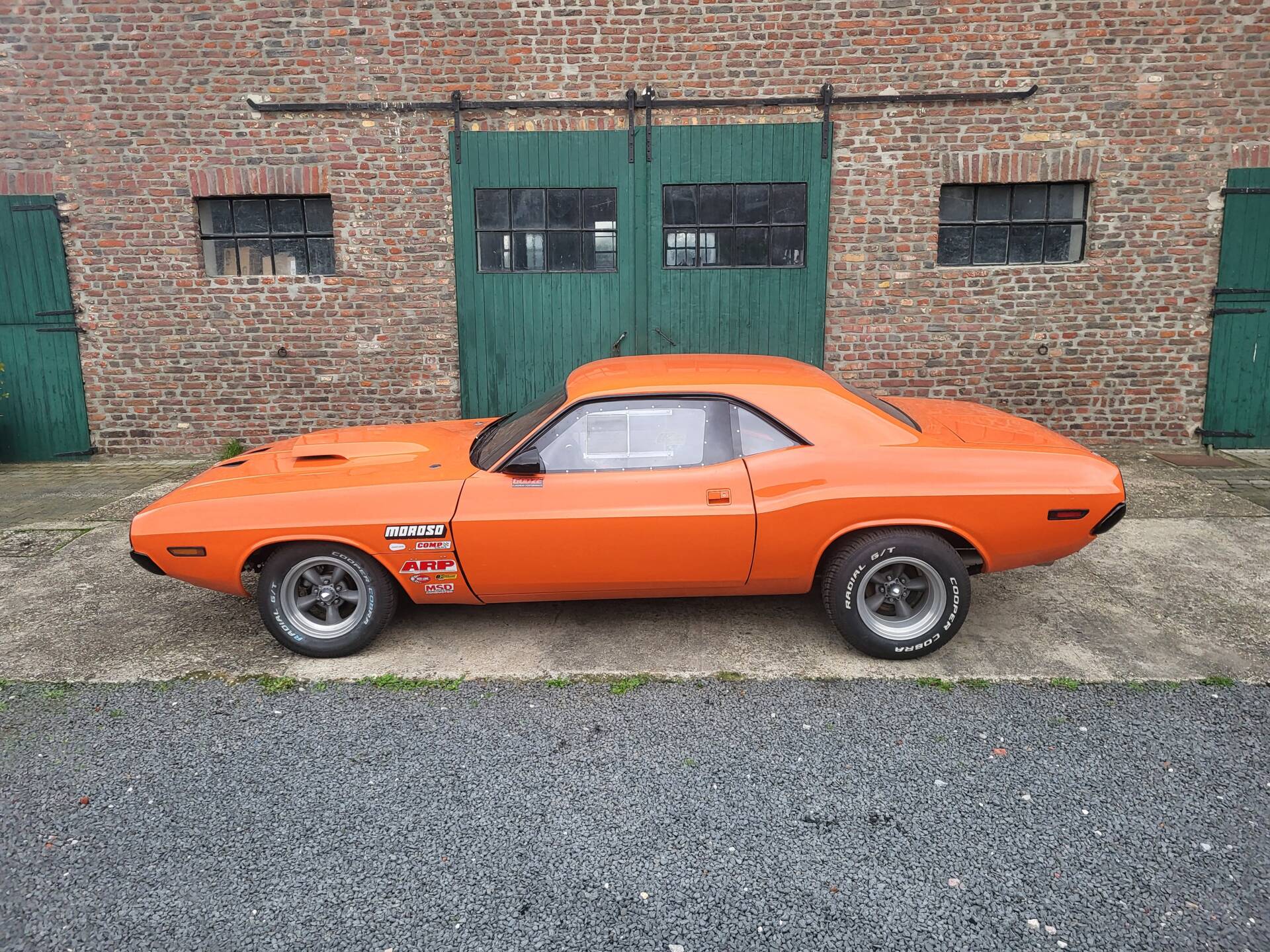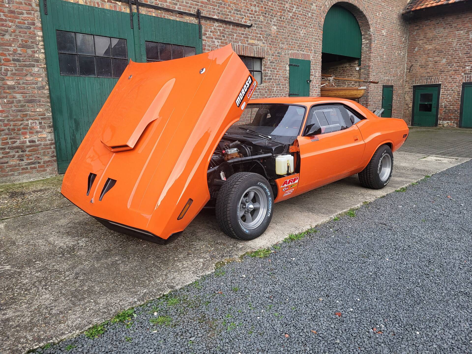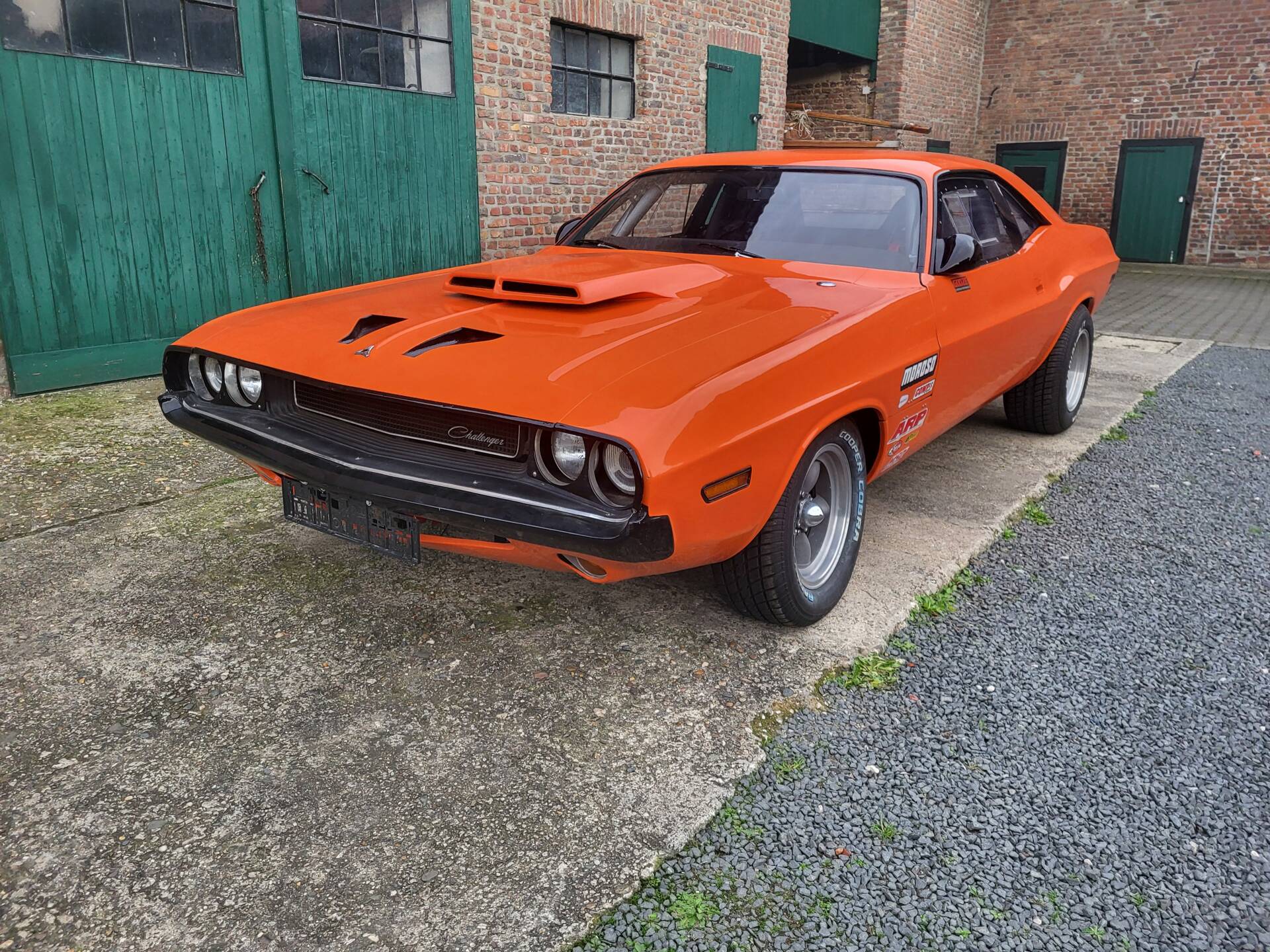 Cooles 70' Dodge Challenger 440 Show Car im Nascar-Look. Das Fahrzeug ist komplett umgebaut und hat eine belgische Zulassung. Verbaut ist ein sehr gut laufenden 440er Big Block mit einem A727 Getriebe Shift-Kit. Die Motorhaube und Türen sind aus GFK. Der Innenraum ist leergeräumt und mit Sparco Sporschalensitzen und Überrollbügel ausgestattet.