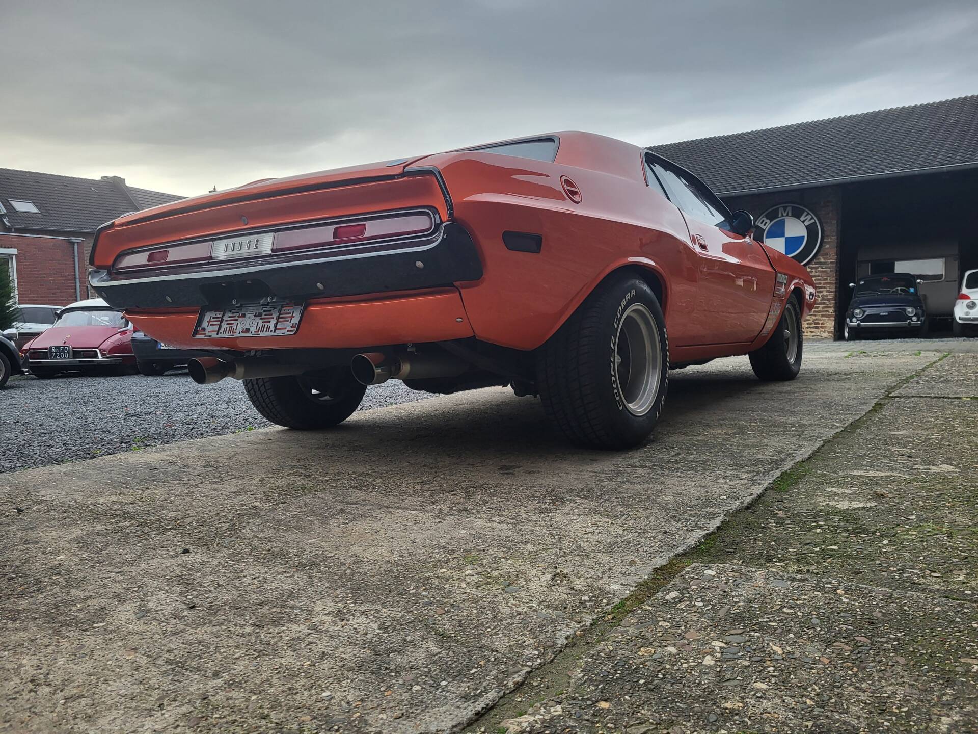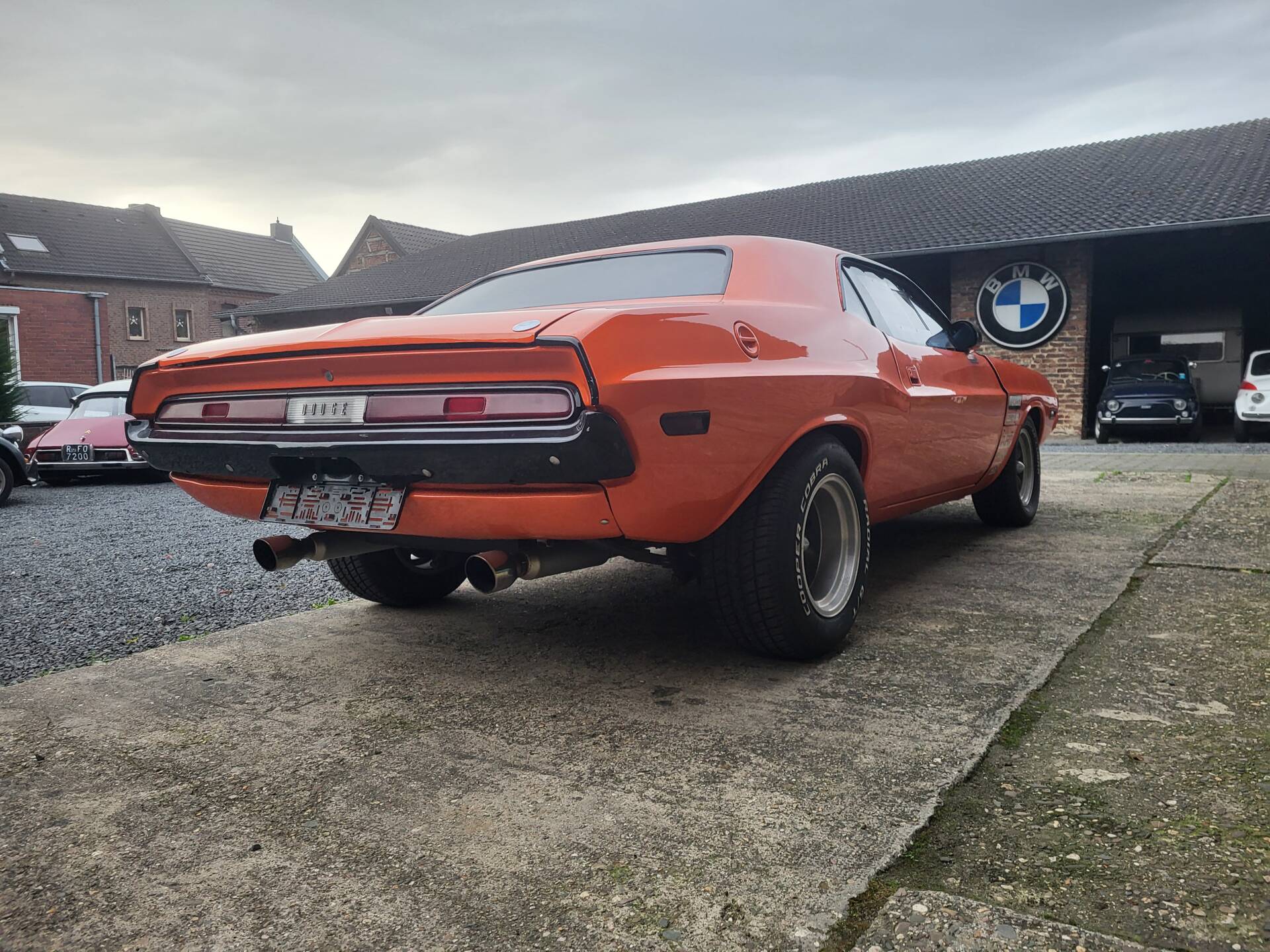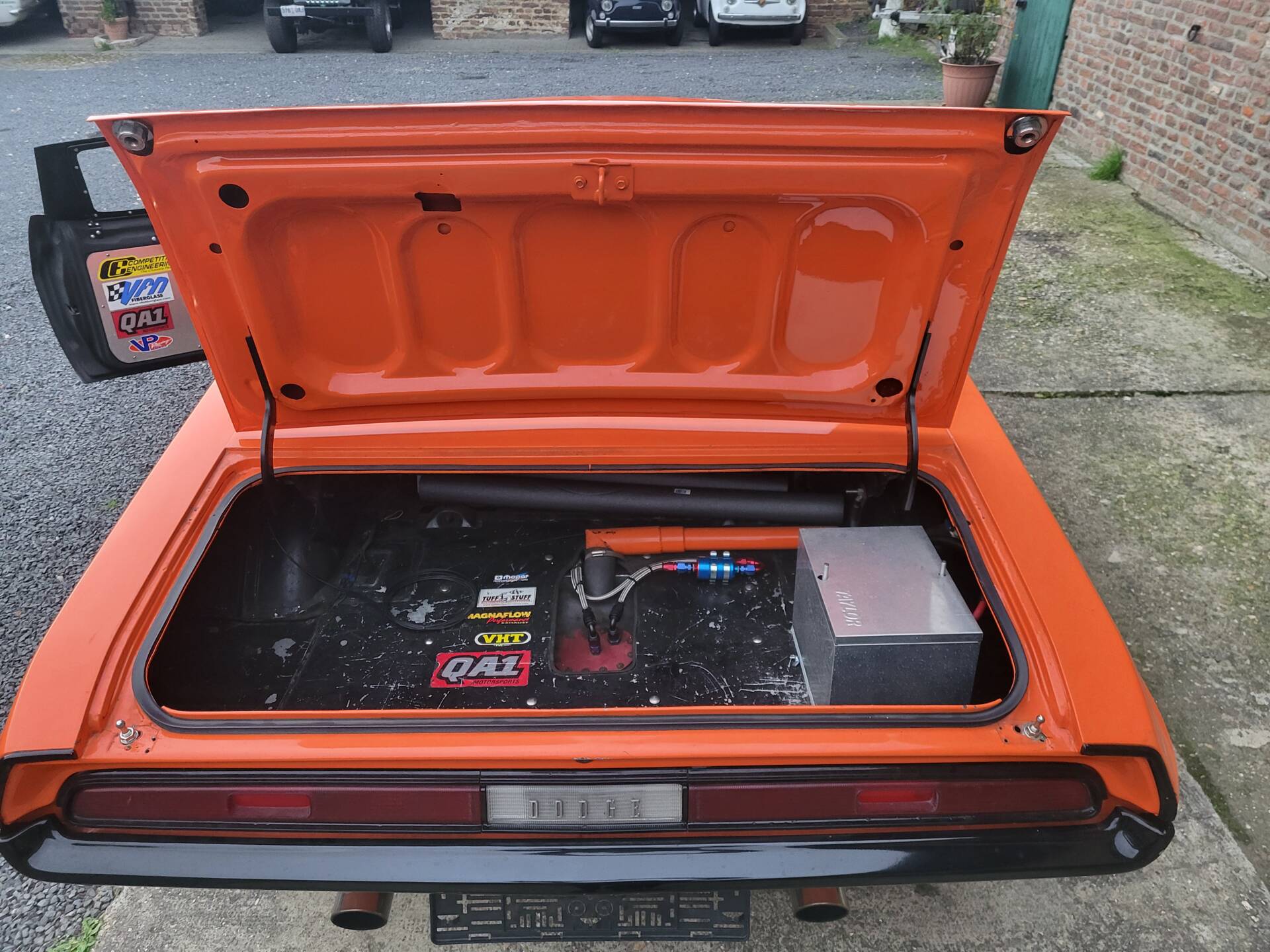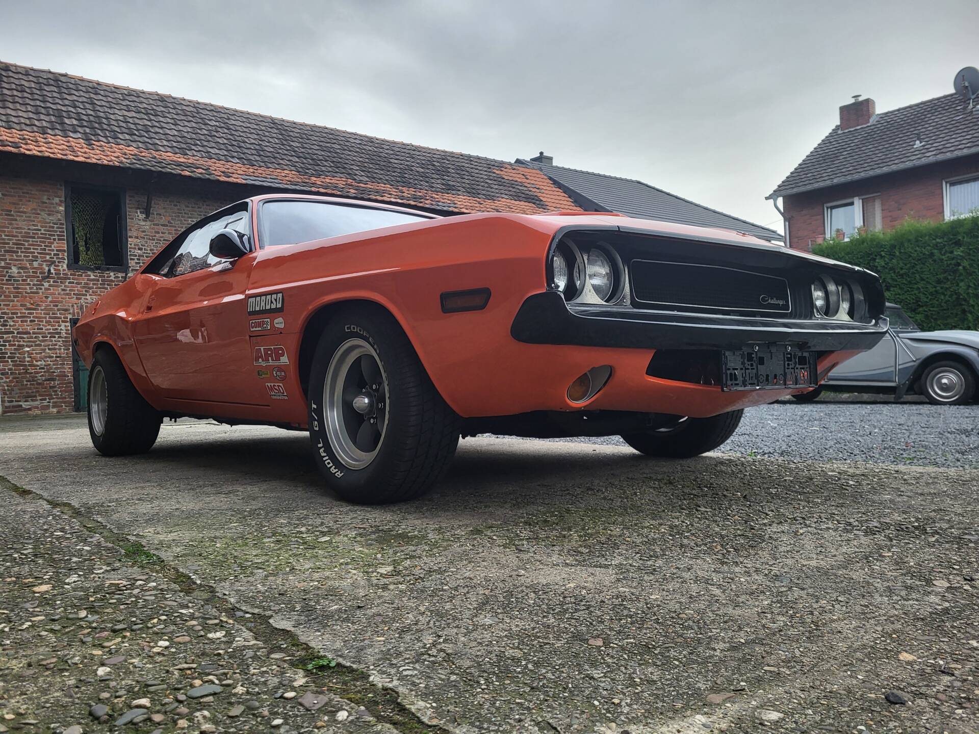 Cooles 70' Dodge Challenger 440 Show Car im Nascar-Look. Das Fahrzeug ist komplett umgebaut und hat eine belgische Zulassung. Verbaut ist ein sehr gut laufenden 440er Big Block mit einem A727 Getriebe Shift-Kit. Die Motorhaube und Türen sind aus GFK. Der Innenraum ist leergeräumt und mit Sparco Sporschalensitzen und Überrollbügel ausgestattet.