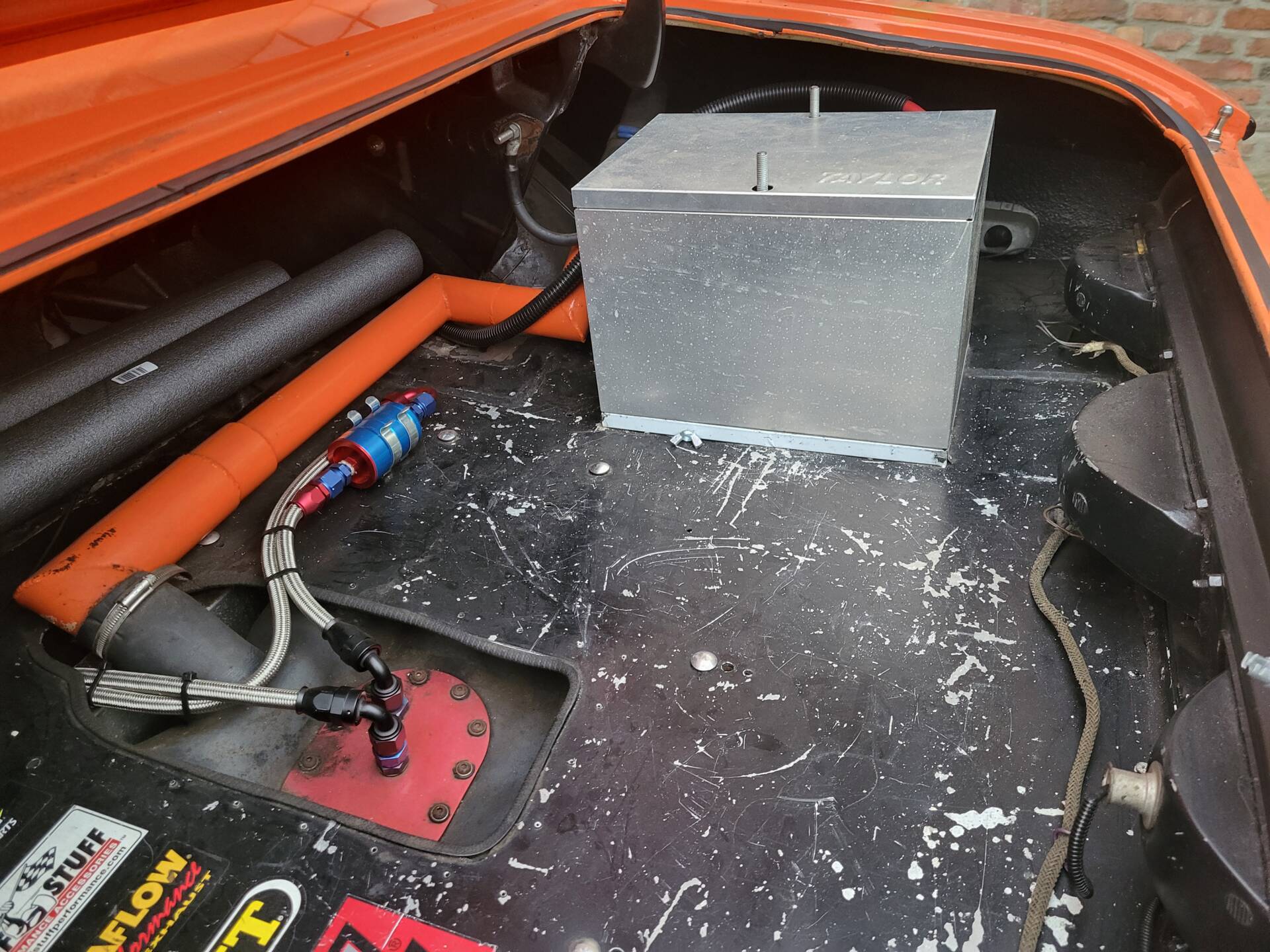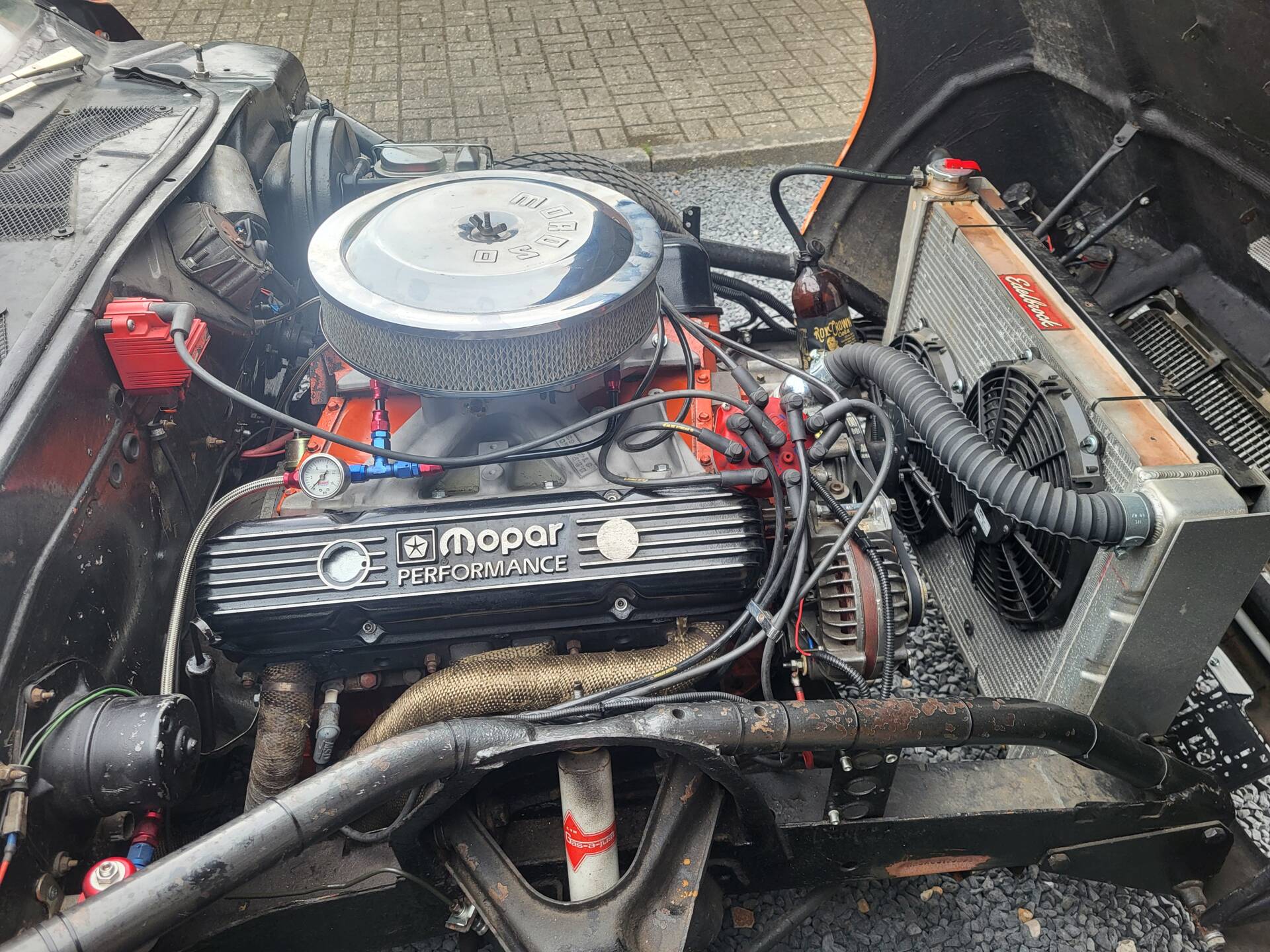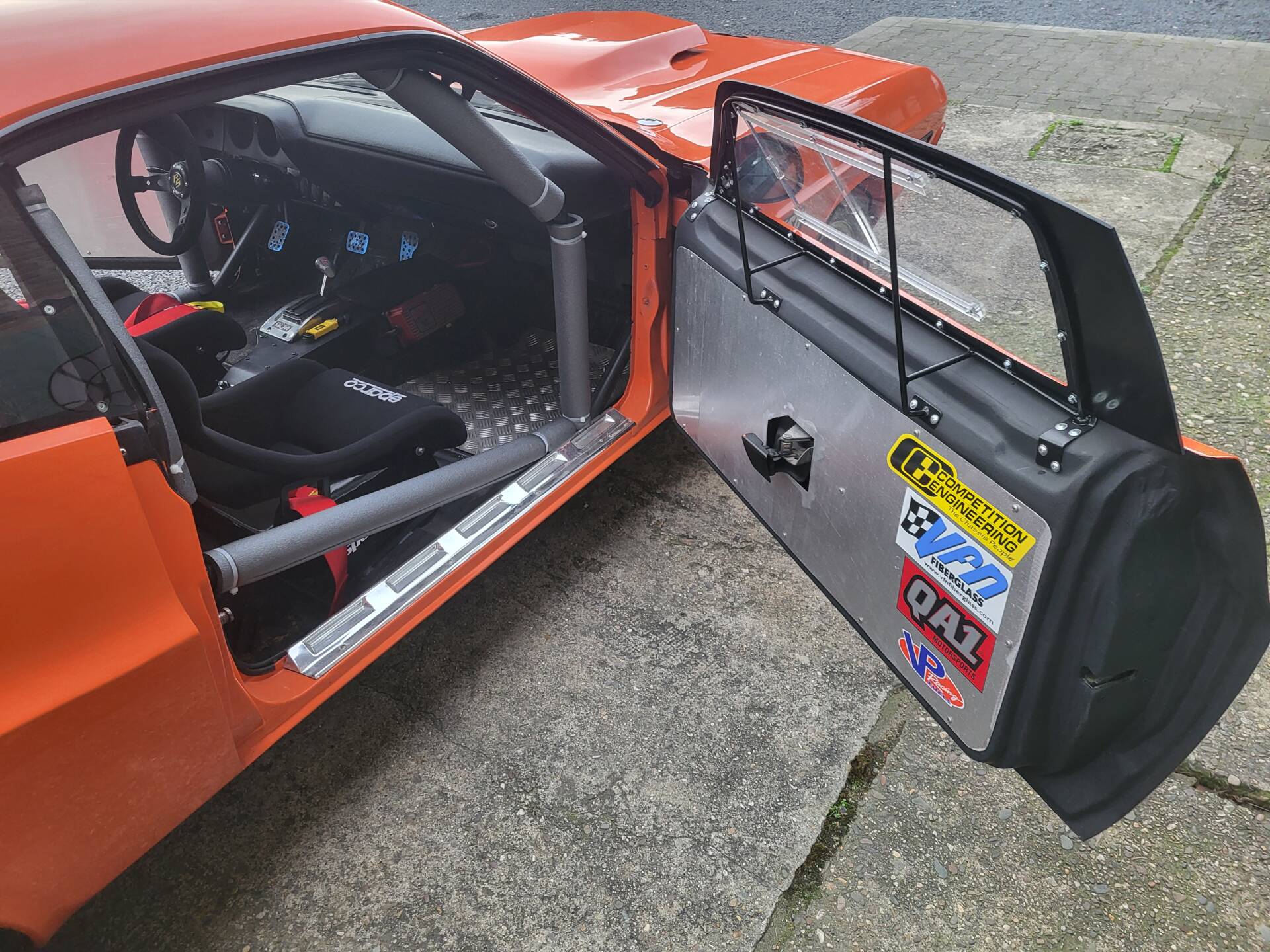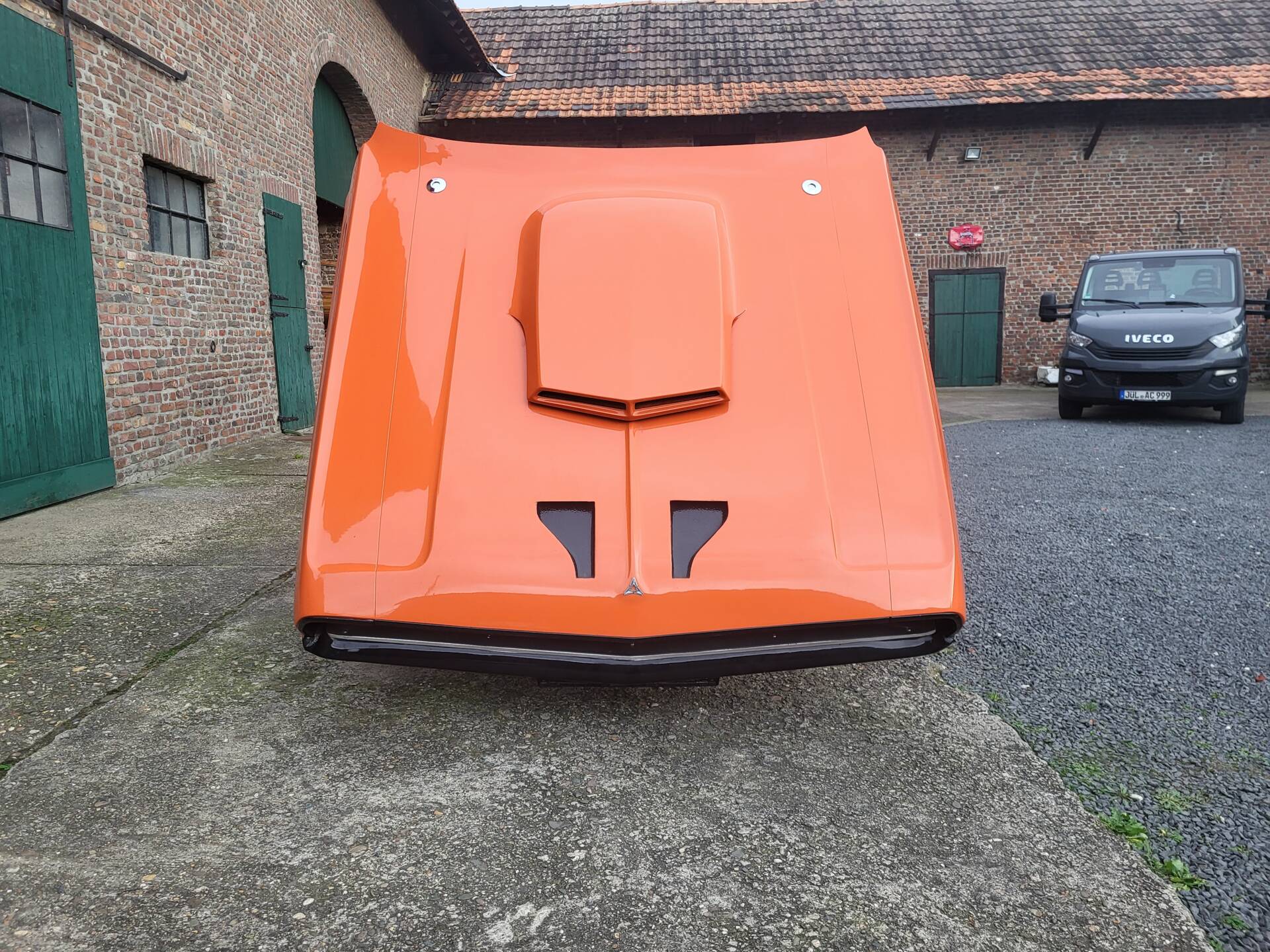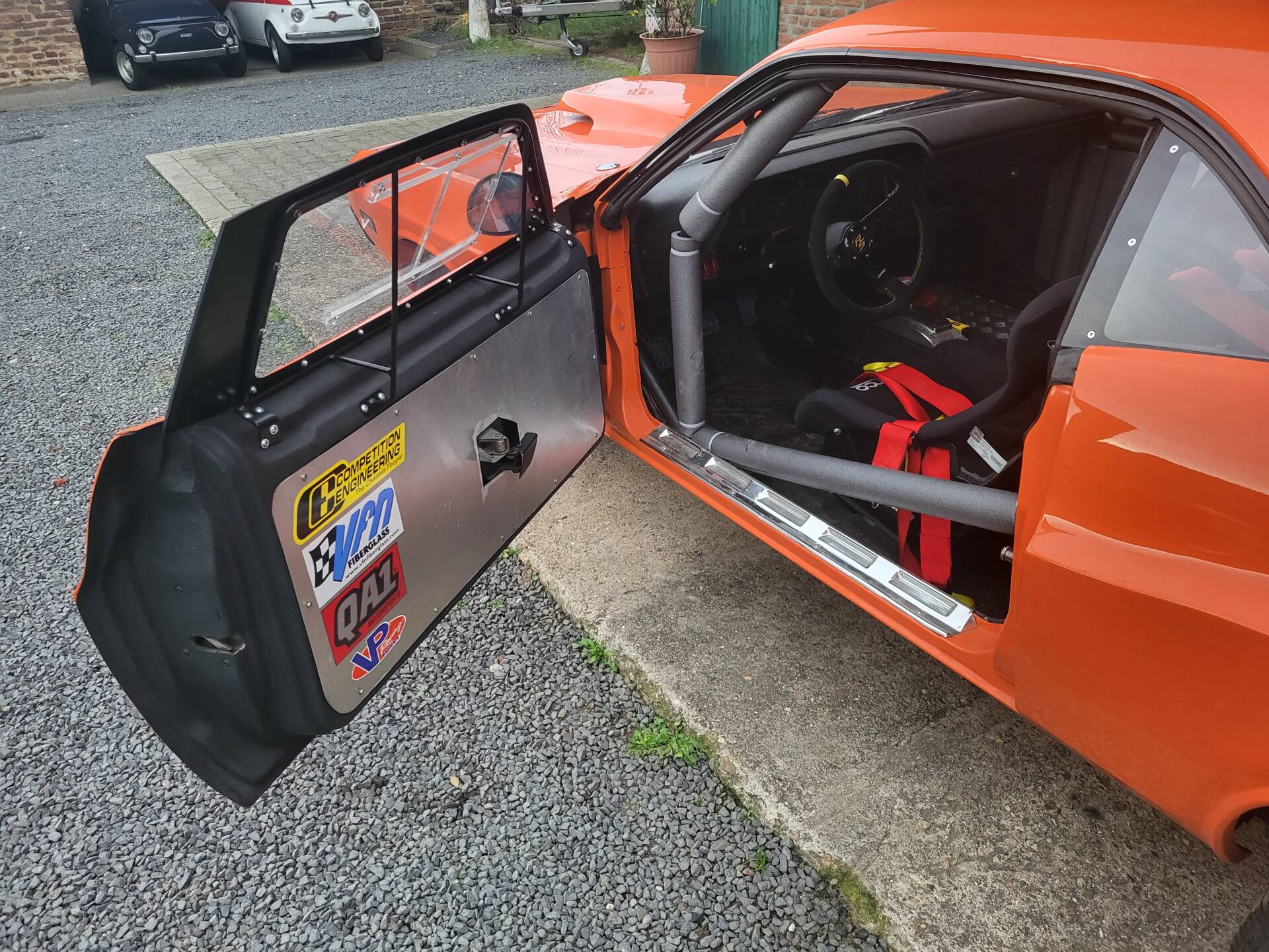 Cooles 70' Dodge Challenger 440 Show Car im Nascar-Look. Das Fahrzeug ist komplett umgebaut und hat eine belgische Zulassung. Verbaut ist ein sehr gut laufenden 440er Big Block mit einem A727 Getriebe Shift-Kit. Die Motorhaube und Türen sind aus GFK. Der Innenraum ist leergeräumt und mit Sparco Sporschalensitzen und Überrollbügel ausgestattet.