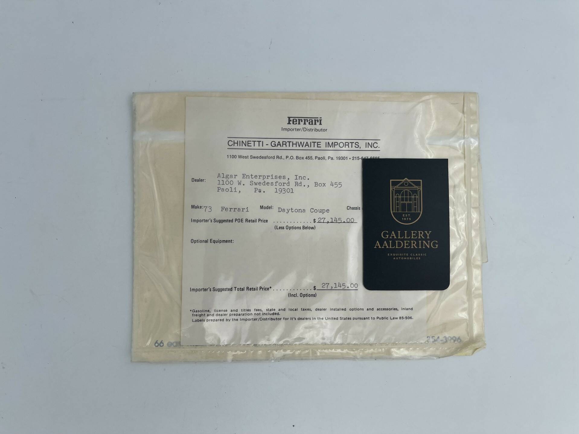 Ferrari 365 GTB/4 Daytona "5.724 miles" Ferrari Classiche certified - This Car Qualifies for 0% Import Tariffs in the USA 5.724 miles since 1973 - accompanied by Massini report and "Red Book" from Ferrari Classiche, In absolute pristine condition - Never restored, Ferrari Classiche certified, A once-in-many-years opportunity to find a Daytona in this condition, Offered with leather document pouch with all books and tools, "Nothing surpasses purity"
