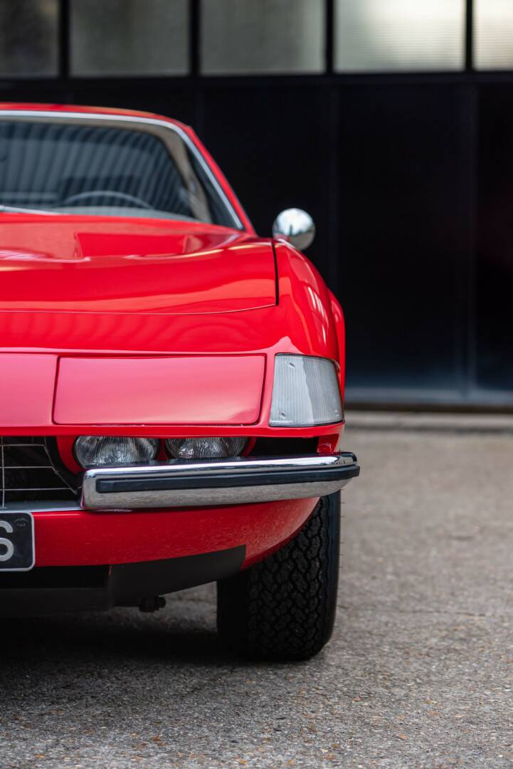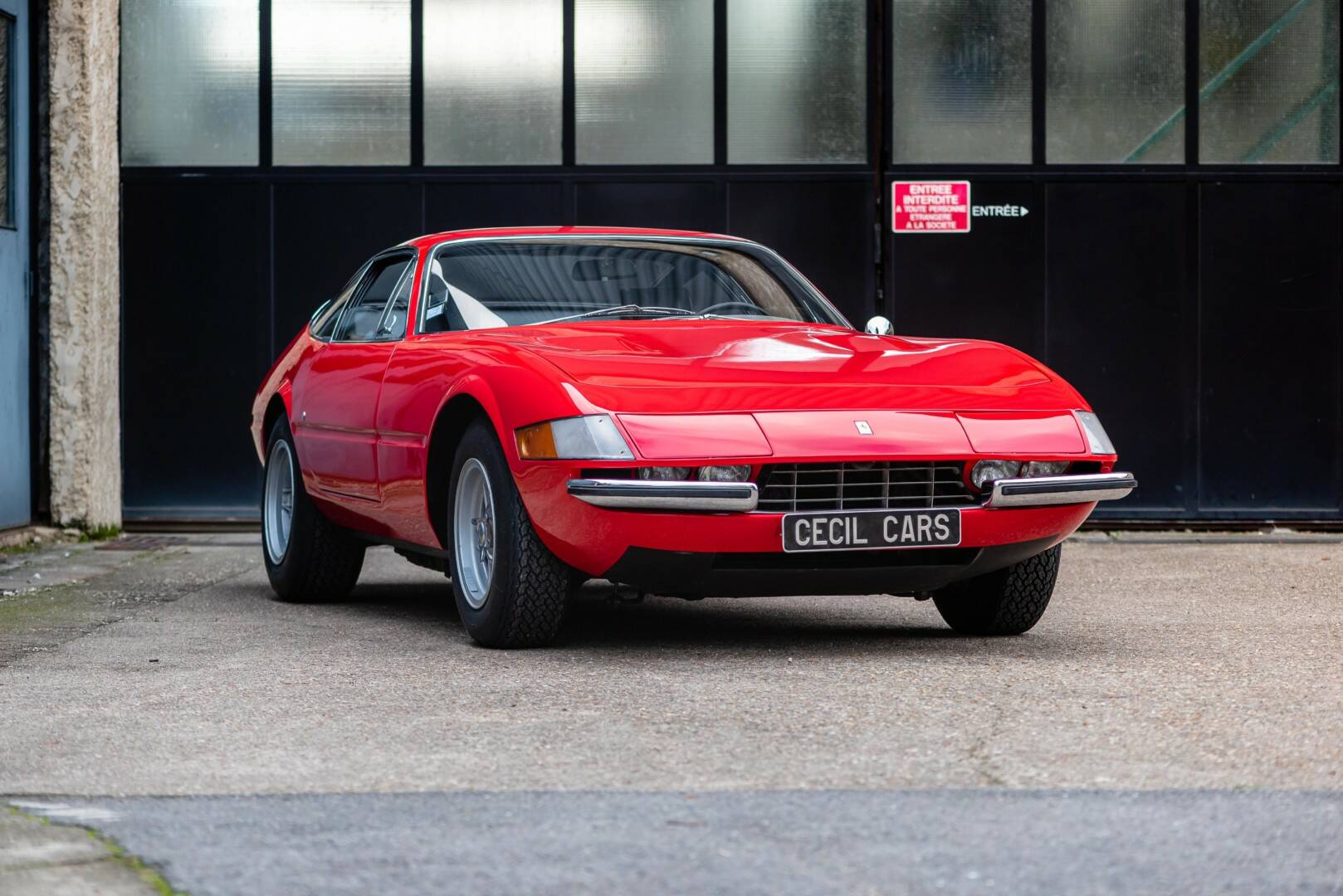 Produite de 1968 à 1973, elle n’existe qu’à 1 406 exemplaires. Elle incarne la puissance et l’élégance à l’italienne. Son V12 de 4,4 litres offre des performances exceptionnelles pour l’époque. Le design signé Pininfarina aux lignes tendues lui confère une allure de supercar avant l’heure. La silhouette est immédiatement reconnaissable et digne des films d’action des années 70. Les premières séries avaient des phares plexiglas, environ 420 unités. Ces modèles sont très recherchés par les collectionneurs. La majorité des Daytonas produites arbore les phares escamotables, signature de l’évolution esthétique Ferrari.