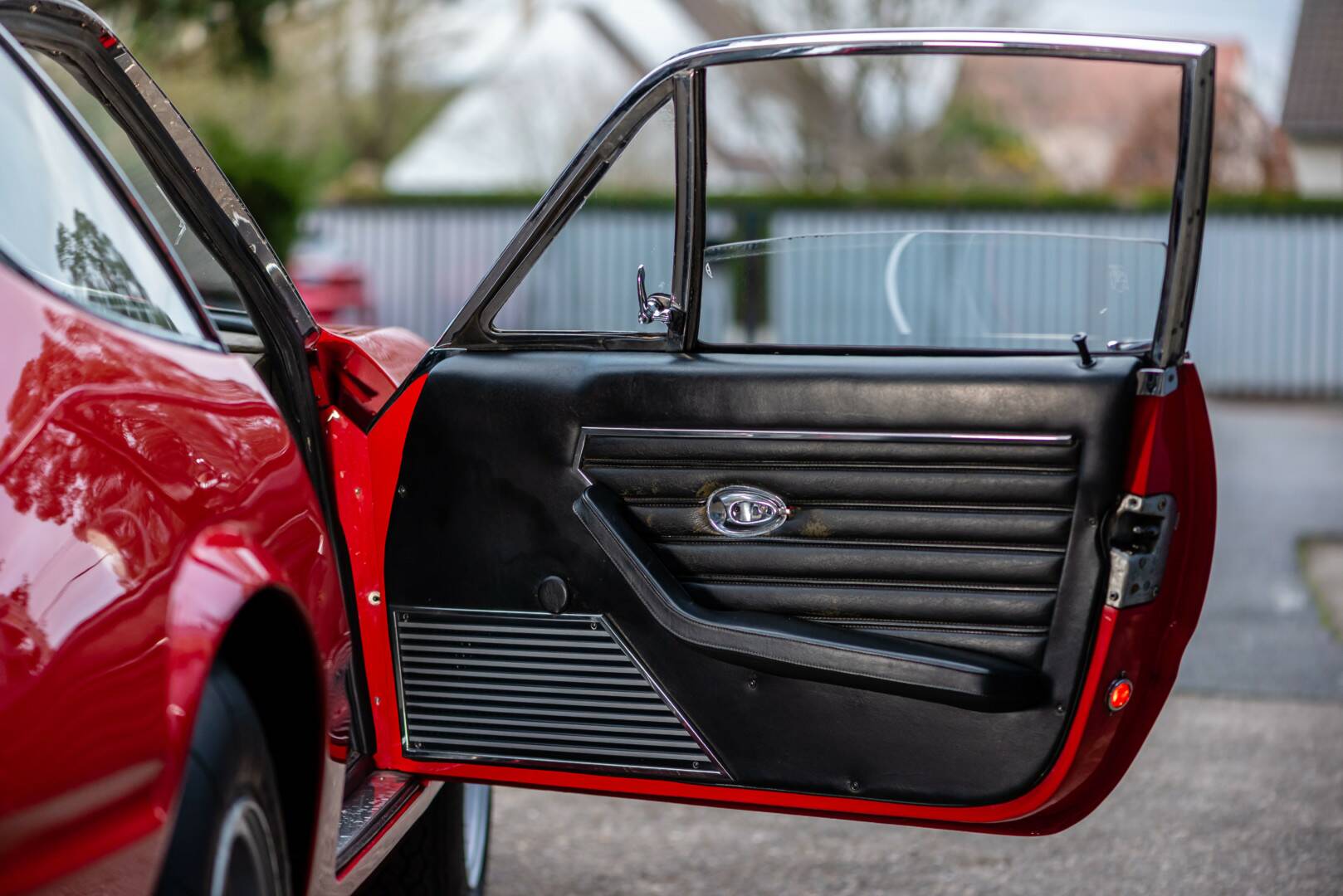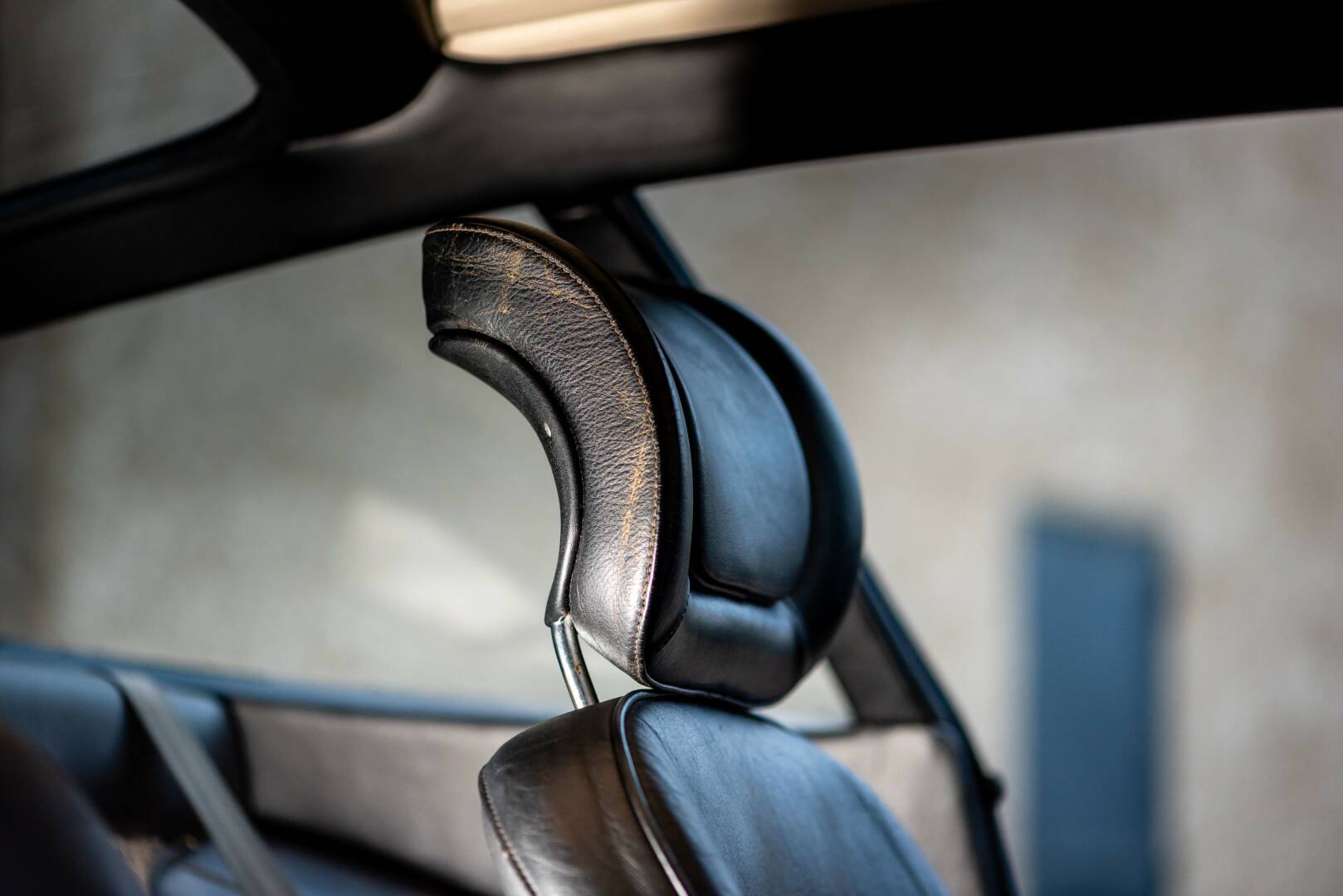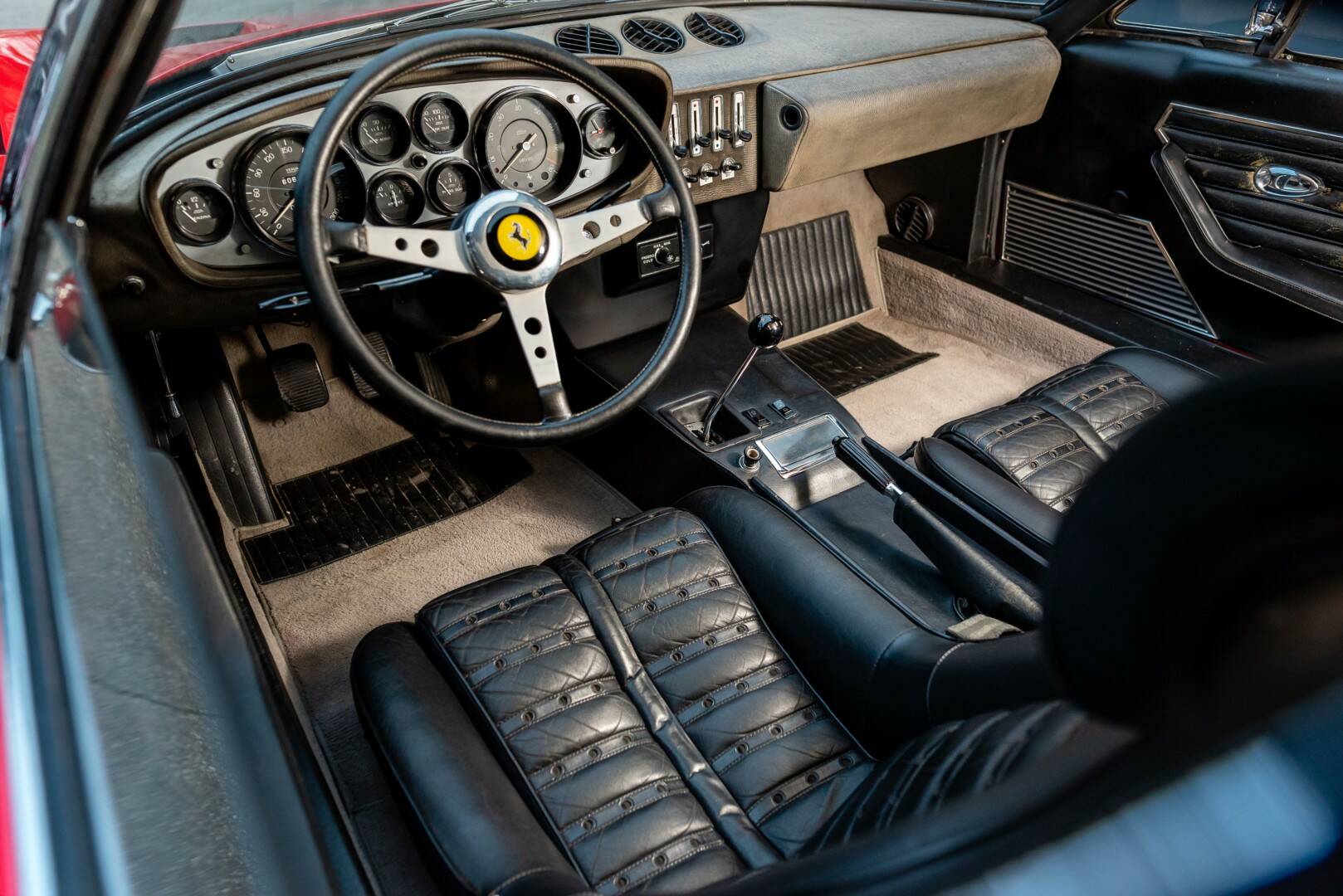Cette Daytona conserve 100 % de sa sellerie d’origine, incluant sièges, moquettes, ciel de toit et tableau de bord, tous en excellent état, ce qui est rare pour une Ferrari de 52 ans.